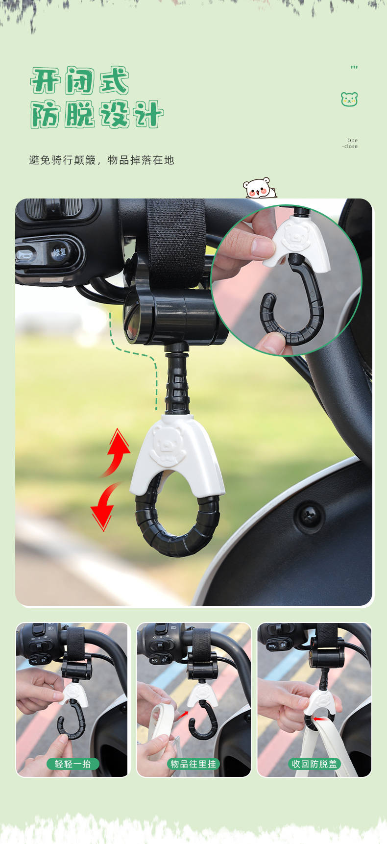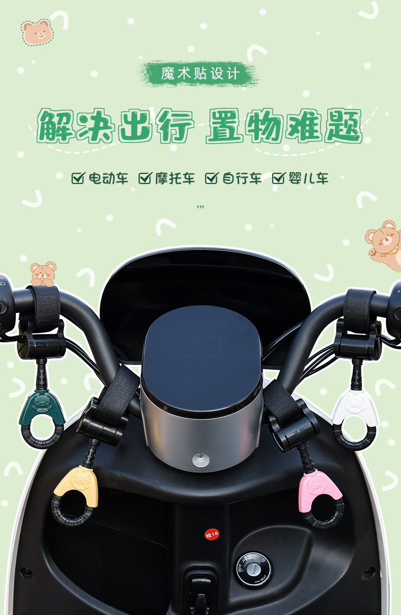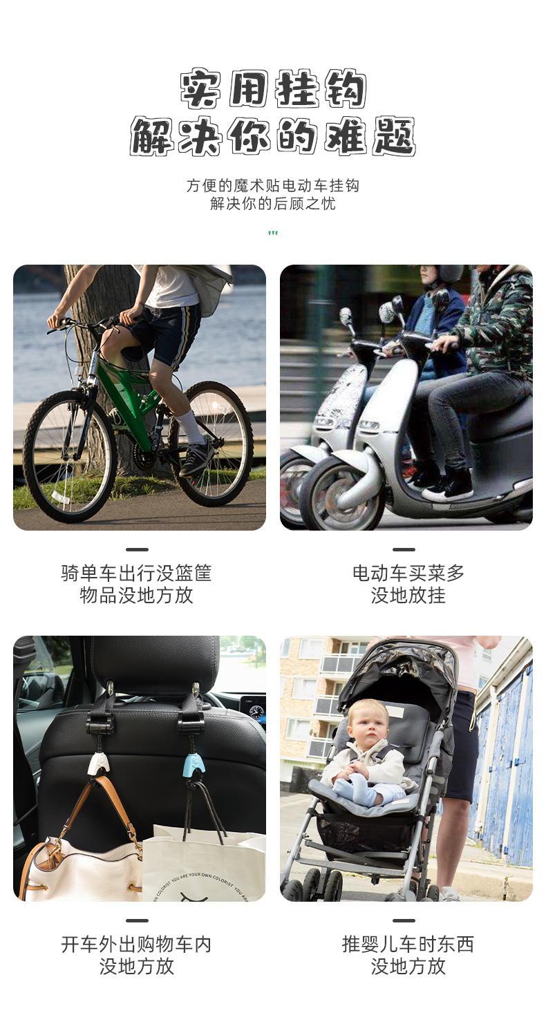 电动车挂钩前置通用摩托车外卖勾电瓶自行车卡通免打孔头盔挂物钩