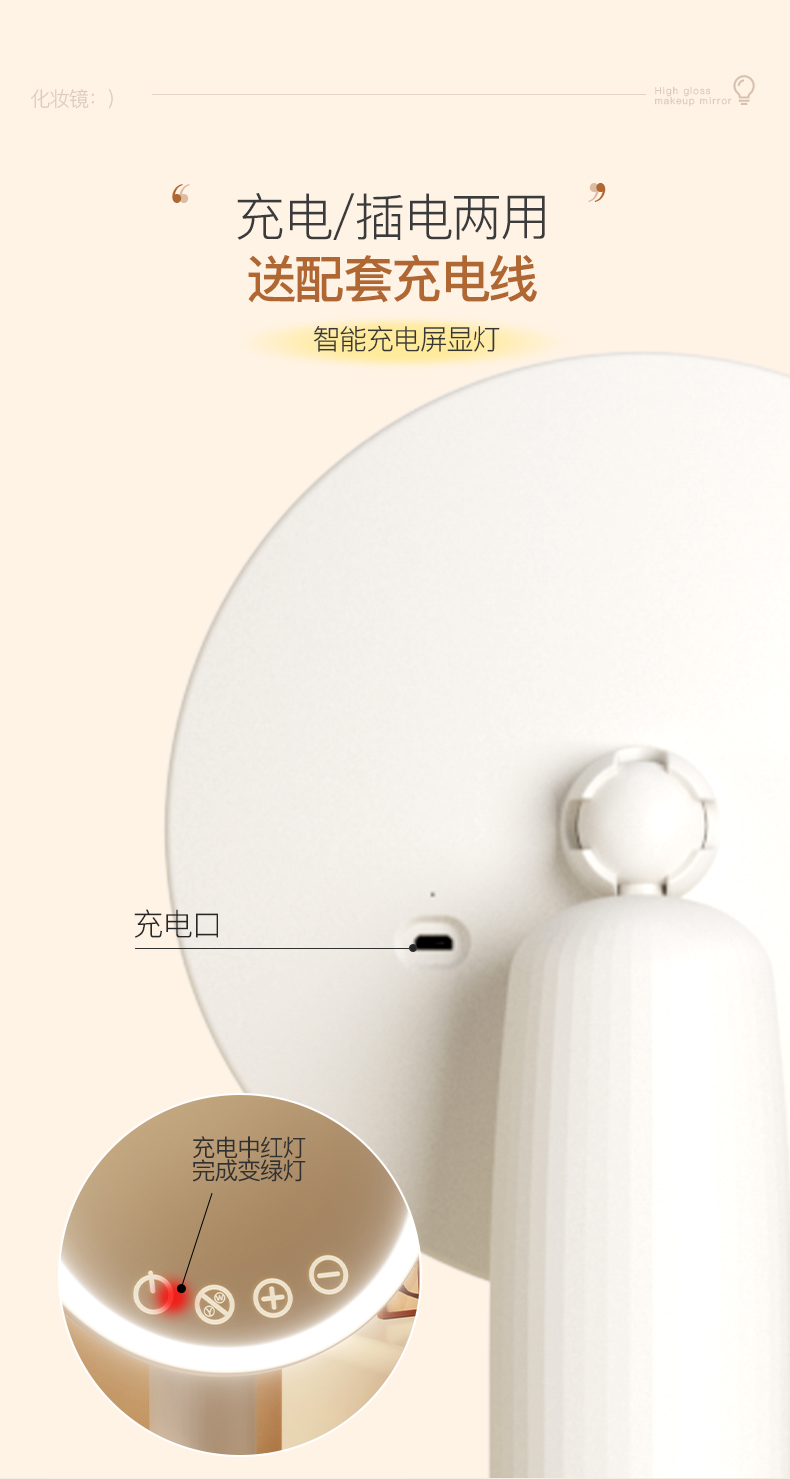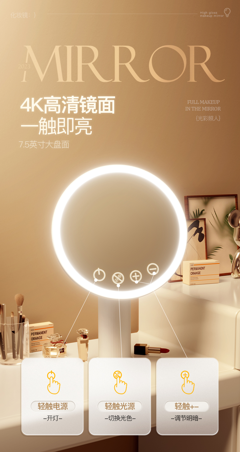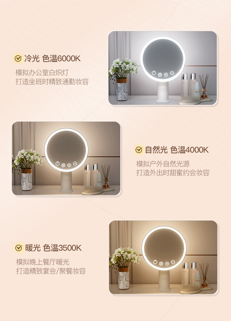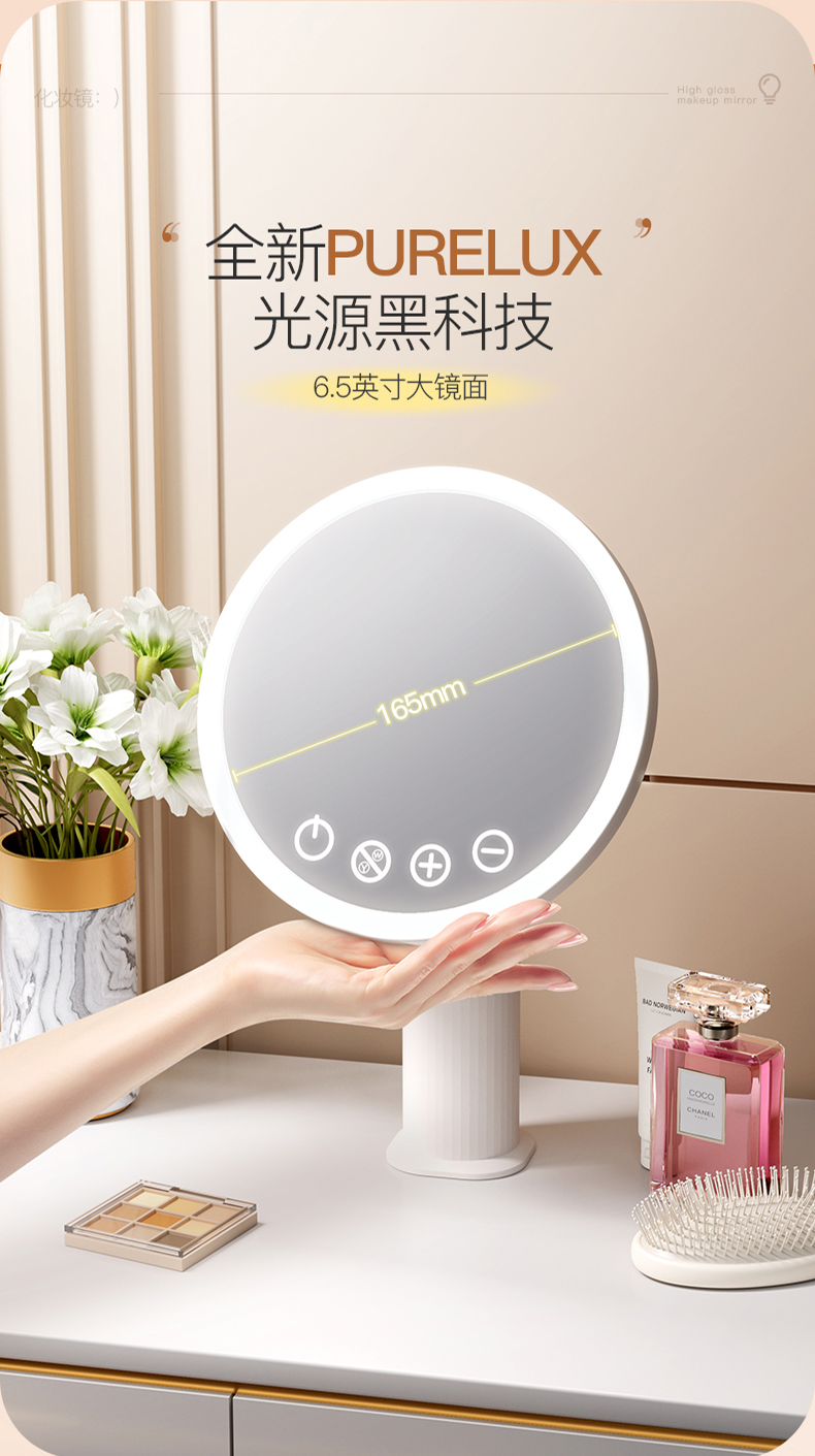 化妆镜带灯家用智能led镜子学生宿舍办公室台式桌面女网红梳妆镜