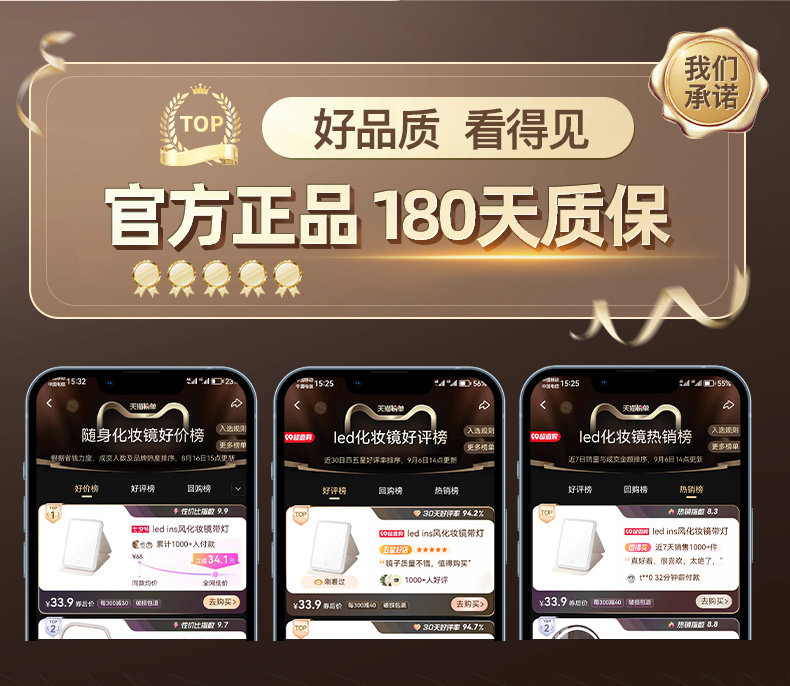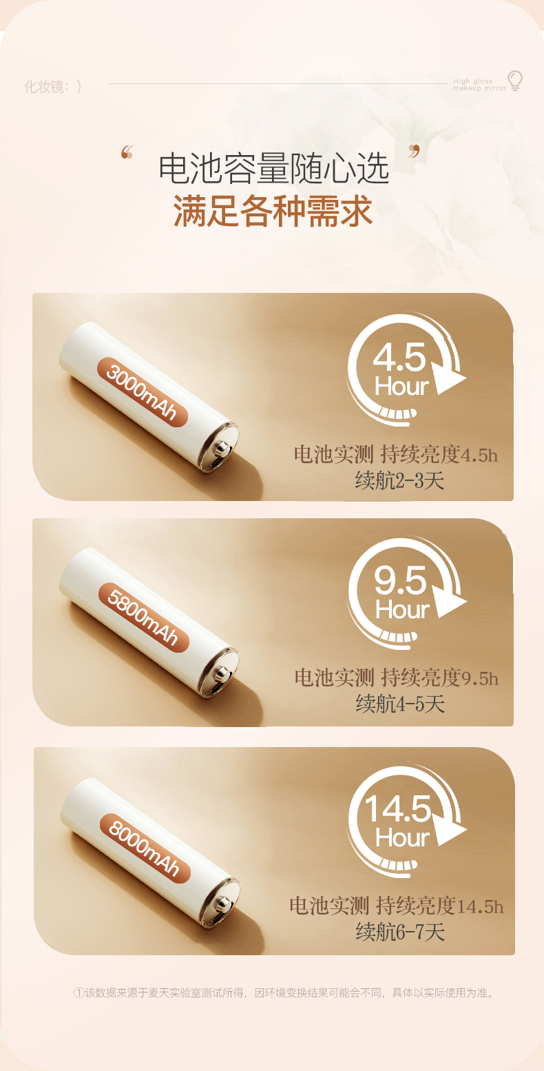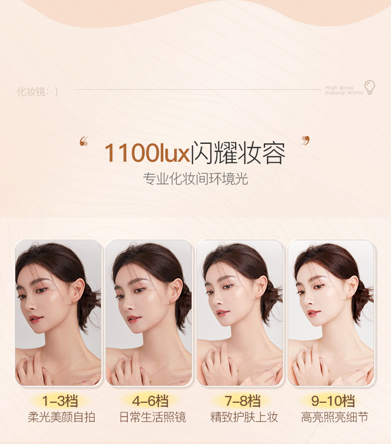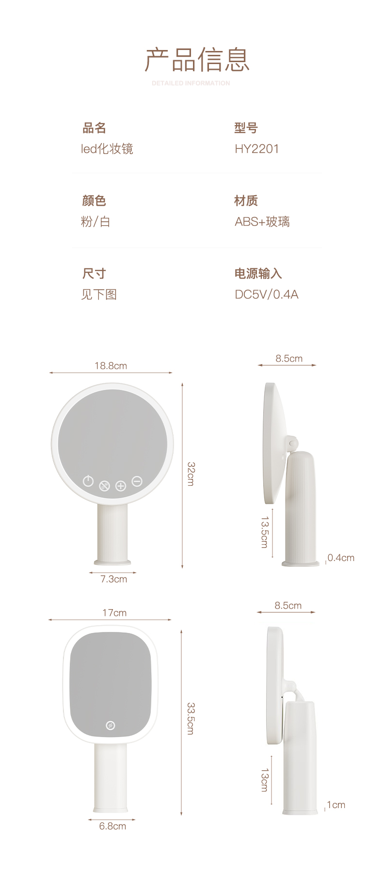 化妆镜带灯家用智能led镜子学生宿舍办公室台式桌面女网红梳妆镜