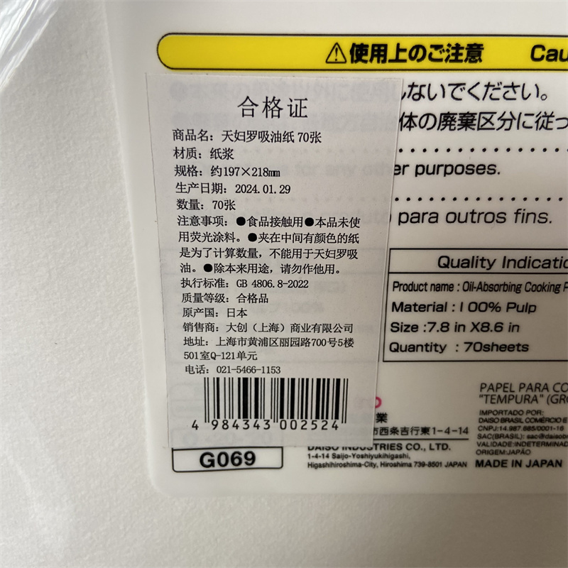 日本大创进口油炸食品吸油纸食物煎炸烧烤去油纸厨房烧烤糕点去油