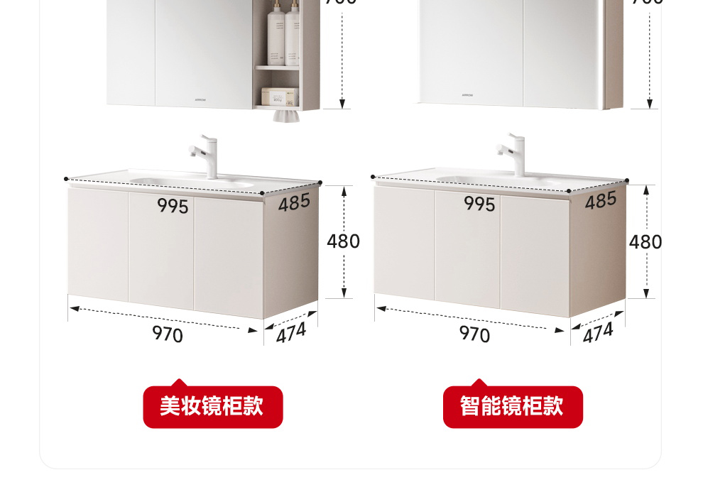 箭牌浴室柜组合陶瓷一体盆卫生间洗手脸盆卫浴柜洗漱台折叠镜轻奢