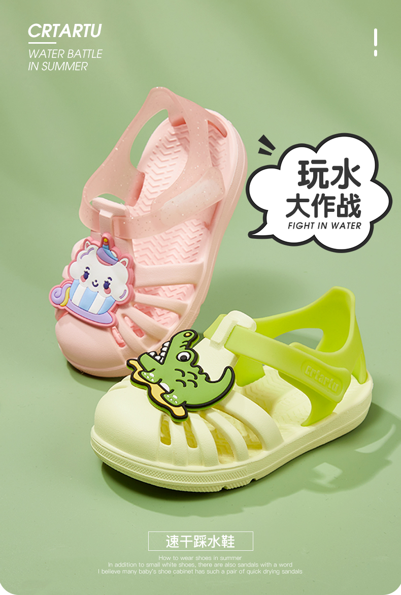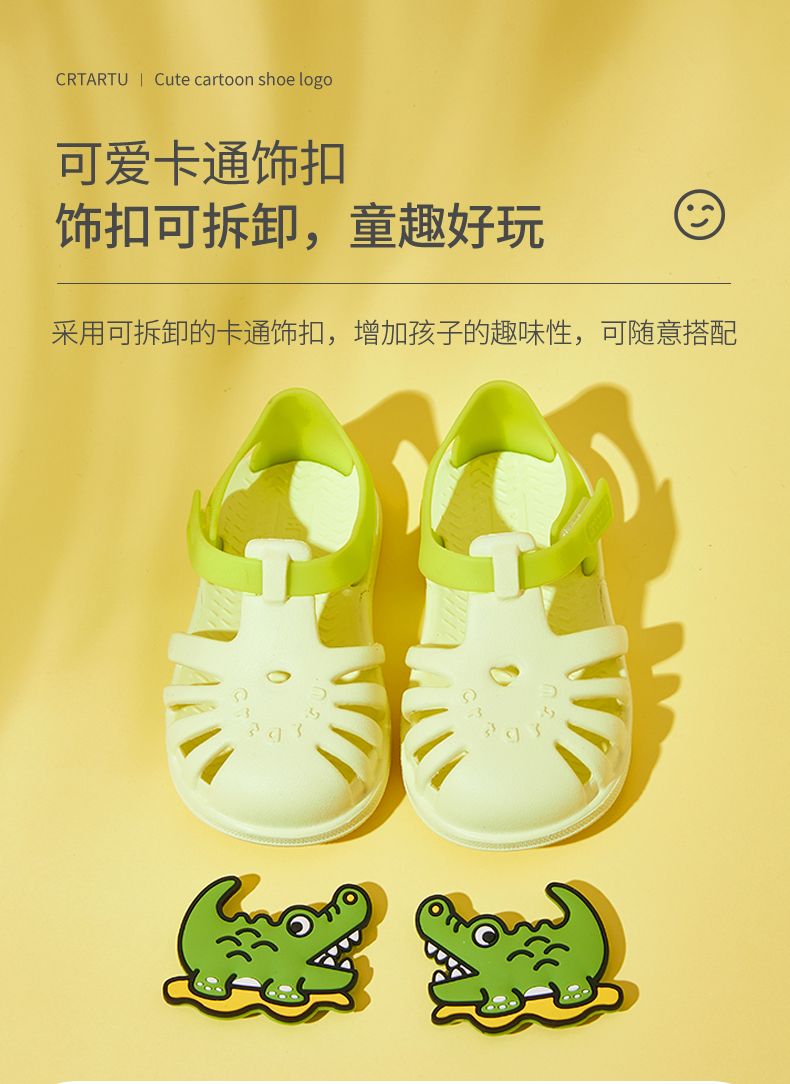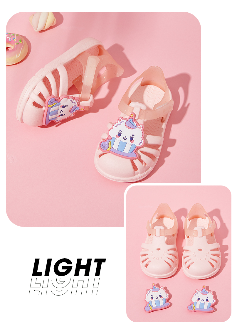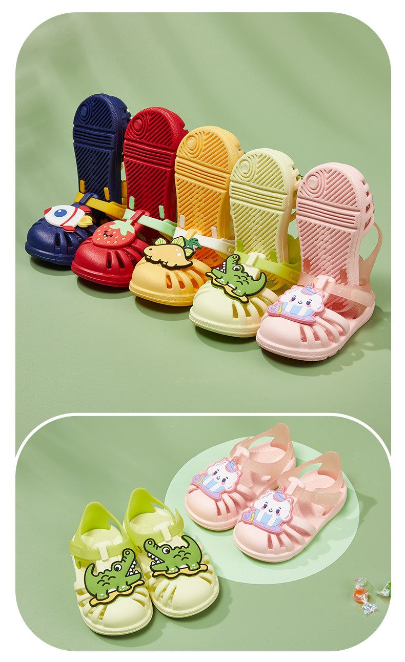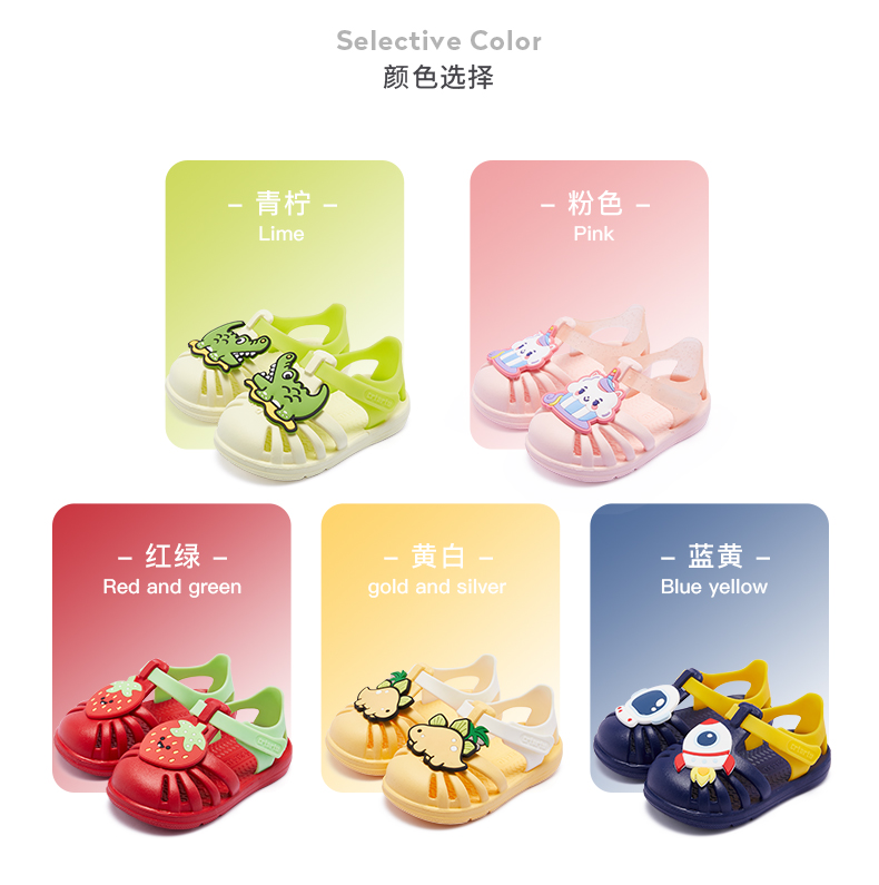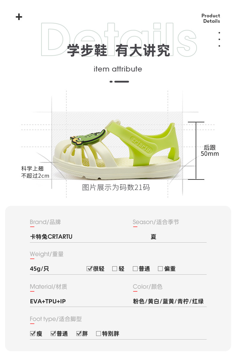 卡特兔学步鞋女夏季新款男宝卡通拖鞋婴儿软底果冻鞋镂空儿童凉鞋