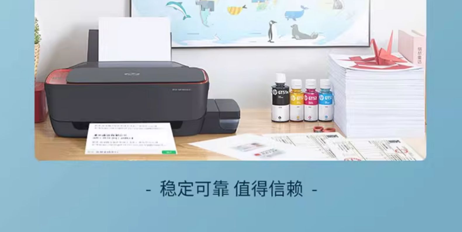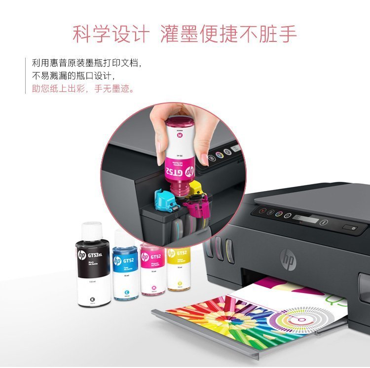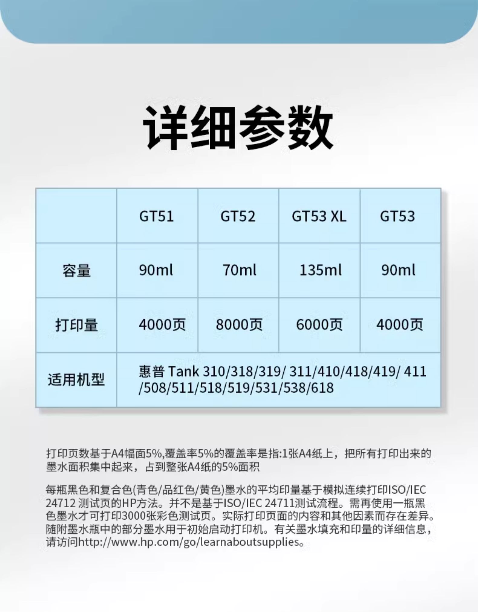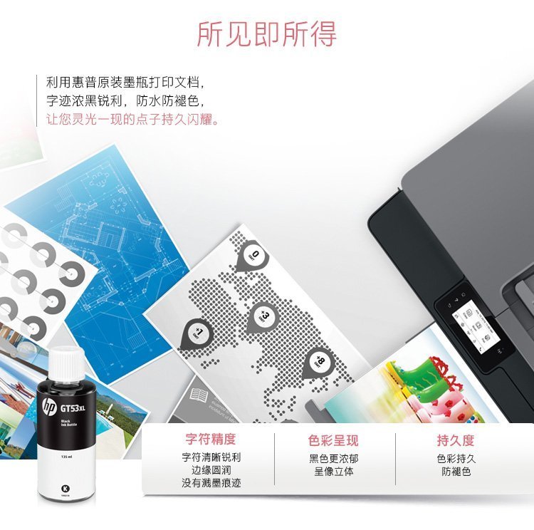 hp惠普打印机墨水原装gt53xl黑色gt52彩色GT51油墨连供喷墨彩印tank519/518/582/411/672/599/596墨水补充液