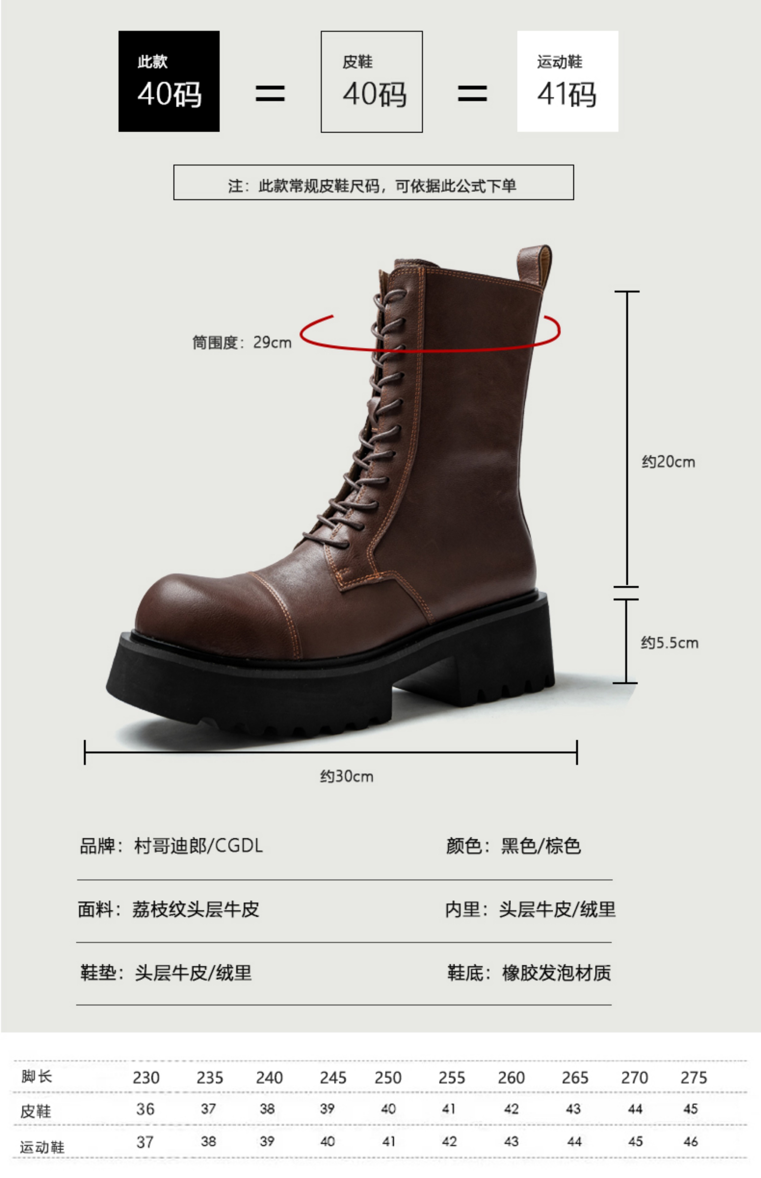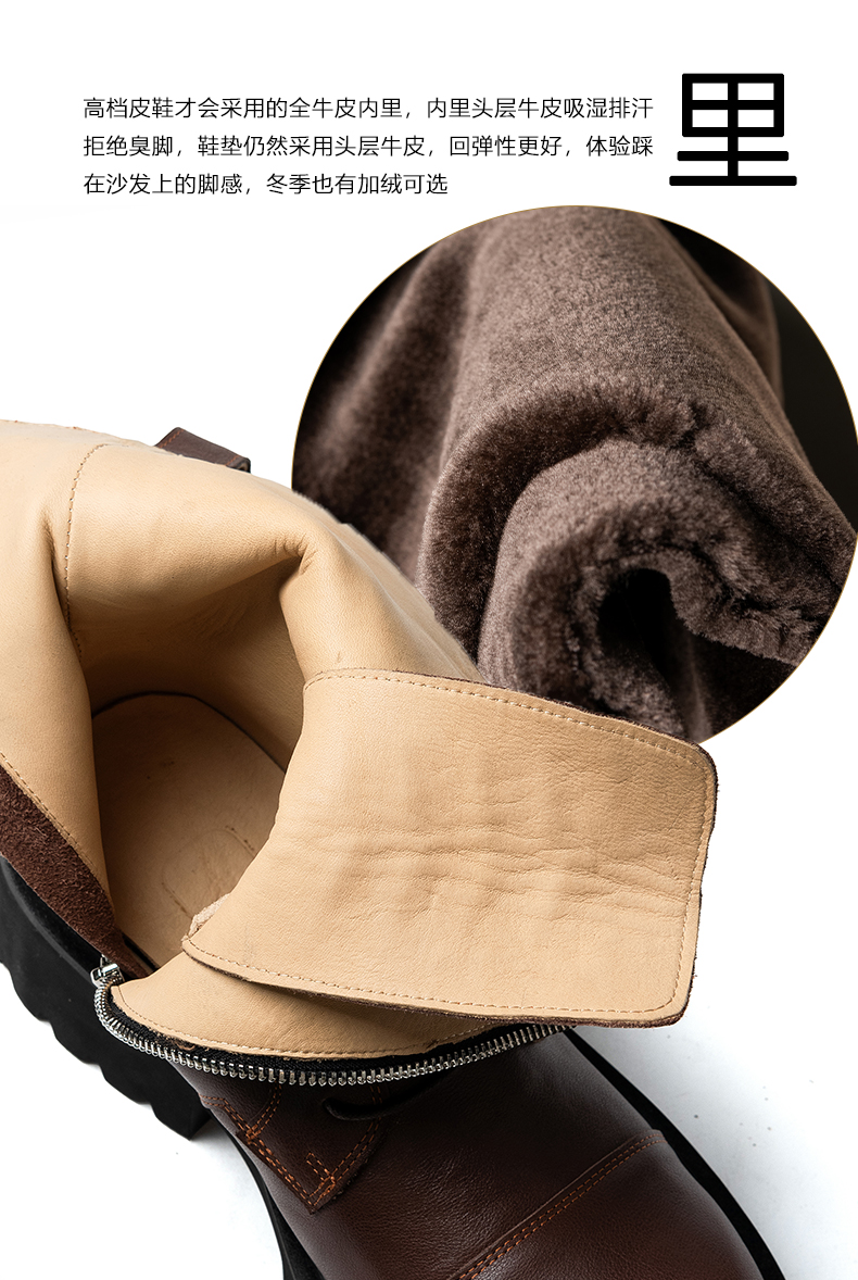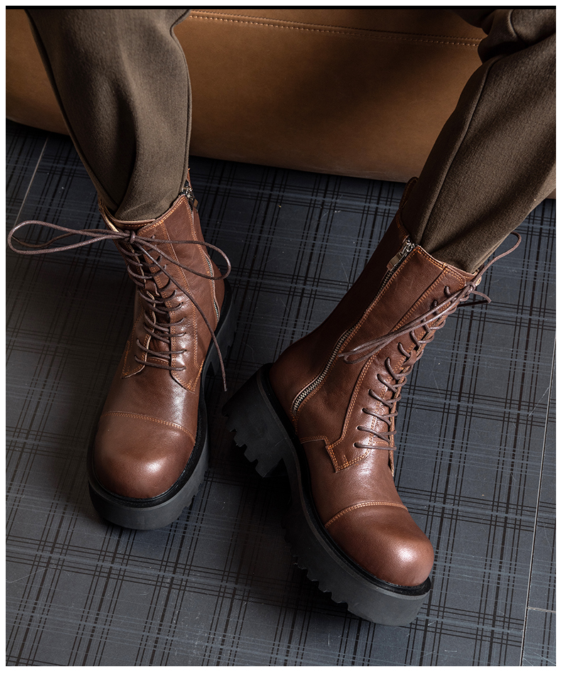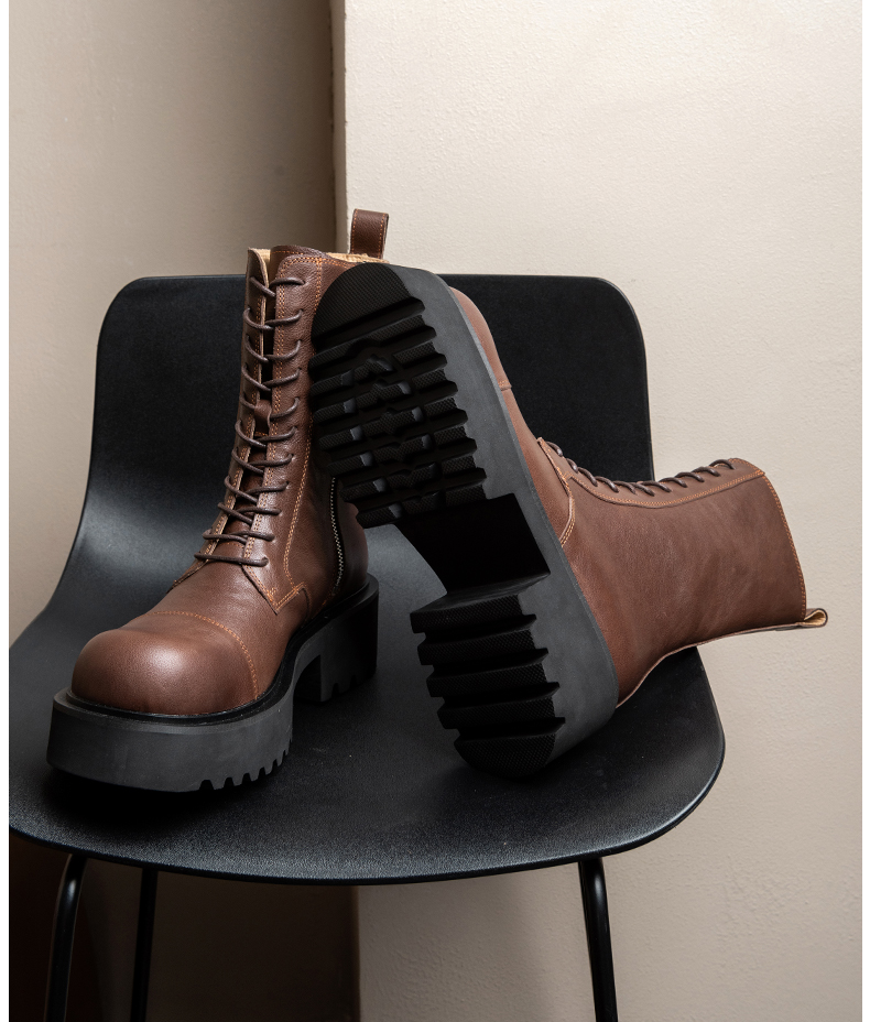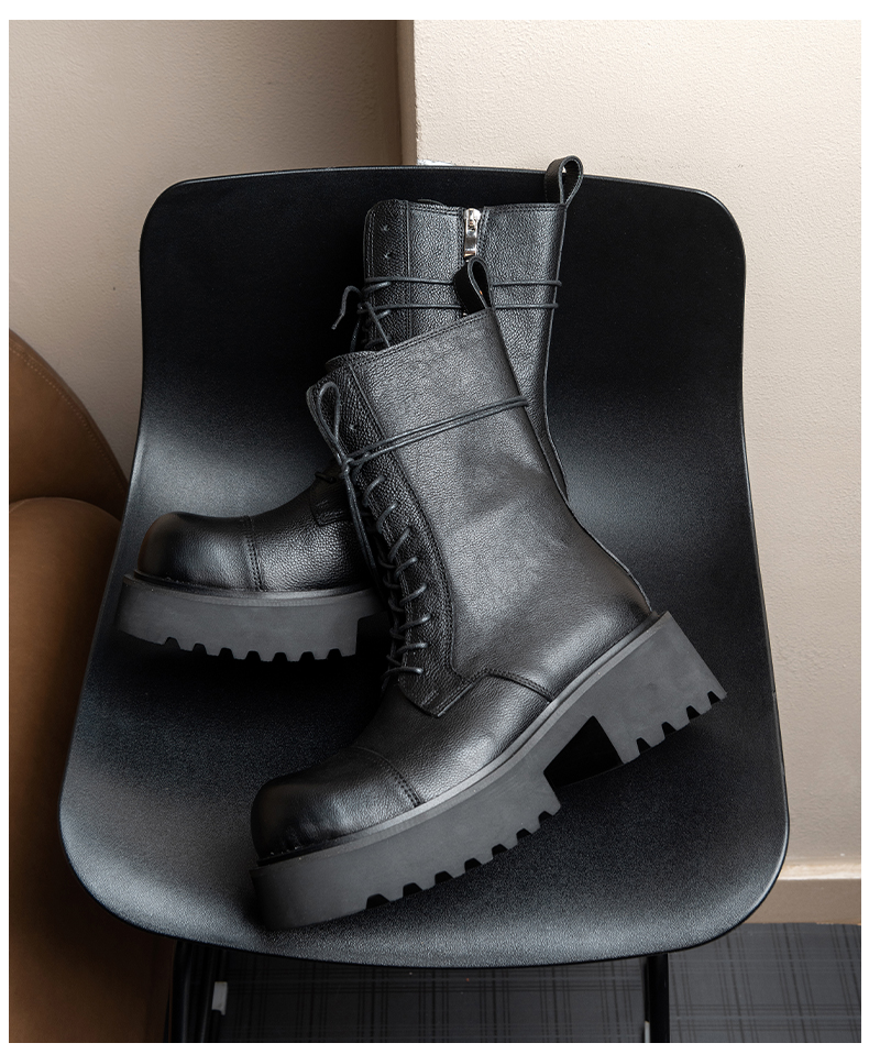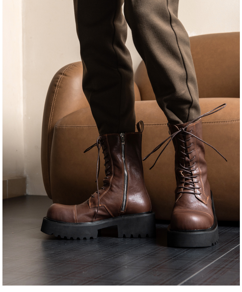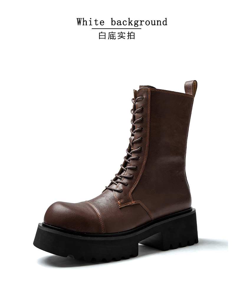 马丁靴男高帮真皮厚底增高英伦风复古工装机车皮鞋男士中筒长靴子