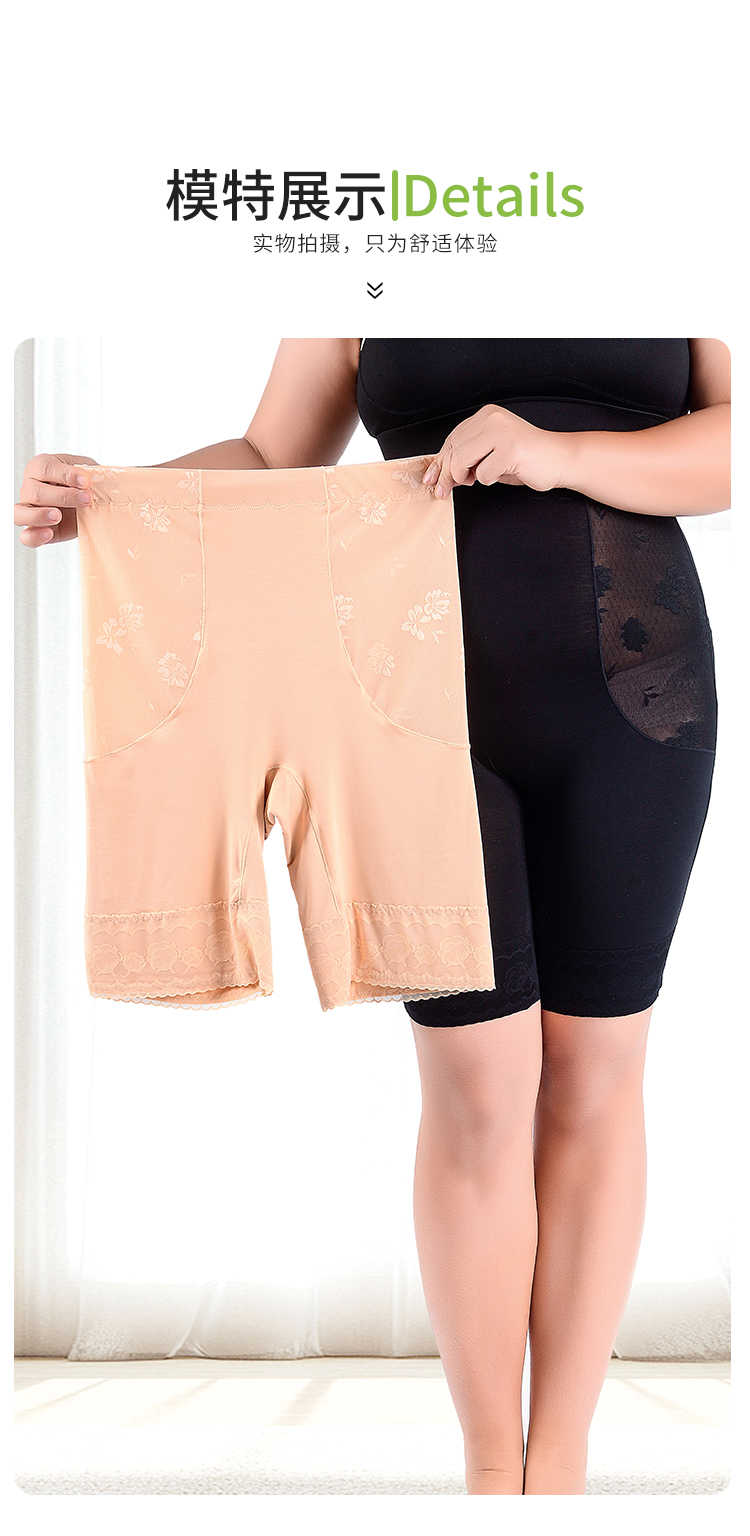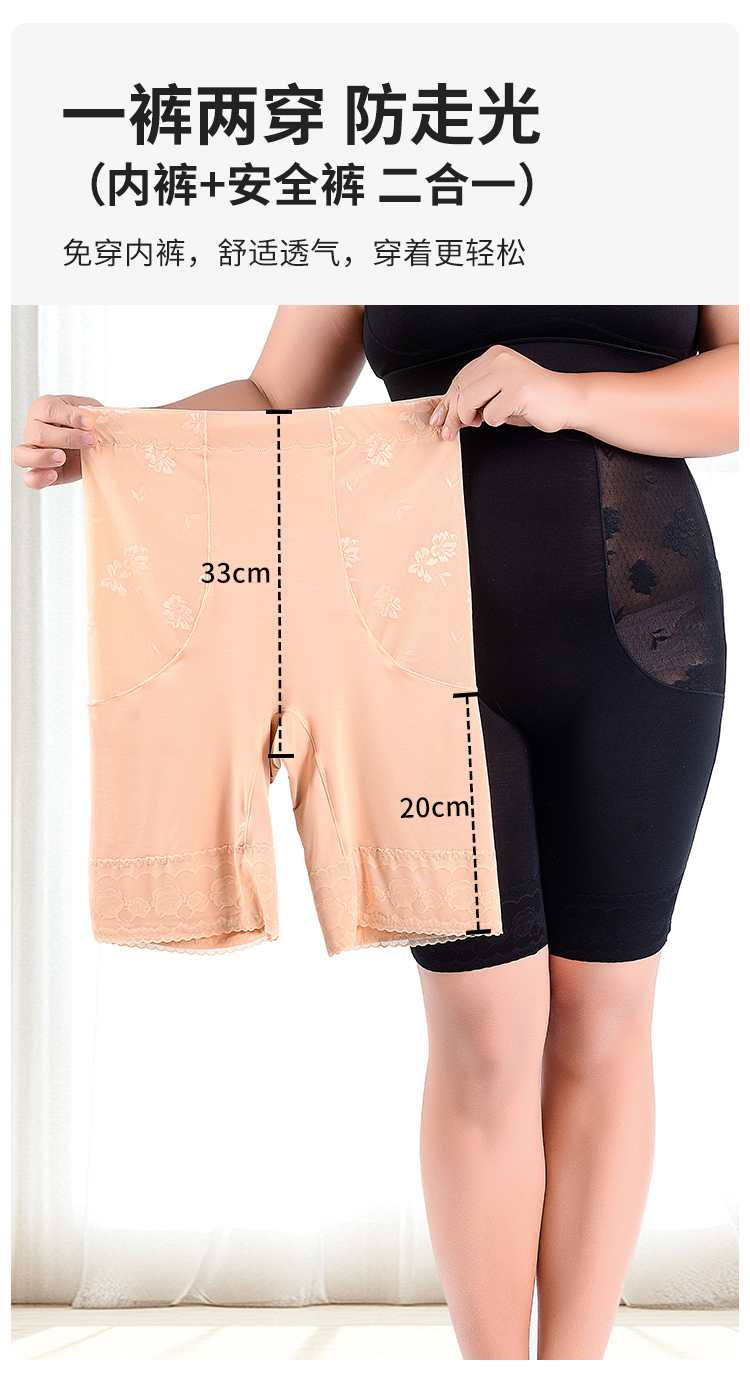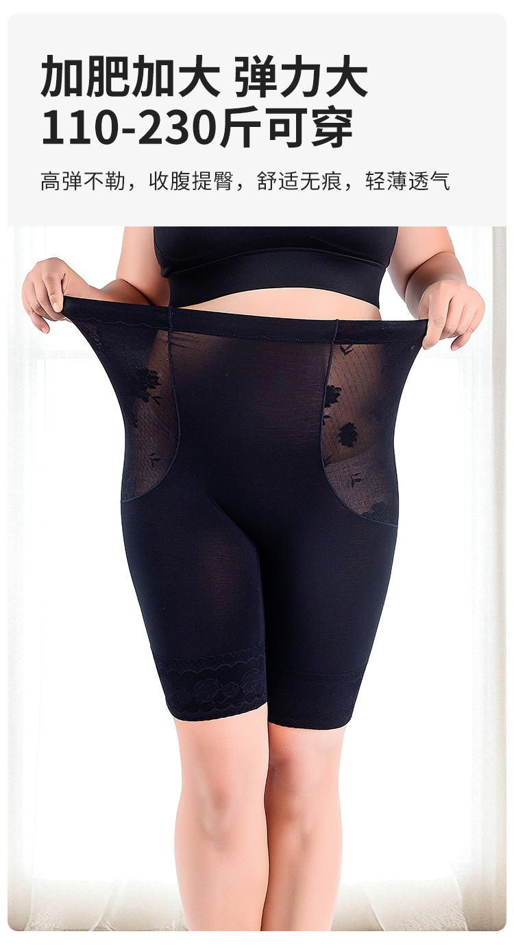 大码高腰收腹安全裤收小肚加裆部二合一打底裤5分防磨腿胖mm200斤