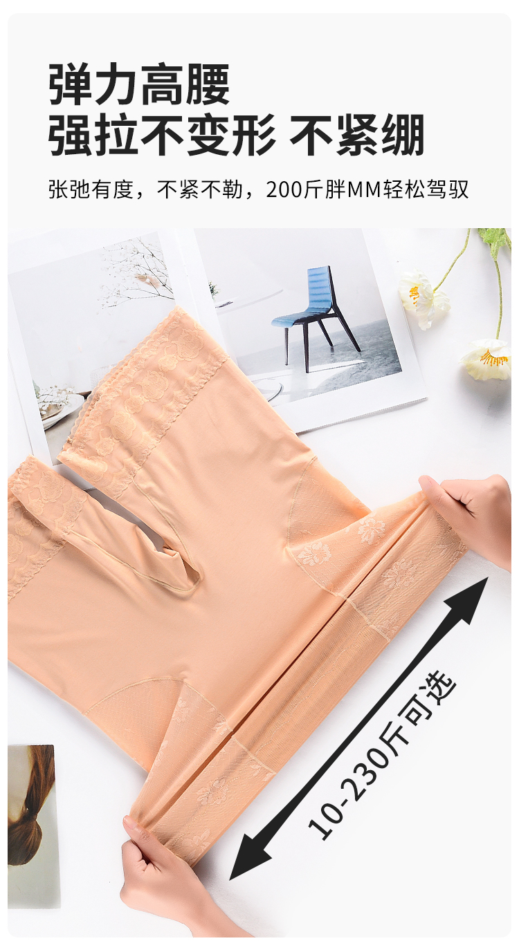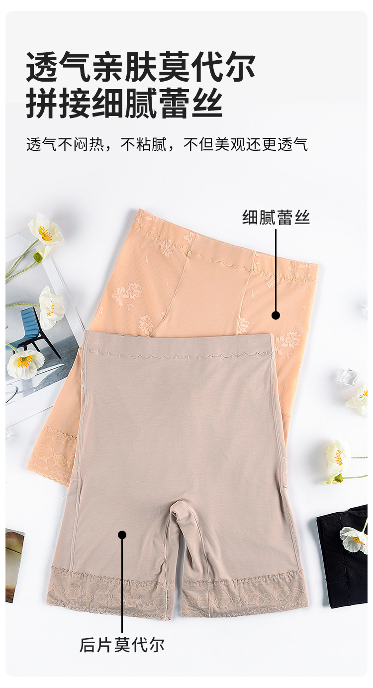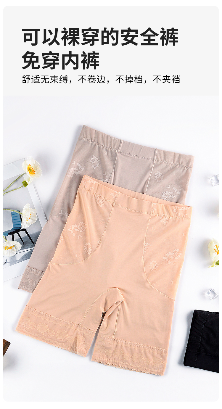 大码高腰收腹安全裤收小肚加裆部二合一打底裤5分防磨腿胖mm200斤
