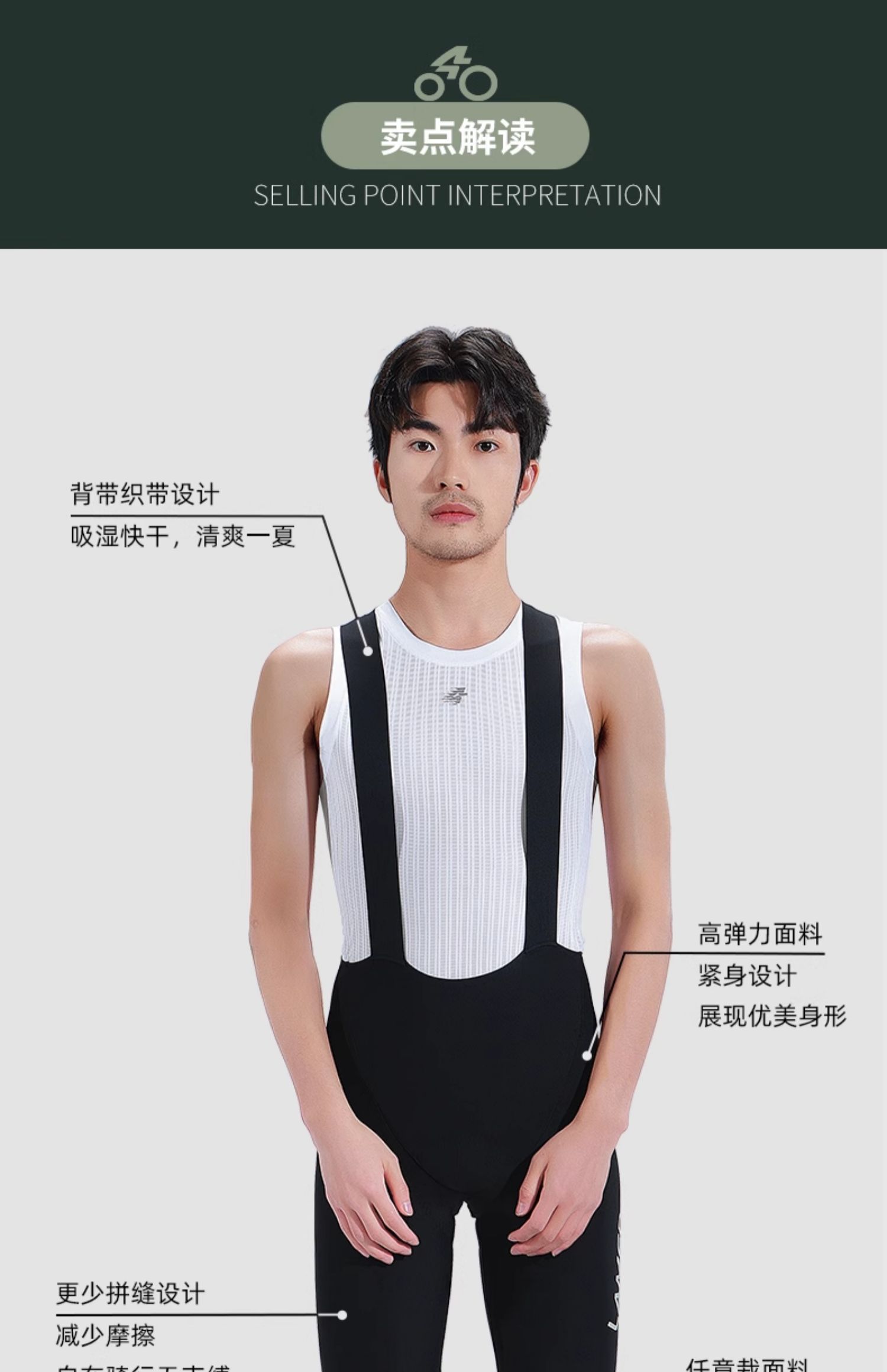 兰帕达 双箭头 骑行背带短裤春夏男公路车单车自行车裤皓月二代