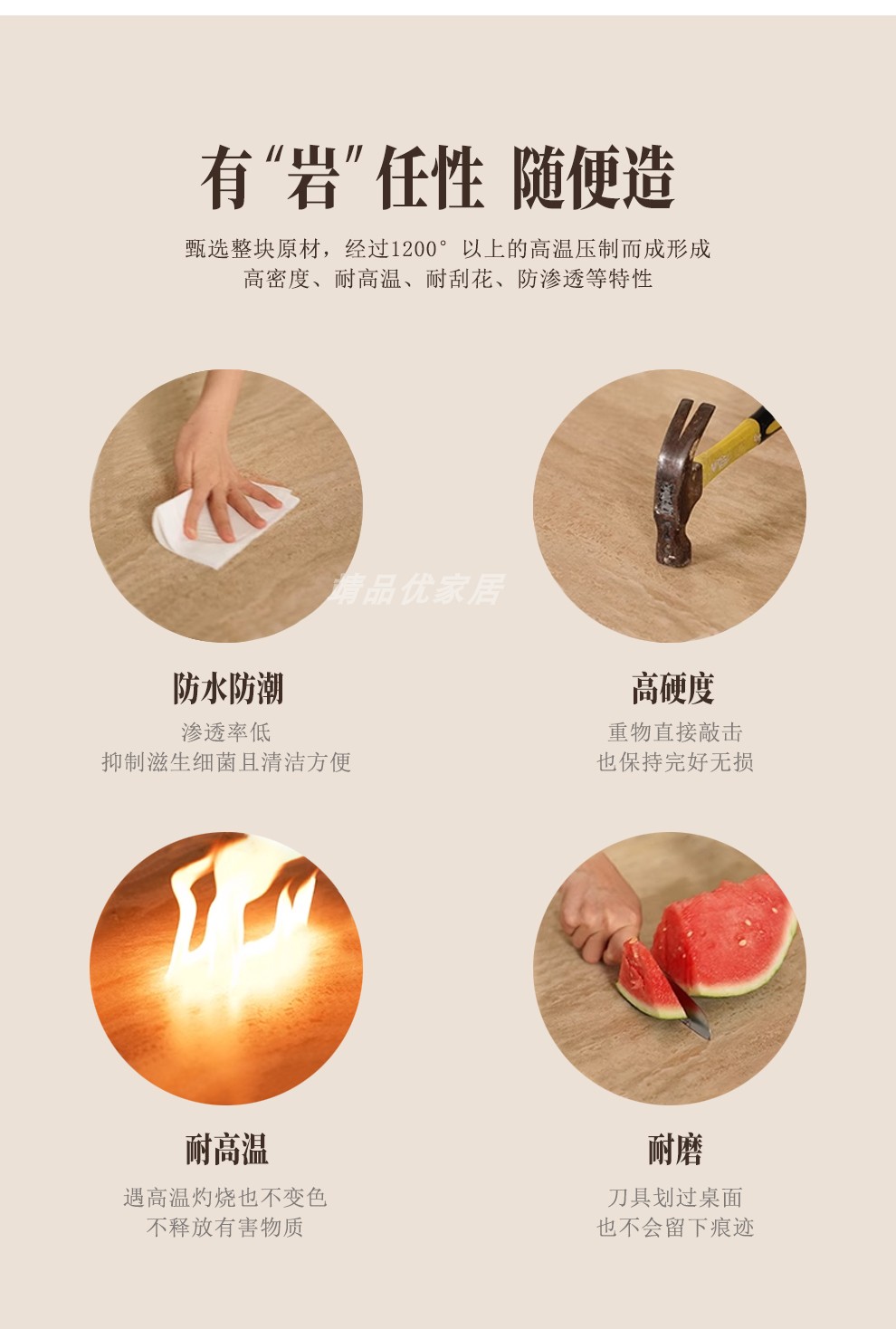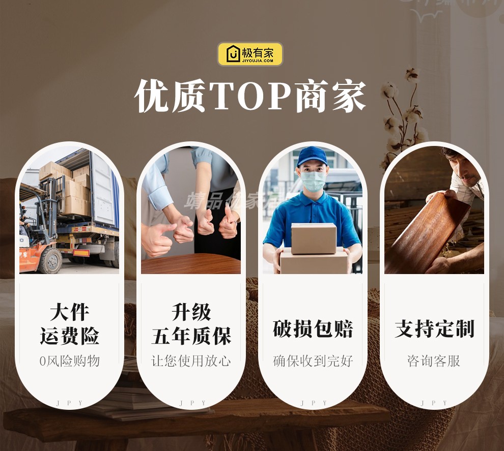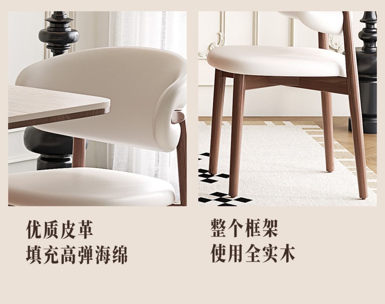 靖品优中古风洞石岩板餐桌法式复古实木饭桌长方形家用胡桃色桌椅