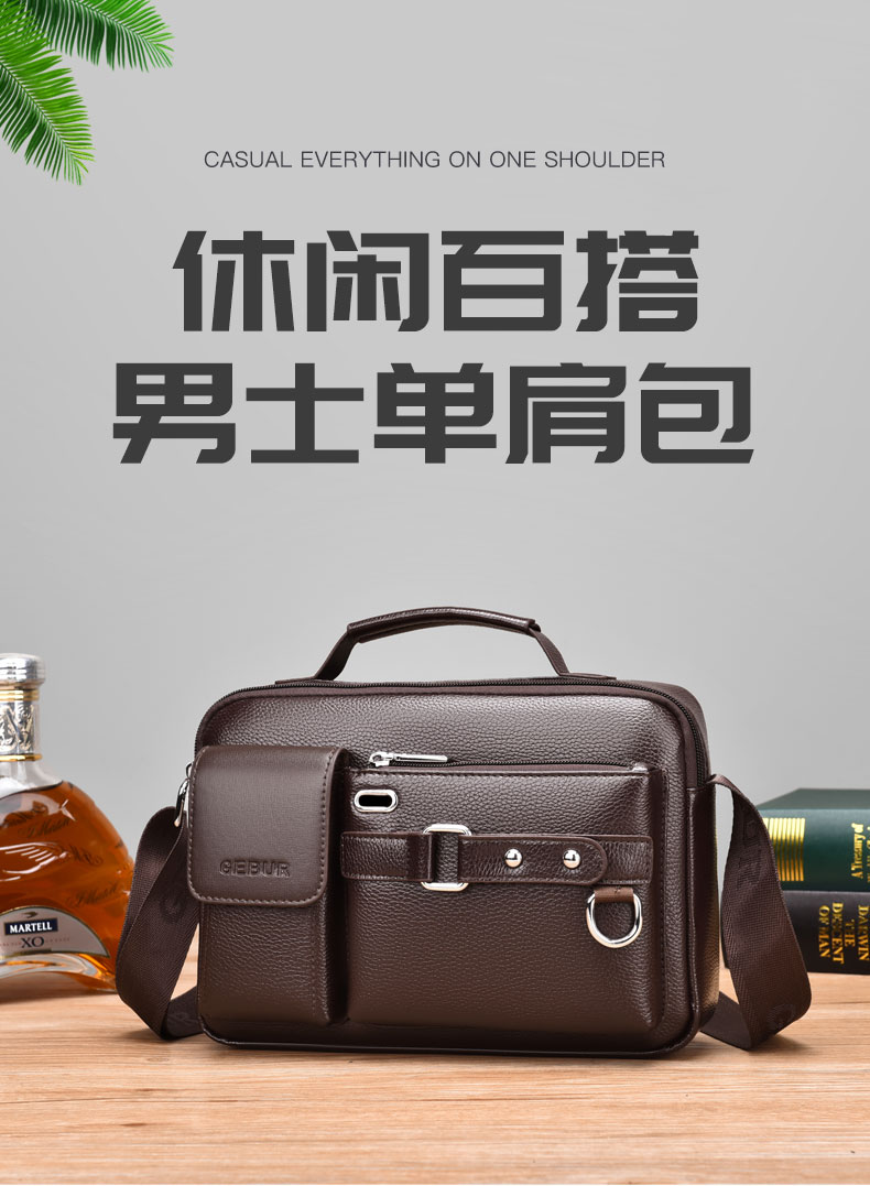 真皮男包牛皮单肩包商务斜挎包横款男士包包手提包公文包中年跨包