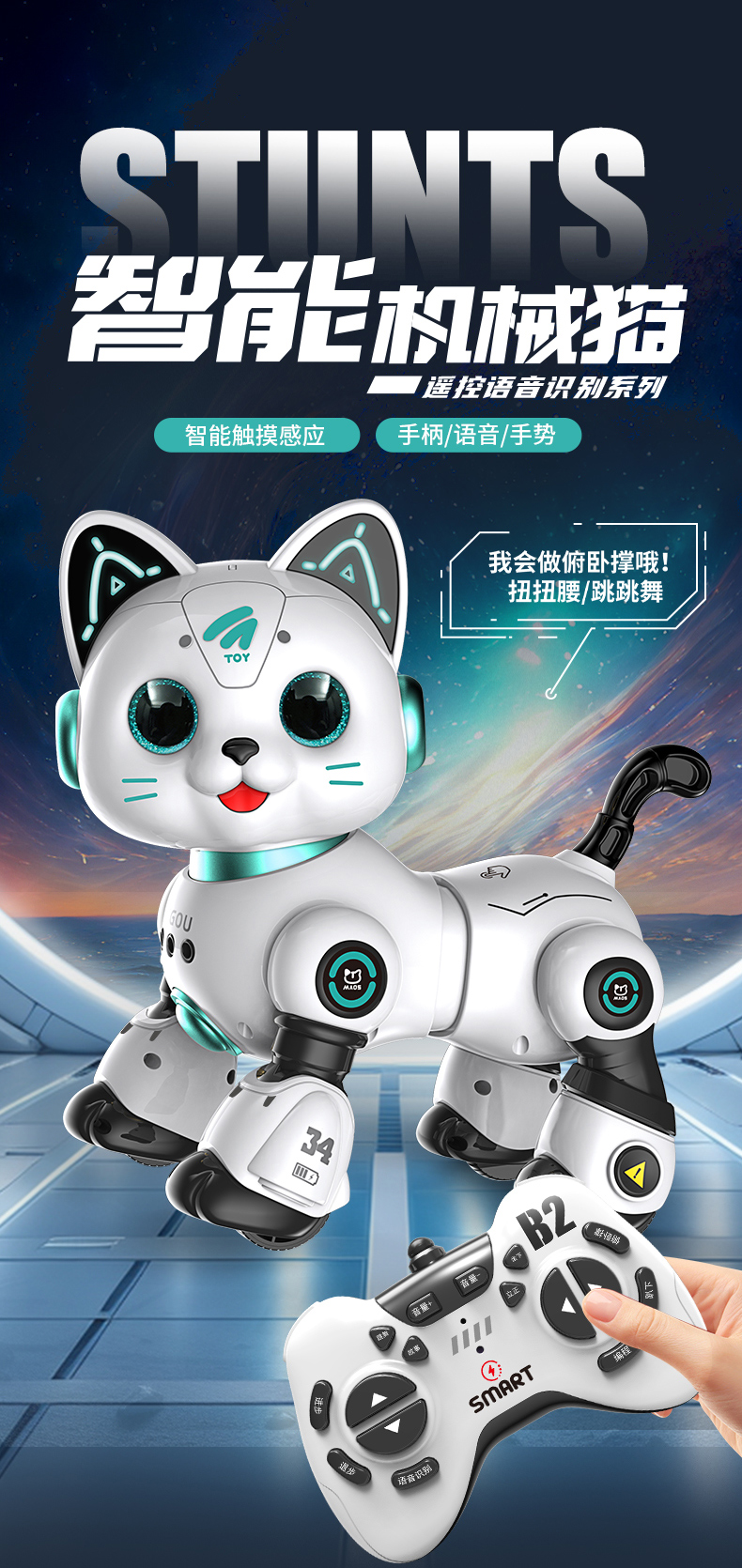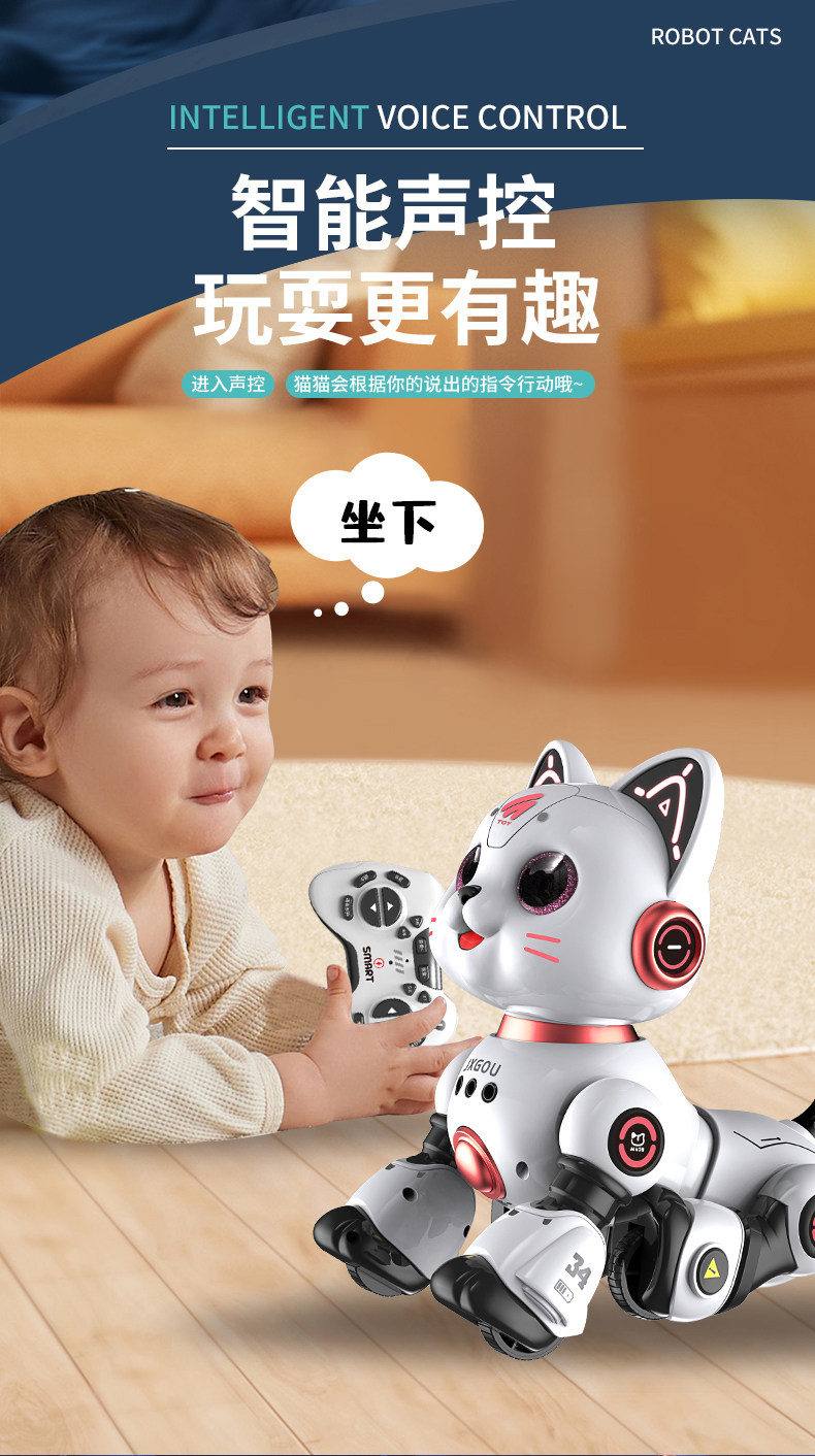 澳梦星智能机器猫儿童益智电动狗遥控走路会叫宝宝女1岁3男孩玩具