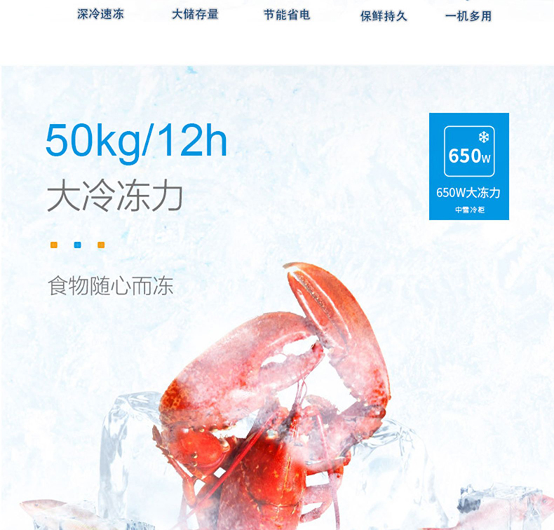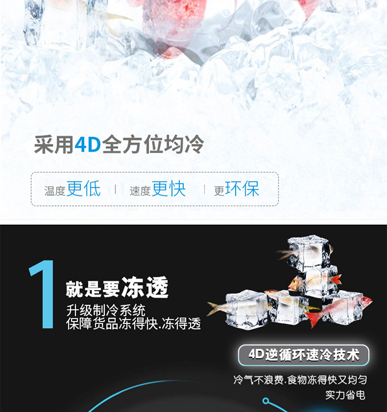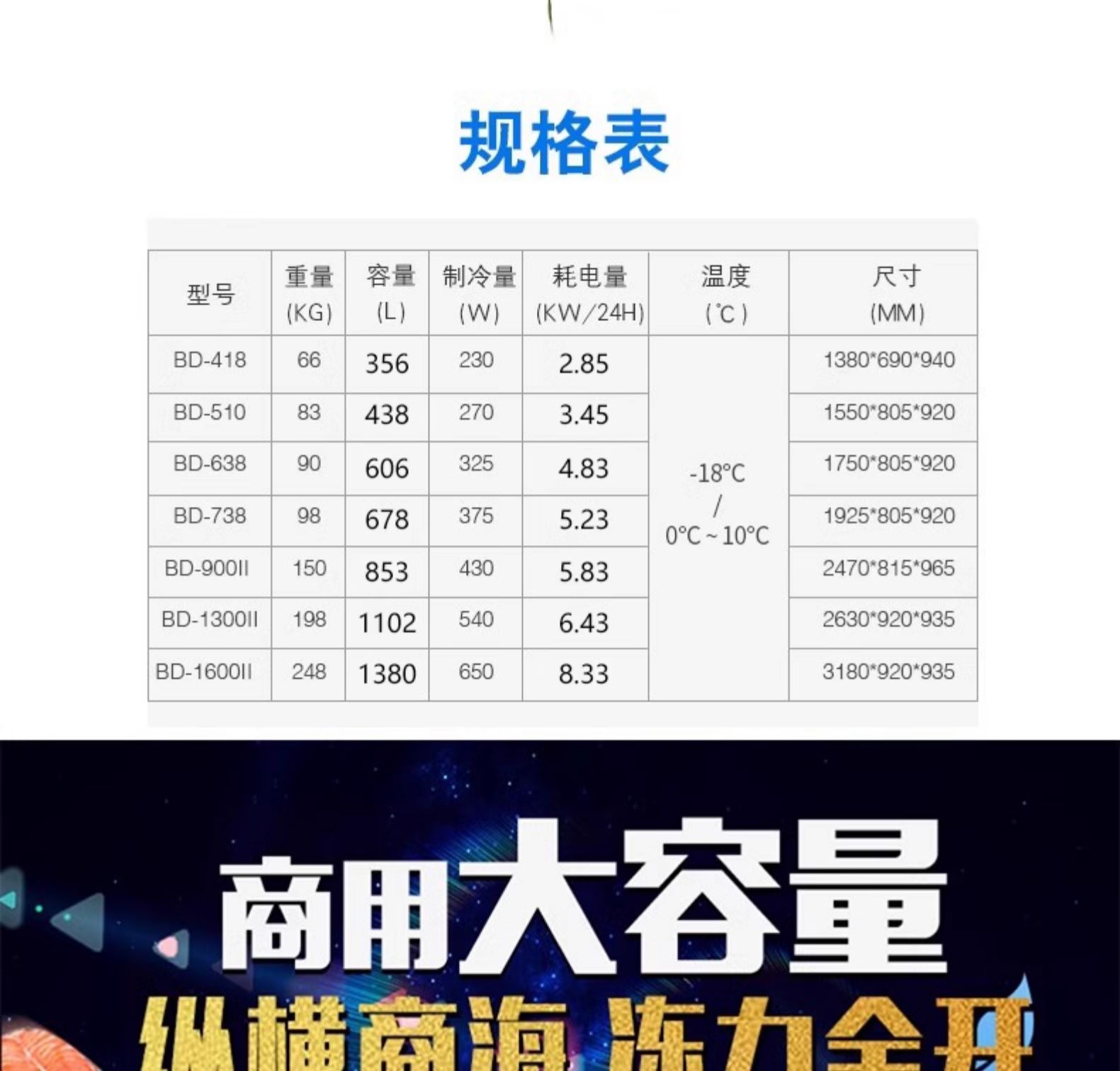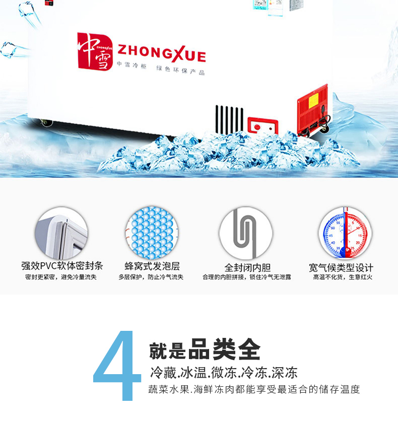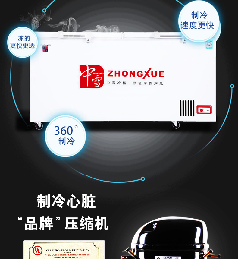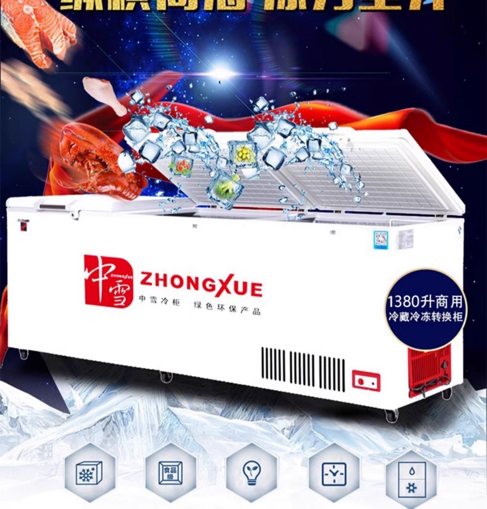 中雪卧式商用冰箱肉类冷冻柜冰柜冷藏冷柜单温速冻大容量双门急冻