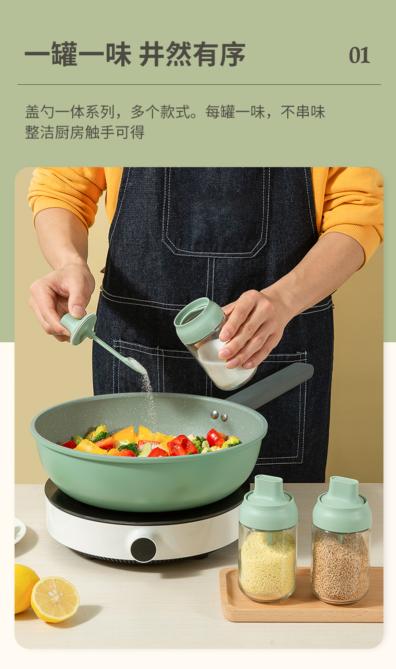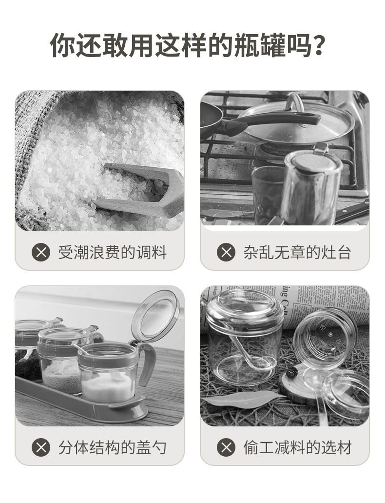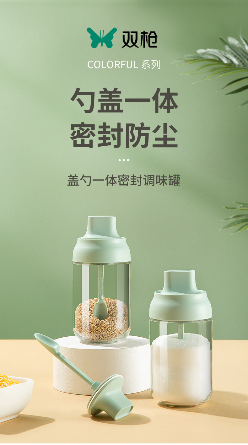 双枪调料瓶勺盖一体调味瓶调料罐厨房家用盐罐调料收纳瓶