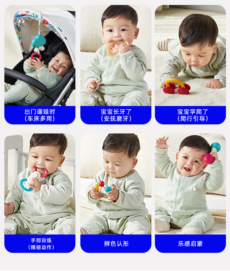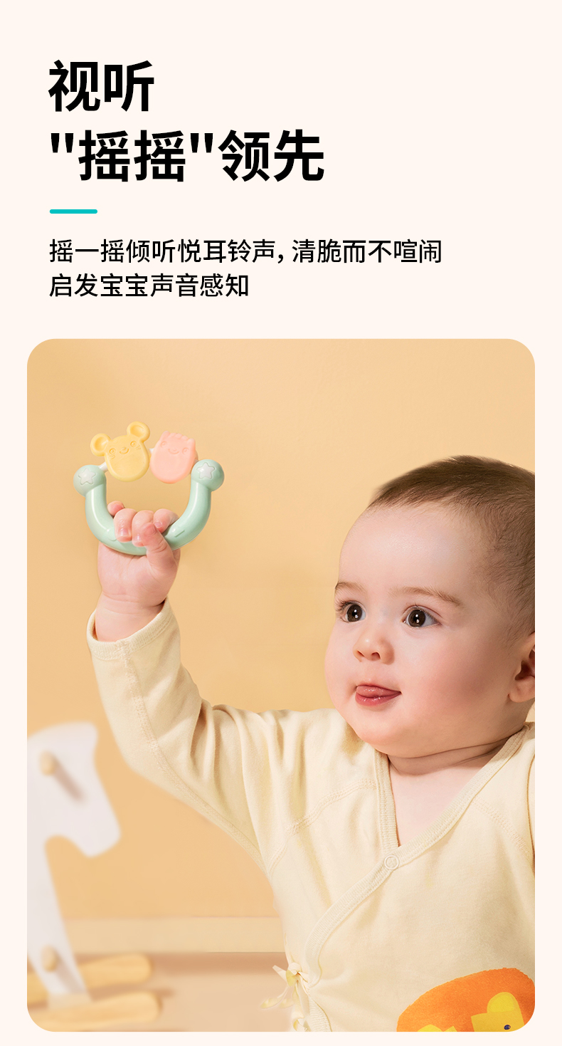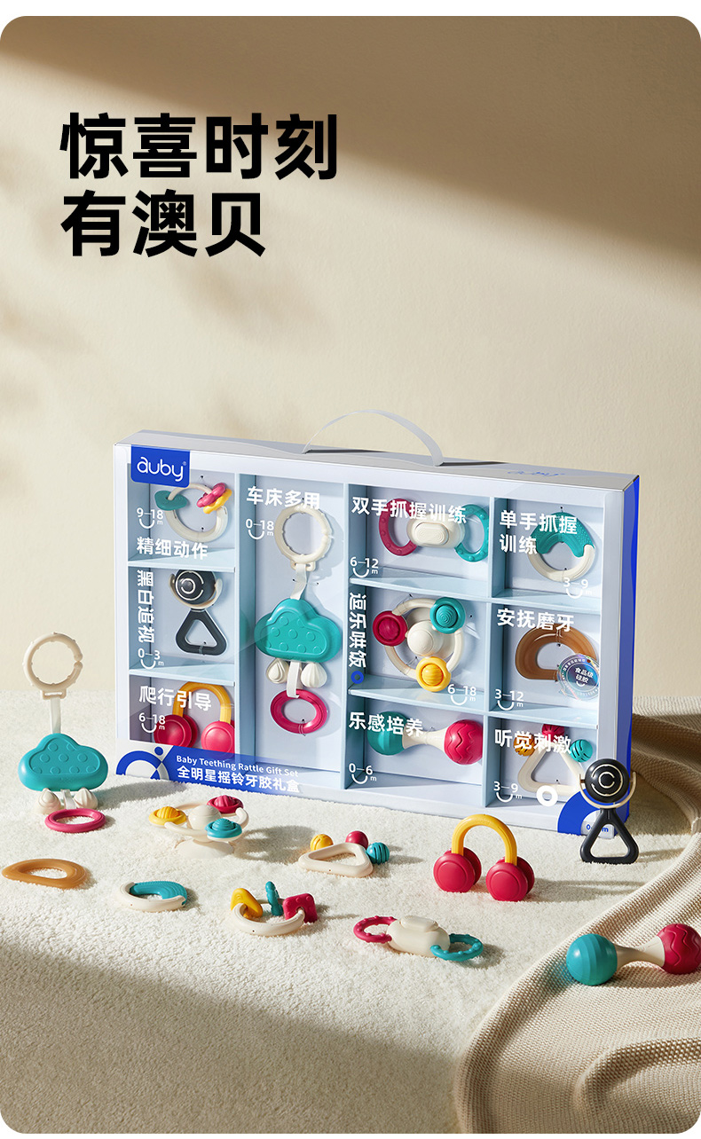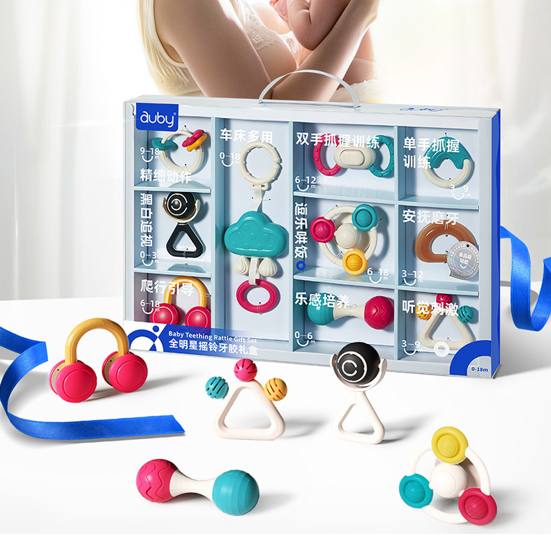 澳贝婴儿手摇铃玩具宝宝牙胶早教新生儿磨牙0一3月岁抓握训练礼盒