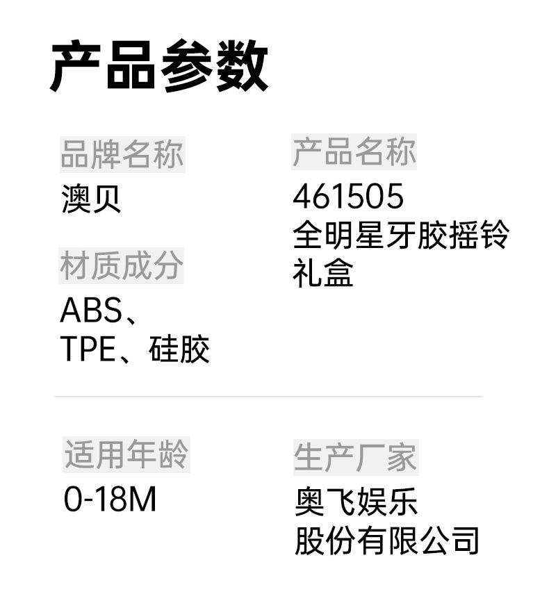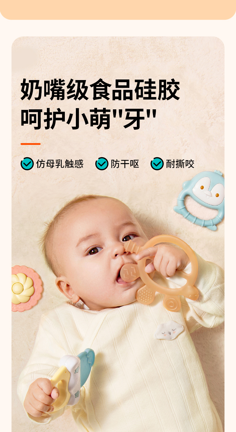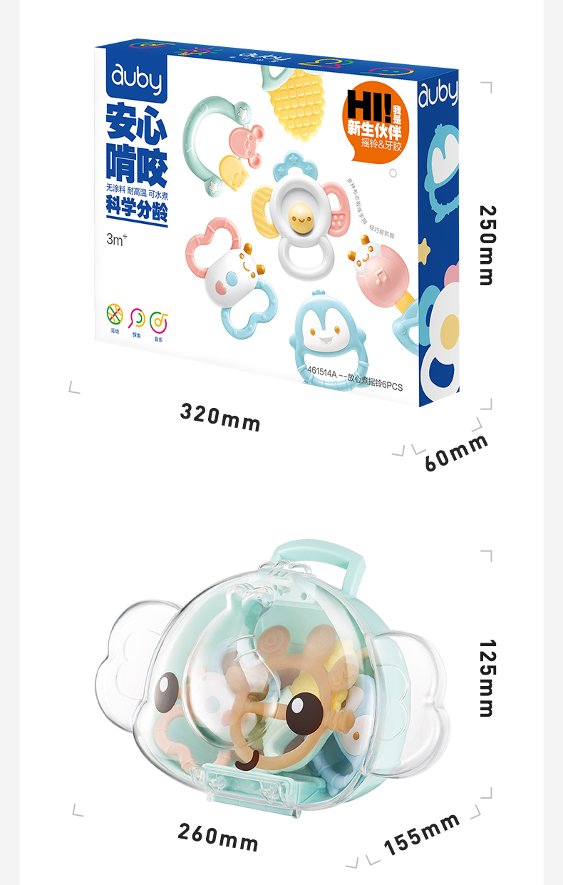 澳贝婴儿手摇铃玩具宝宝牙胶早教新生儿磨牙0一3月岁抓握训练礼盒