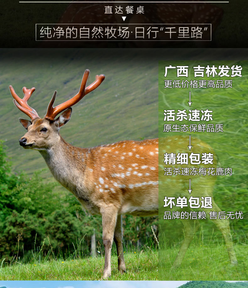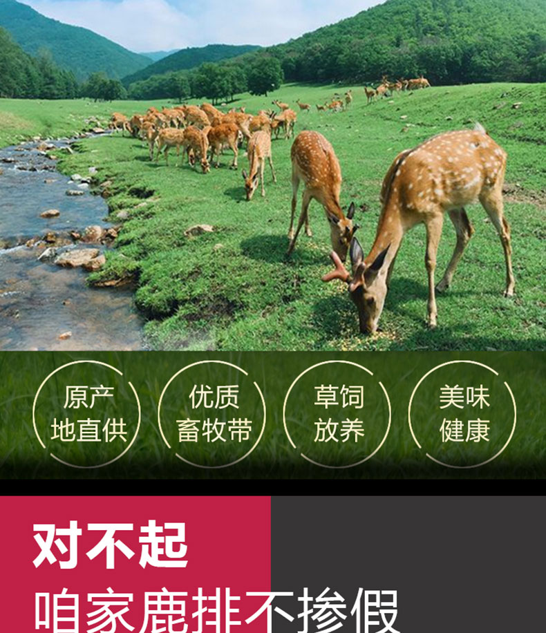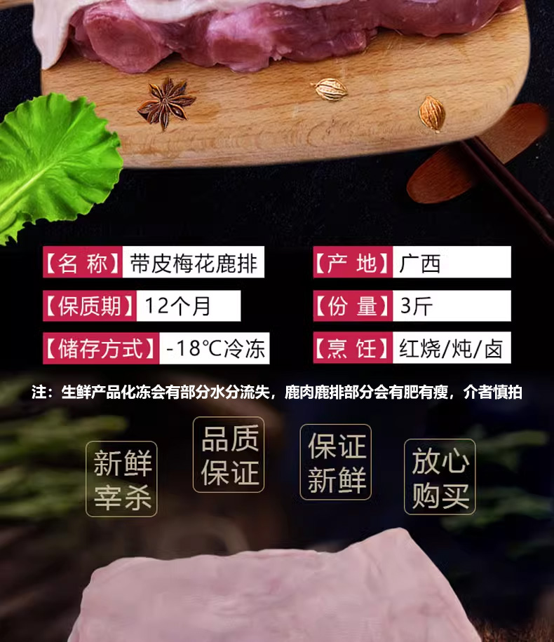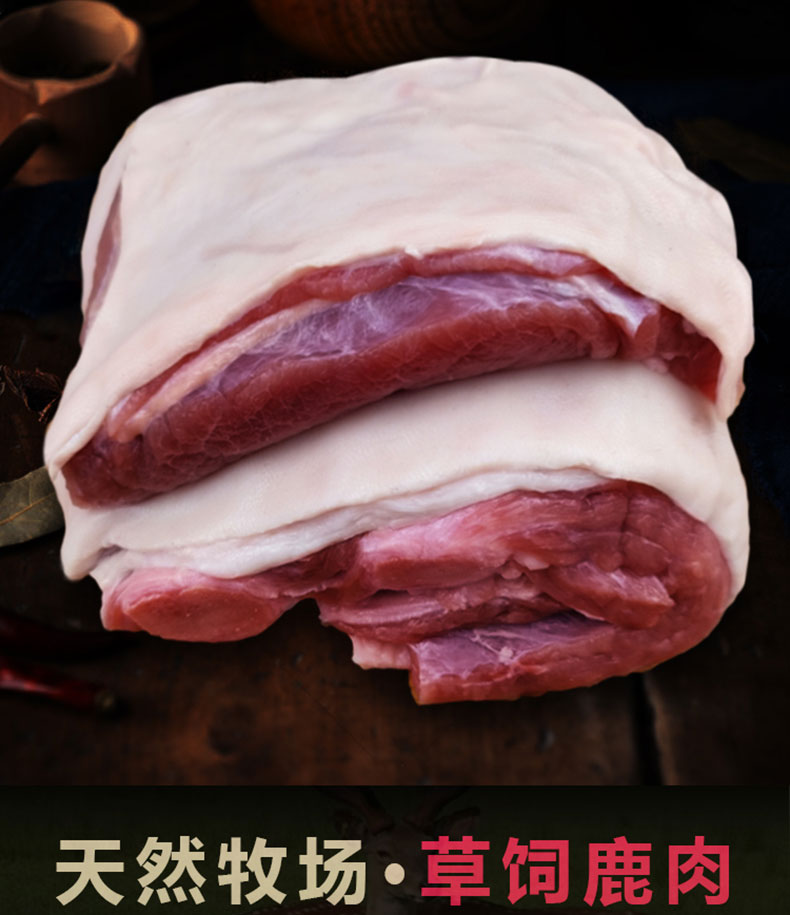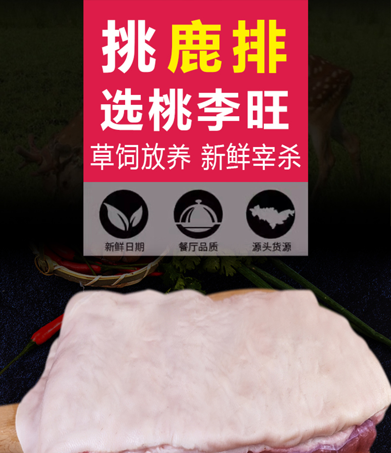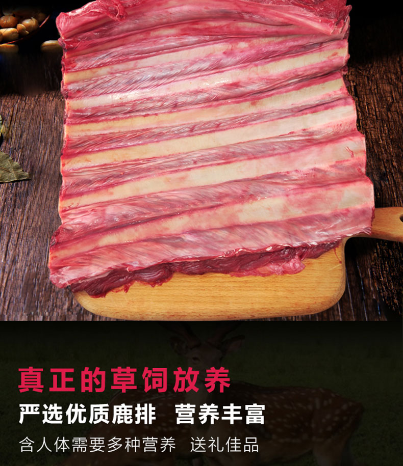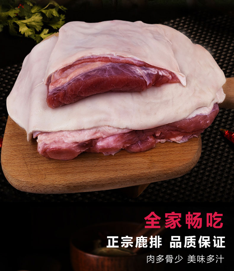 梅花鹿排 新鲜现杀带皮鹿排 冷冻成年鲜带骨鹿肉生鲜火锅烧烤食材
