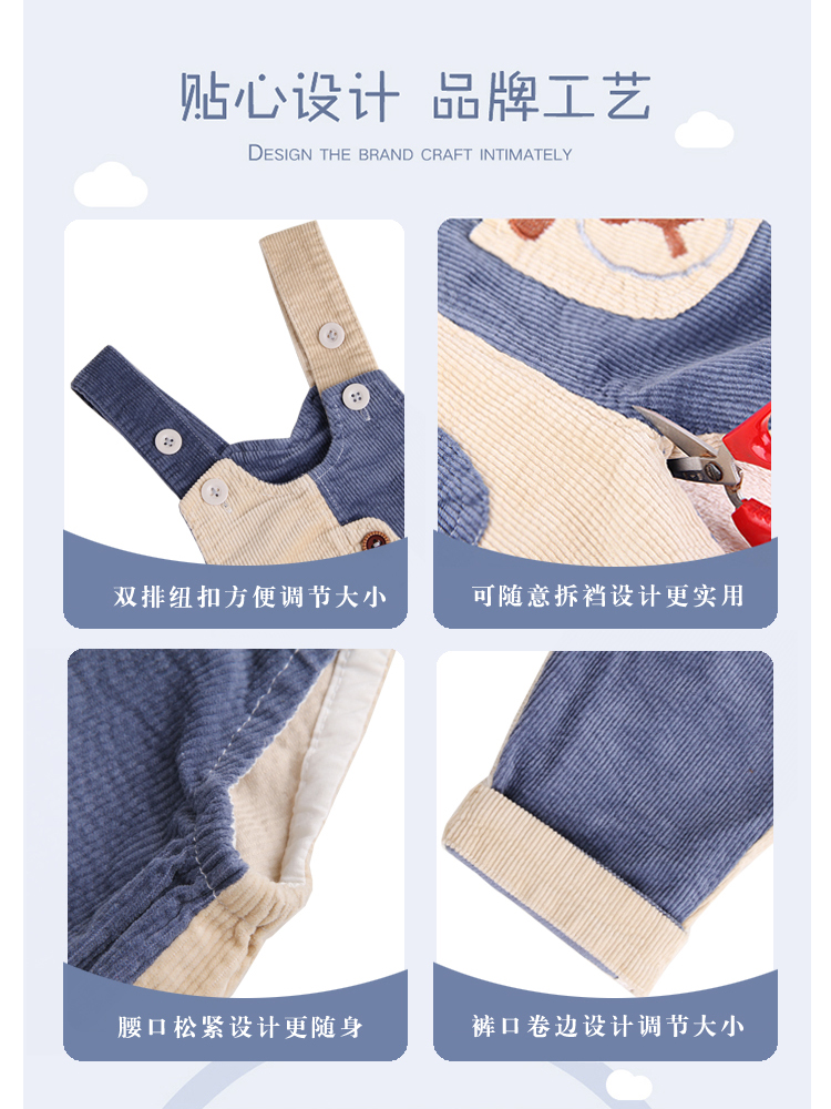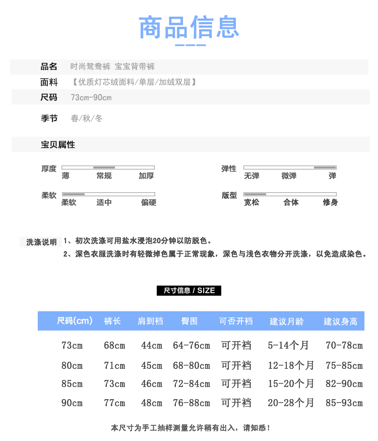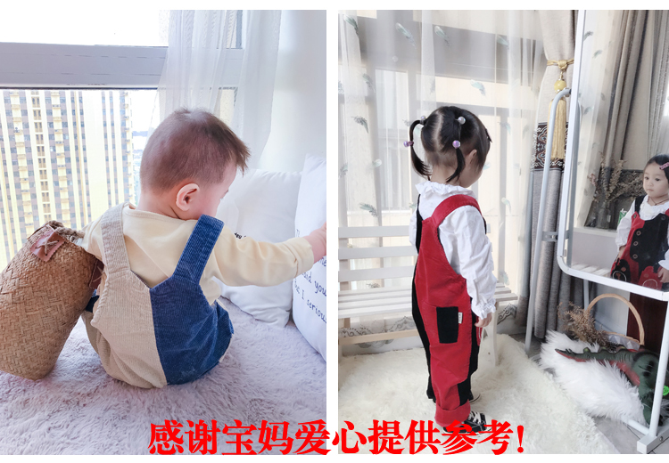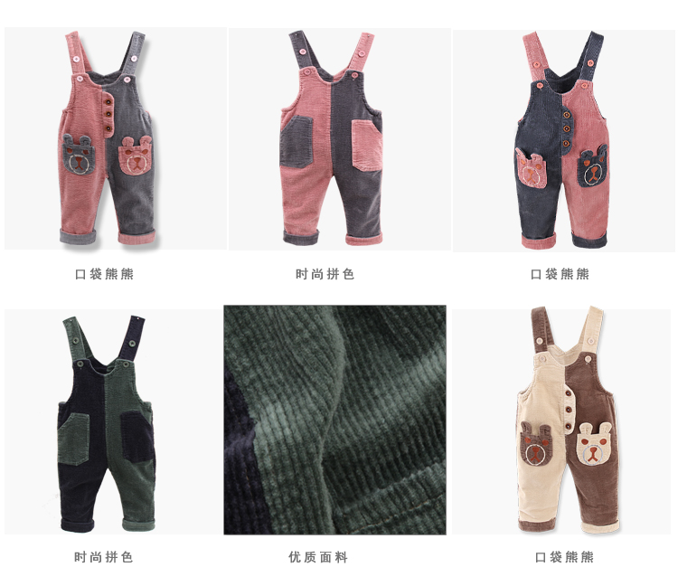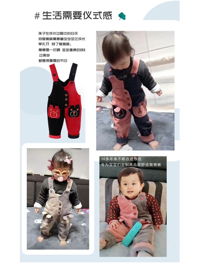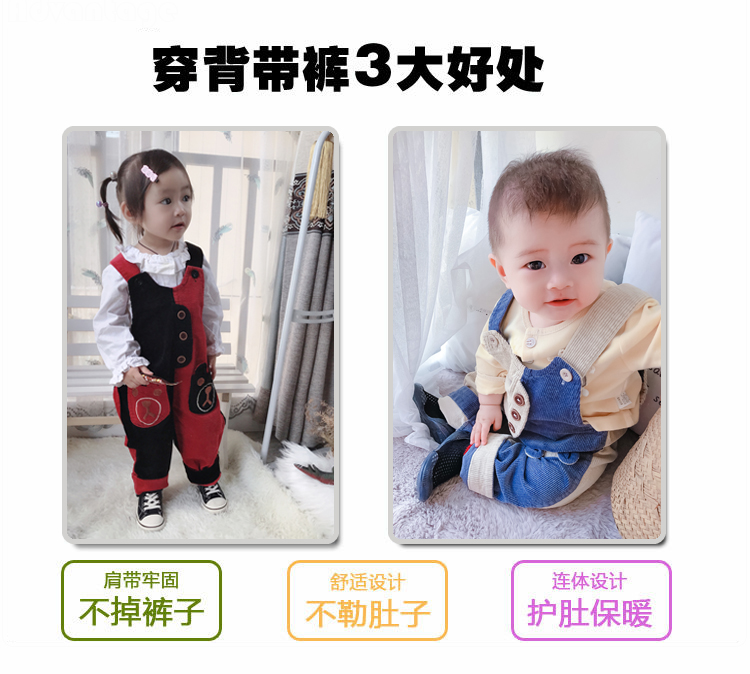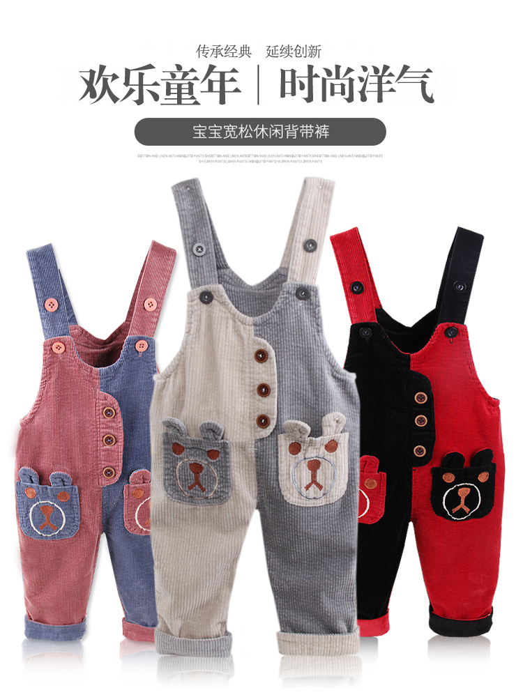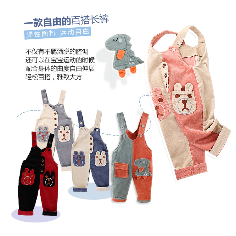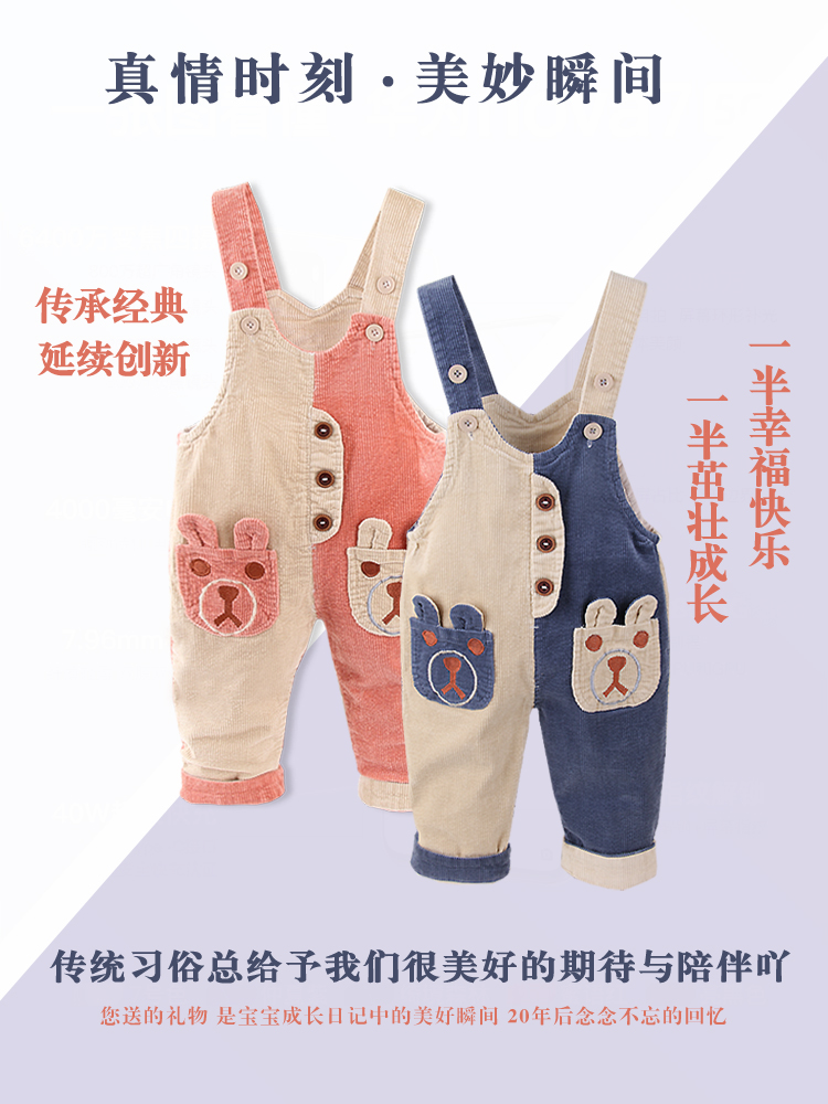 春秋时尚单裤宝宝鸳鸯裤宽松外裤子男女婴儿童装周岁背带裤单扎牙
