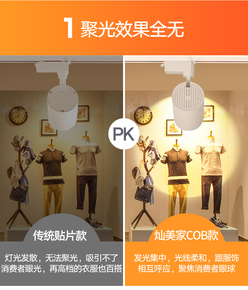 轨道射灯店铺商用led服装店导轨式超亮天花灯嵌入式cob聚光背景墙