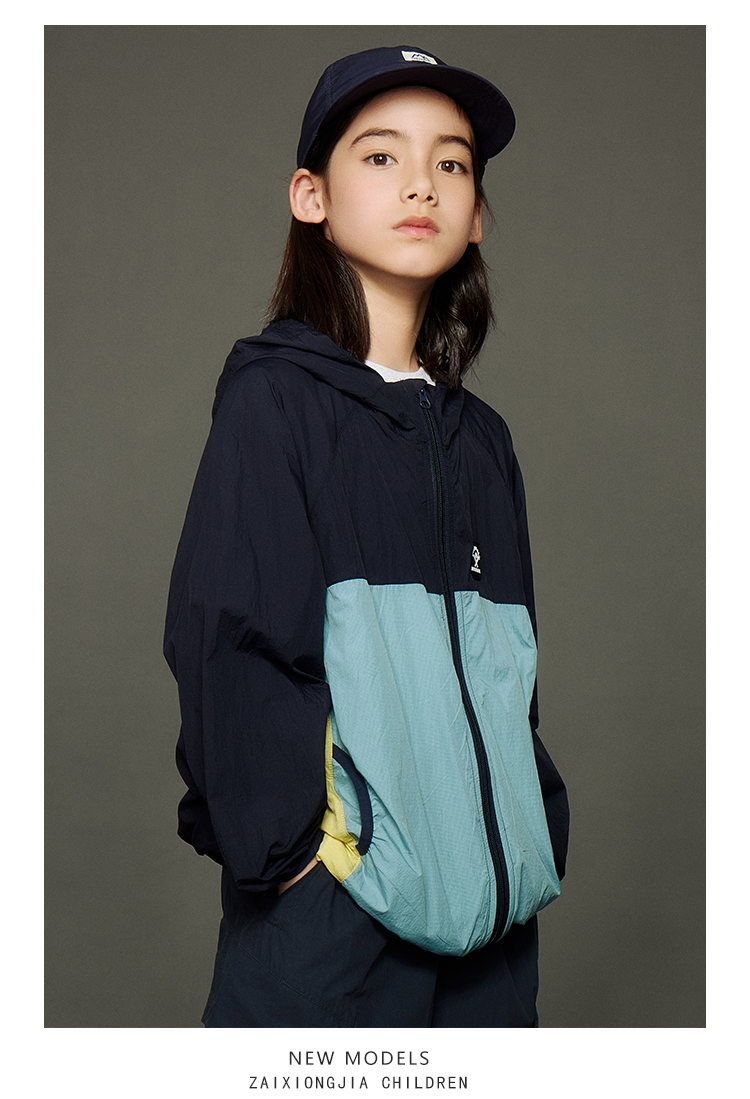 轻薄撞色夏季连帽空调防蚊外套户外宽松皮肤衣男女童装儿童上衣