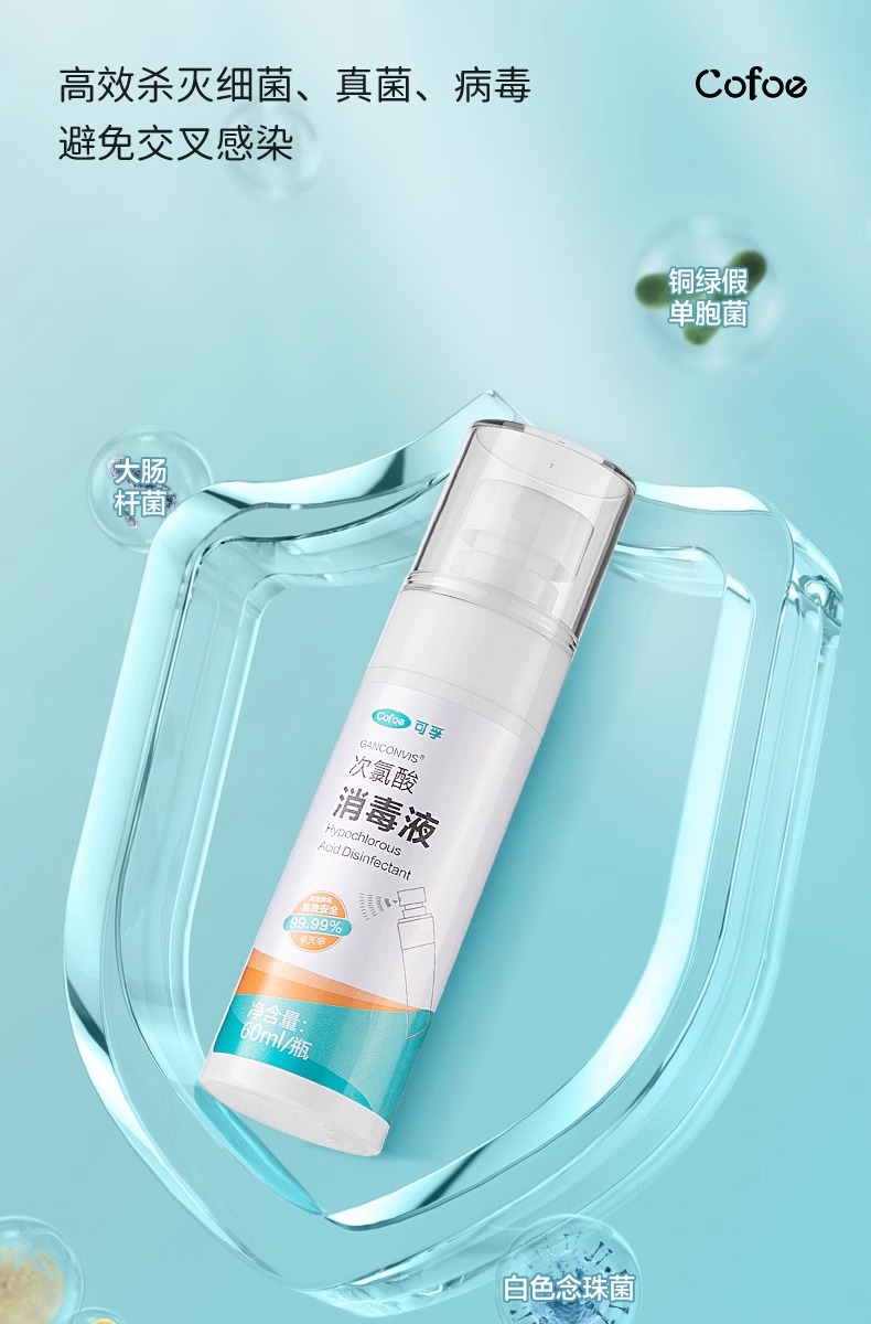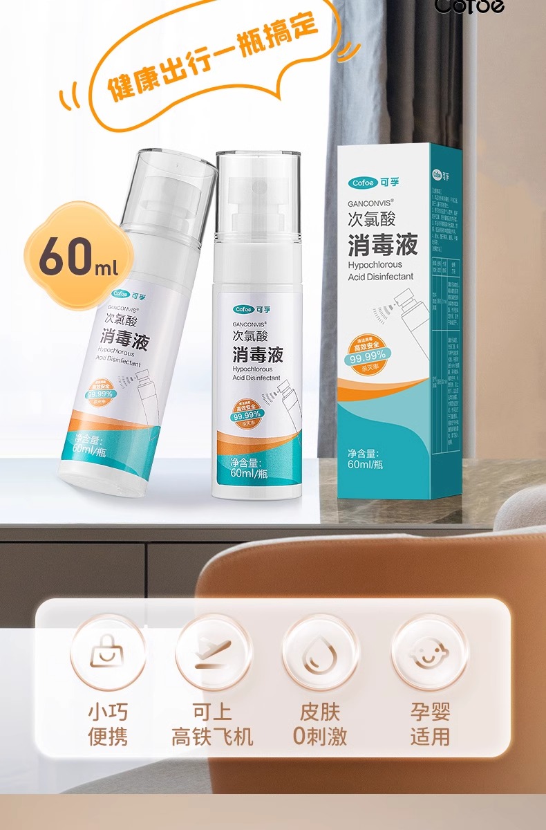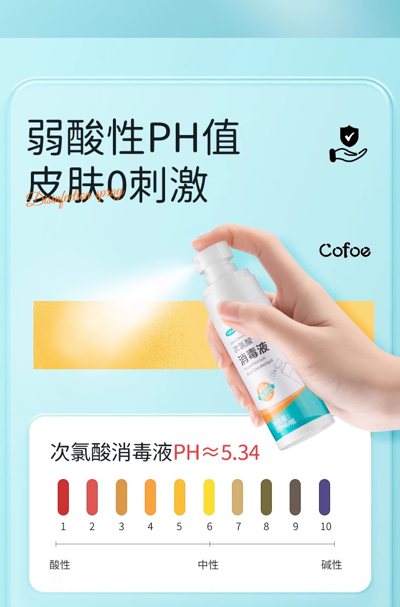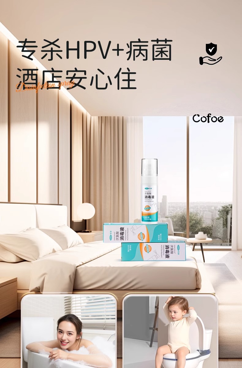 可孚hpv次氯酸消毒液喷雾酒店浴缸马桶床单水壶洗衣便携旅行杀菌