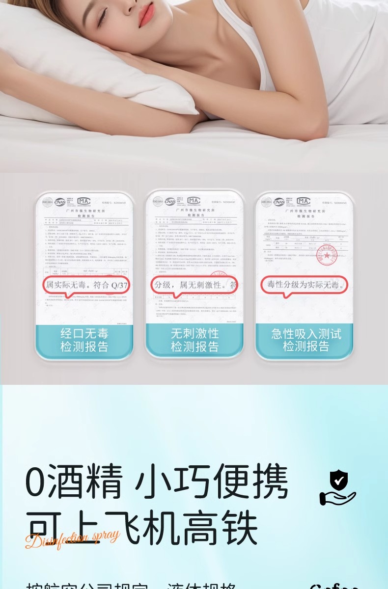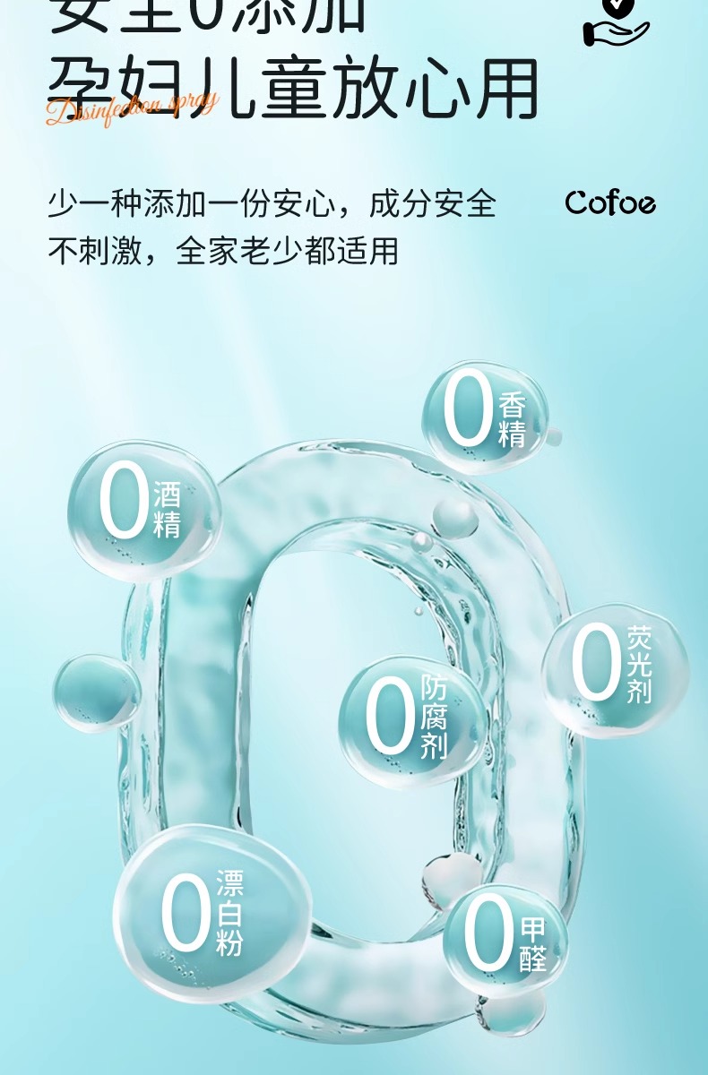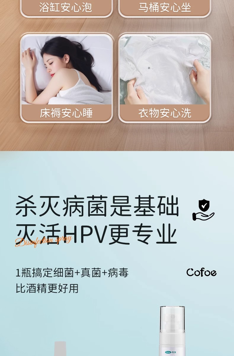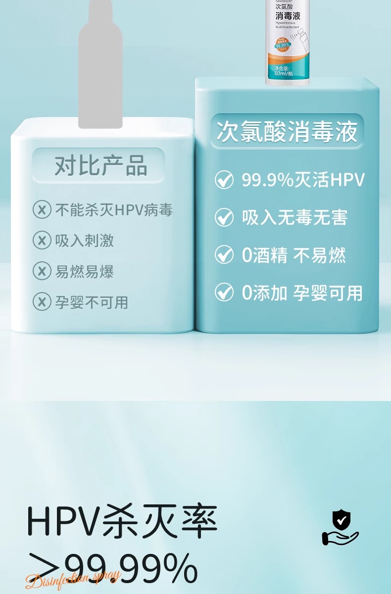 可孚hpv次氯酸消毒液喷雾酒店浴缸马桶床单水壶洗衣便携旅行杀菌