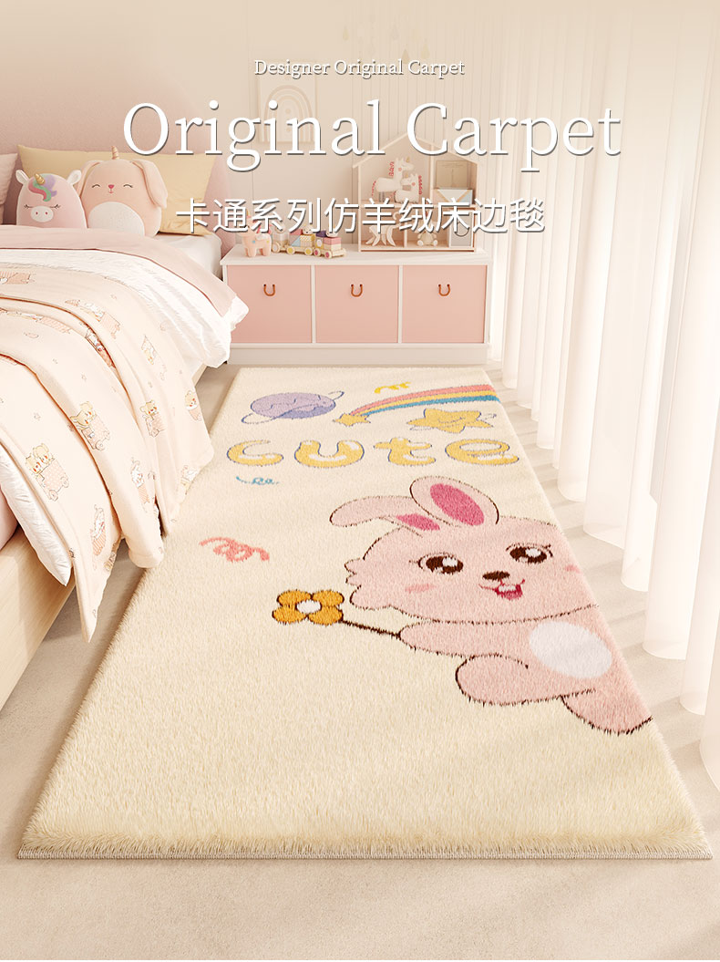 卡通可爱仿羊绒地毯个性创意地垫家用卧室客厅加厚动物房间床边毯