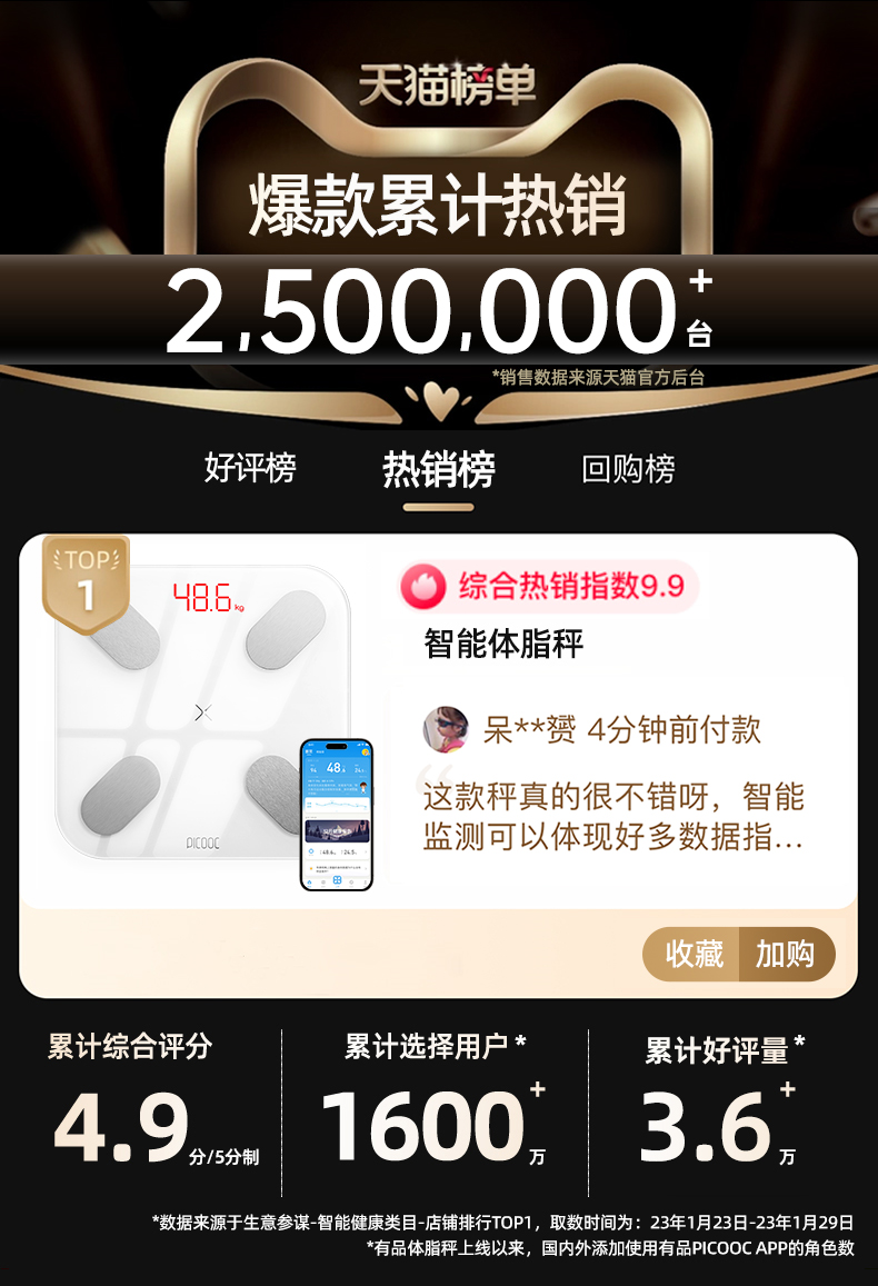 有品体脂称智能精准家用充电体重秤人体秤专业小型健康男女生测体脂减肥瘦身picooc电子称体脂秤