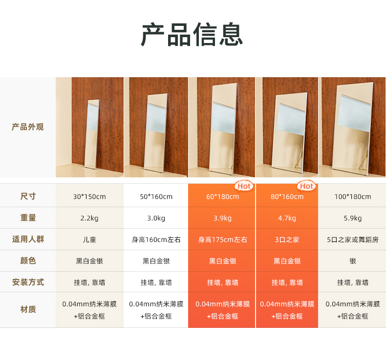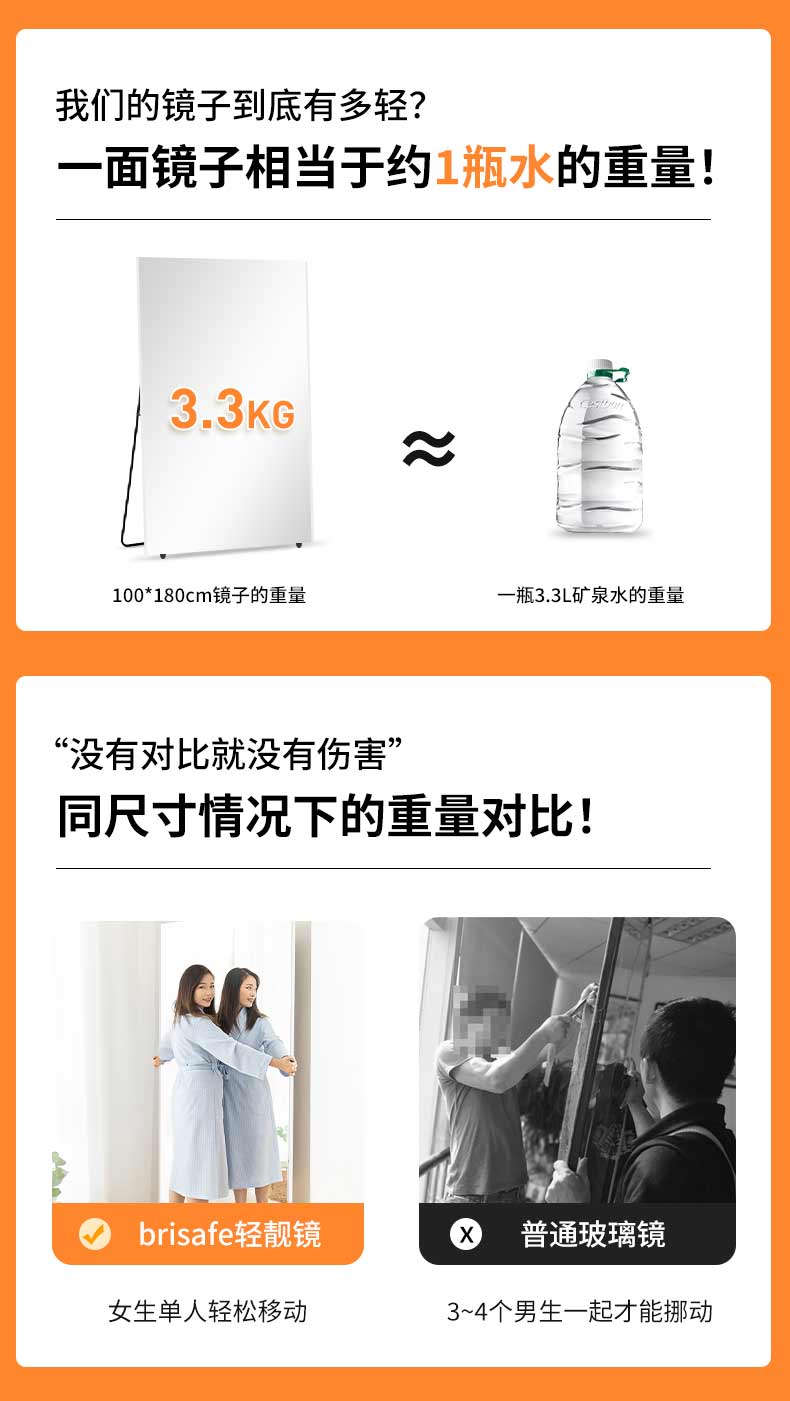 brisafe舞蹈镜可移动跳舞镜子家用练舞镜健身大镜子全身镜穿衣镜