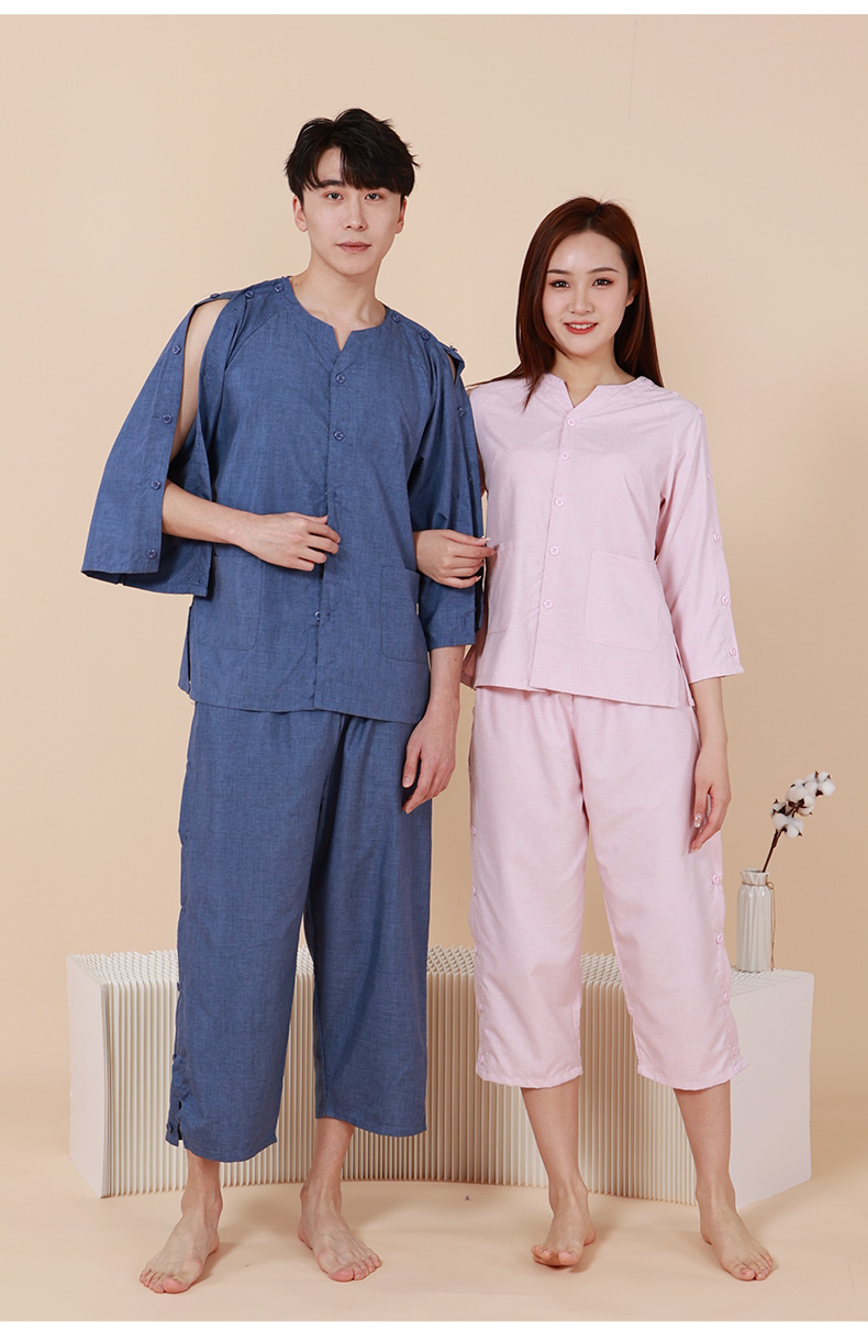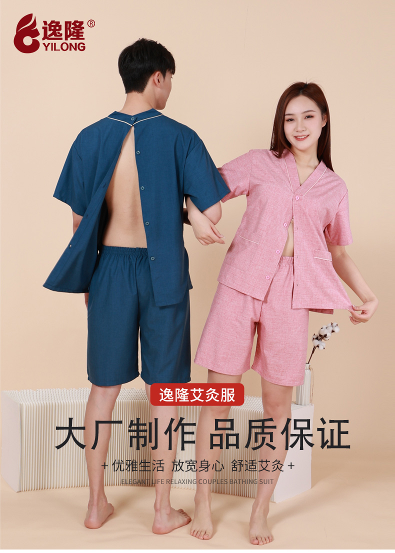艾灸服纯棉女前后开衫中医理疗服专用后背开扣针灸拔罐汗蒸按摩服