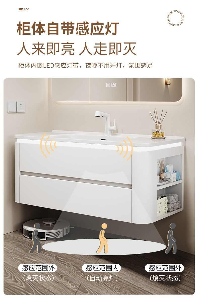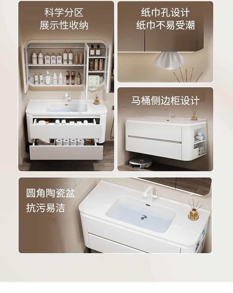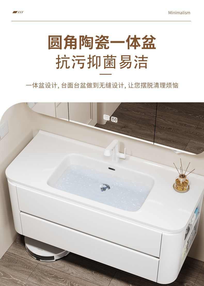 JONIMW橡木烤漆浴室柜现代侧边收纳卫生间陶瓷一体实木洗手脸面盆