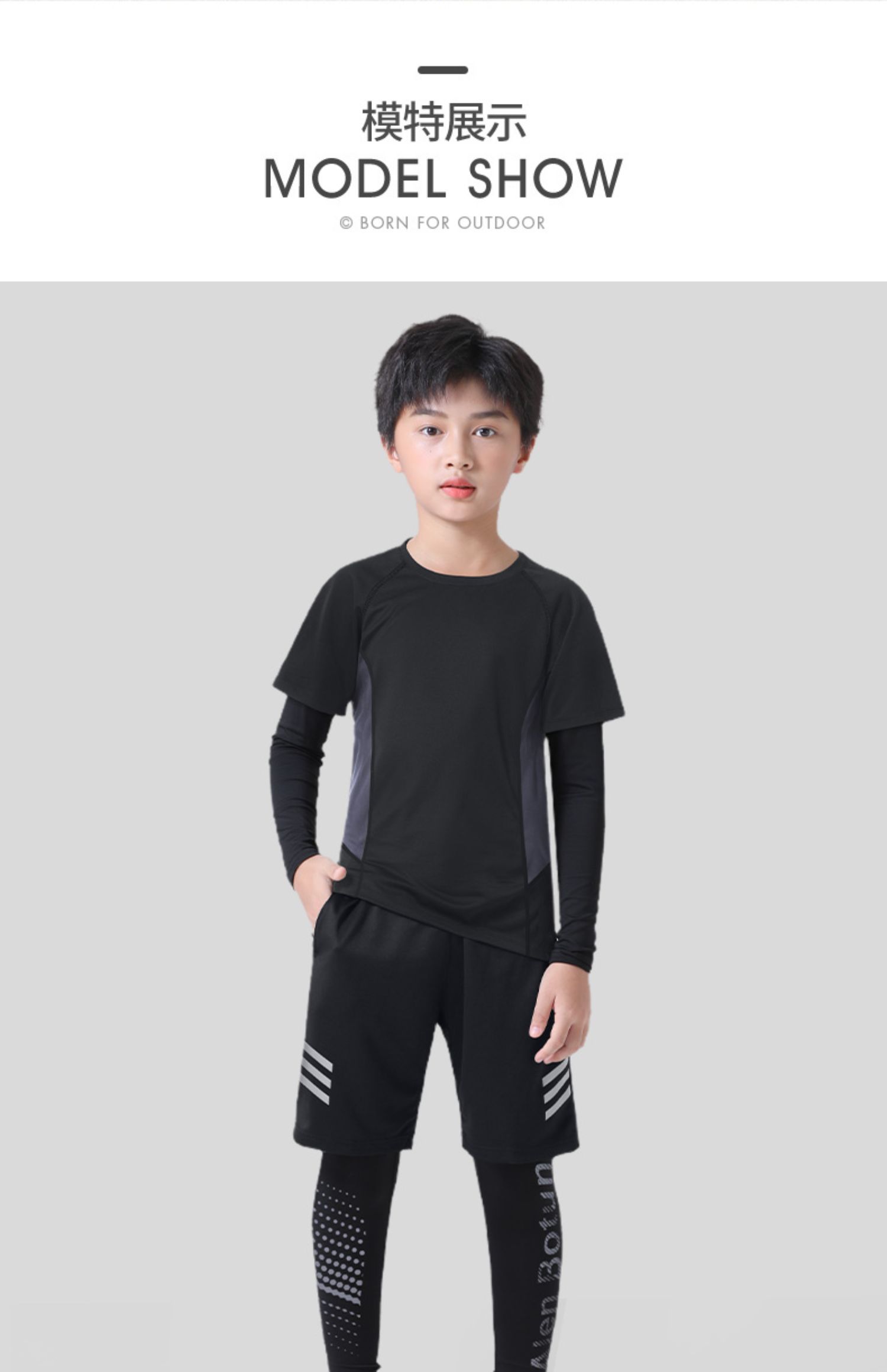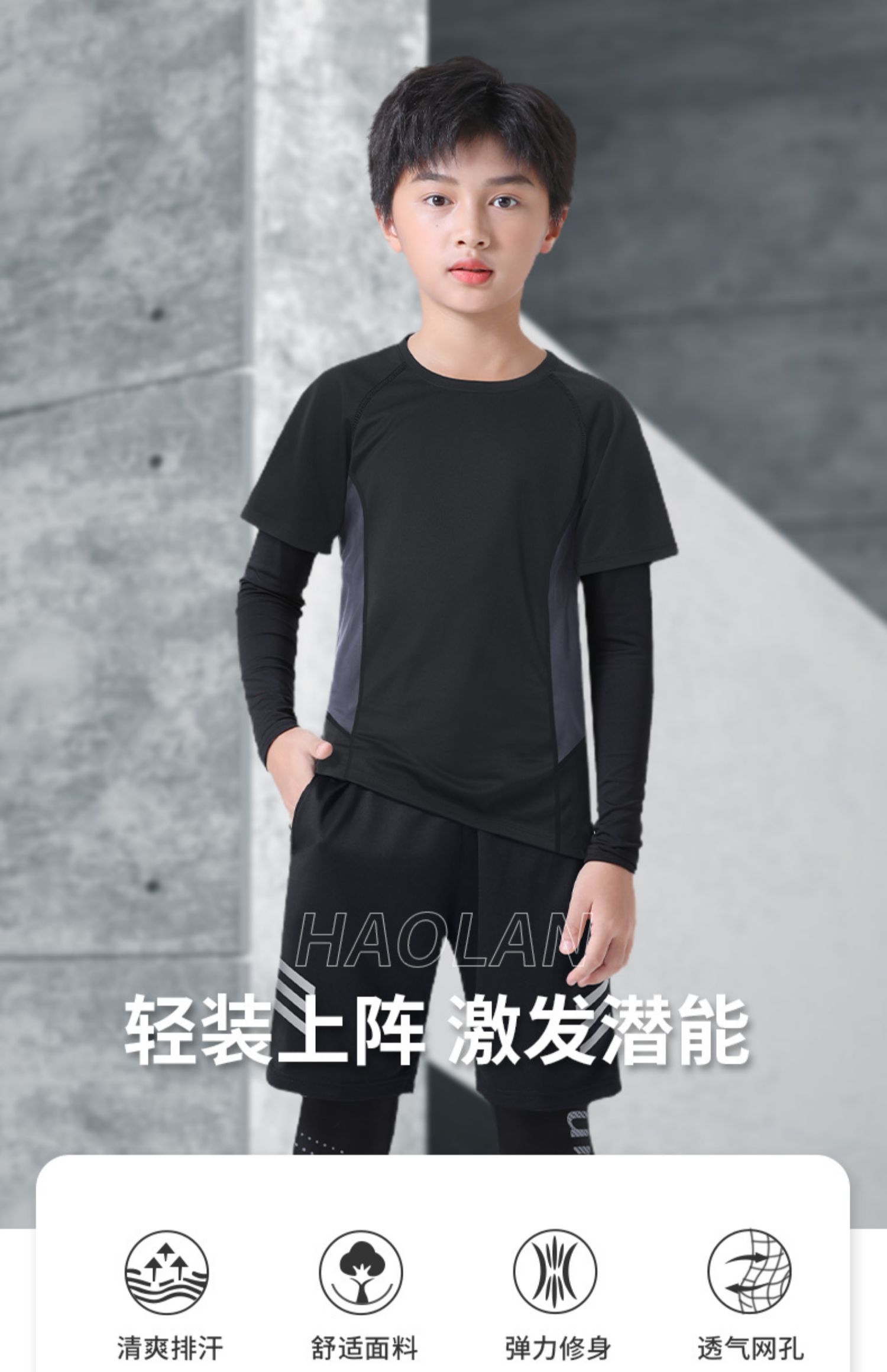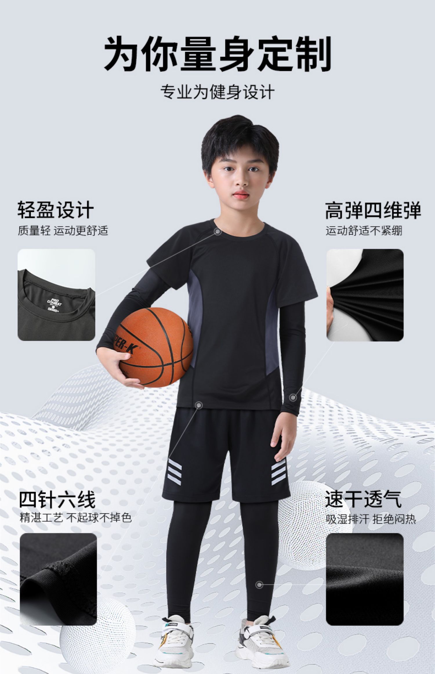 儿童紧身衣训练服速干跑步运动套装春季篮球打底男童春秋足球散打