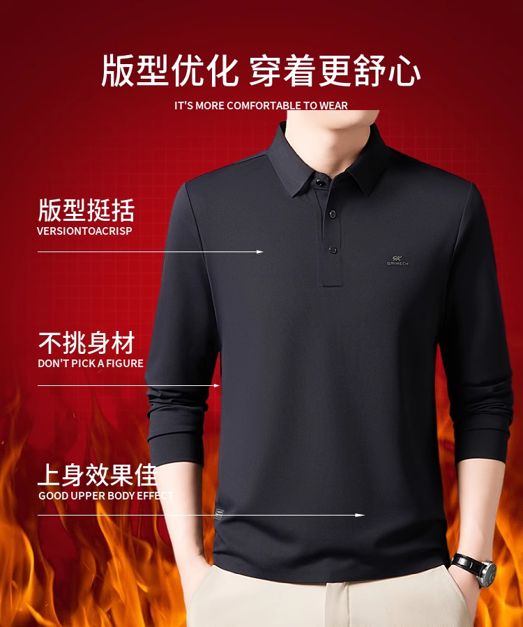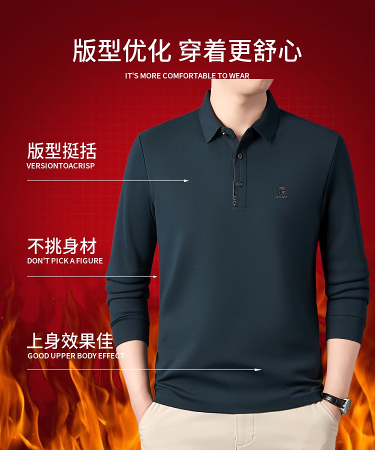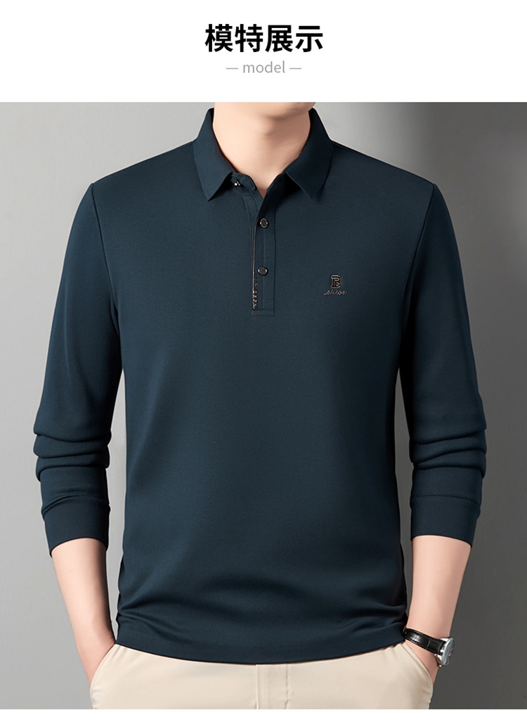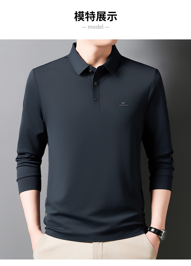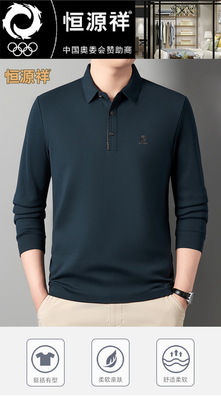 恒源祥羊毛长袖T恤男士春秋季休闲翻领打底POLO衫上衣中年爸爸装