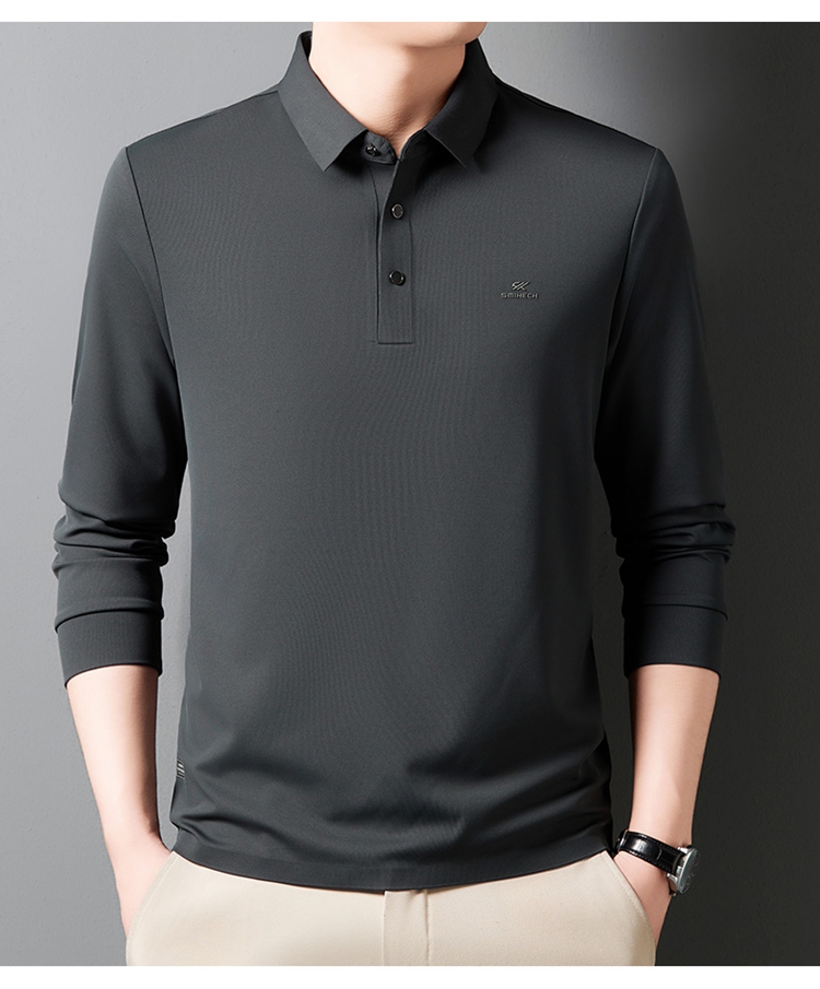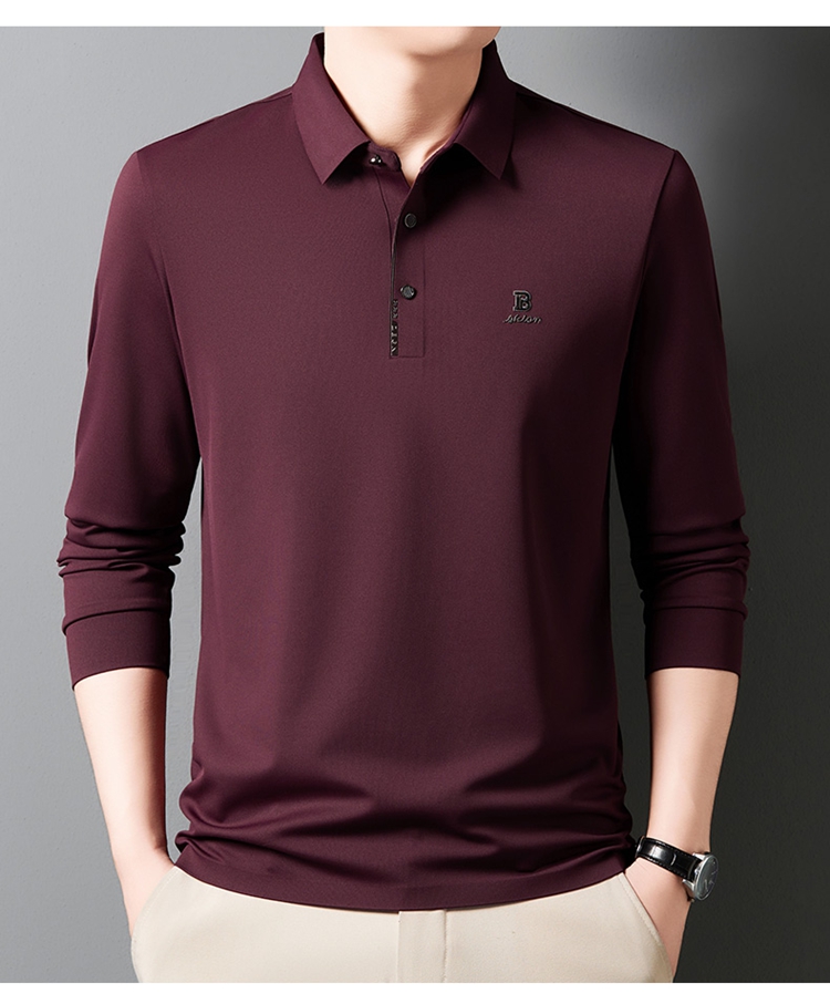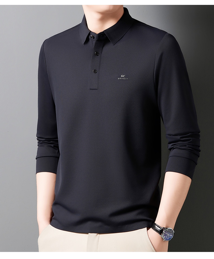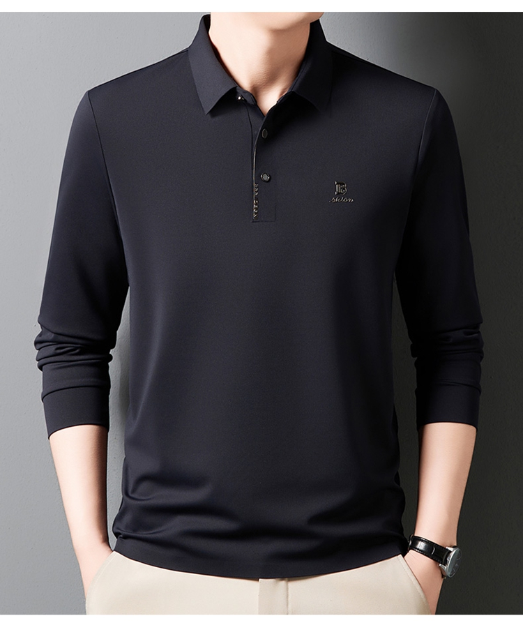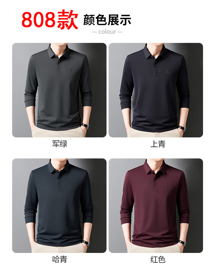 恒源祥羊毛长袖T恤男士春秋季休闲翻领打底POLO衫上衣中年爸爸装