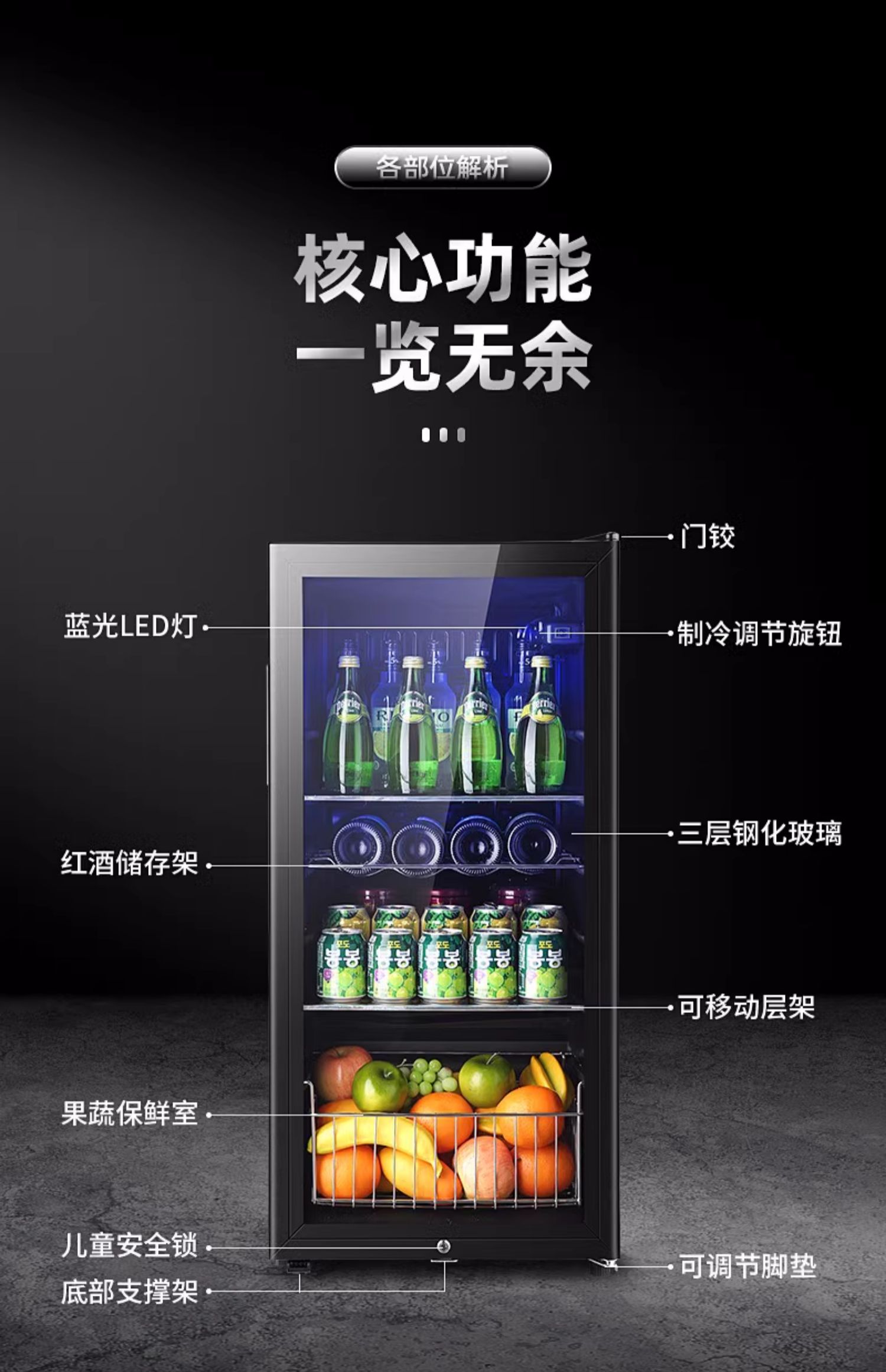 先科红酒柜办公冰吧家用单门冷藏柜小冰箱客厅茶叶饮料留样保鲜柜