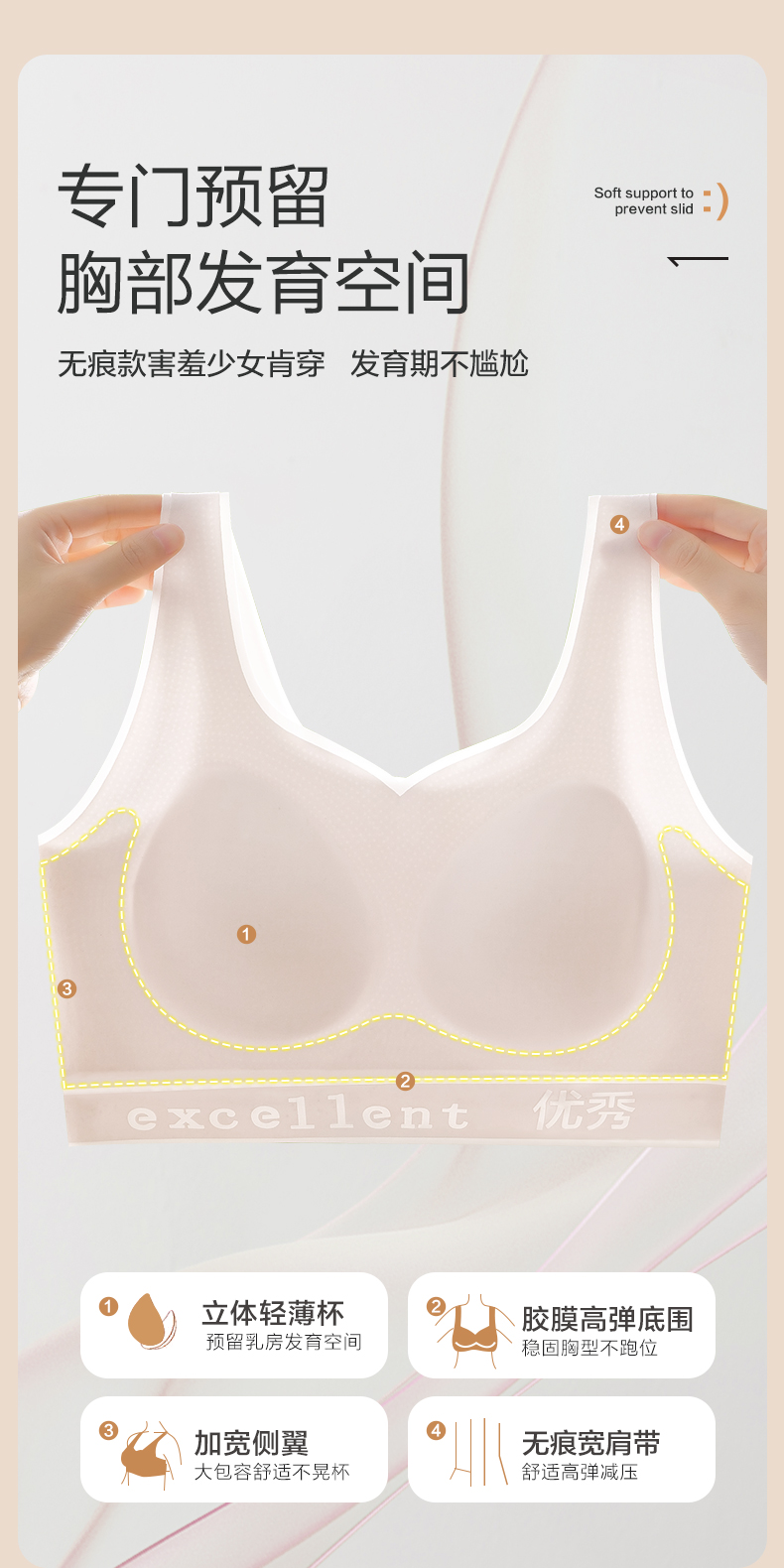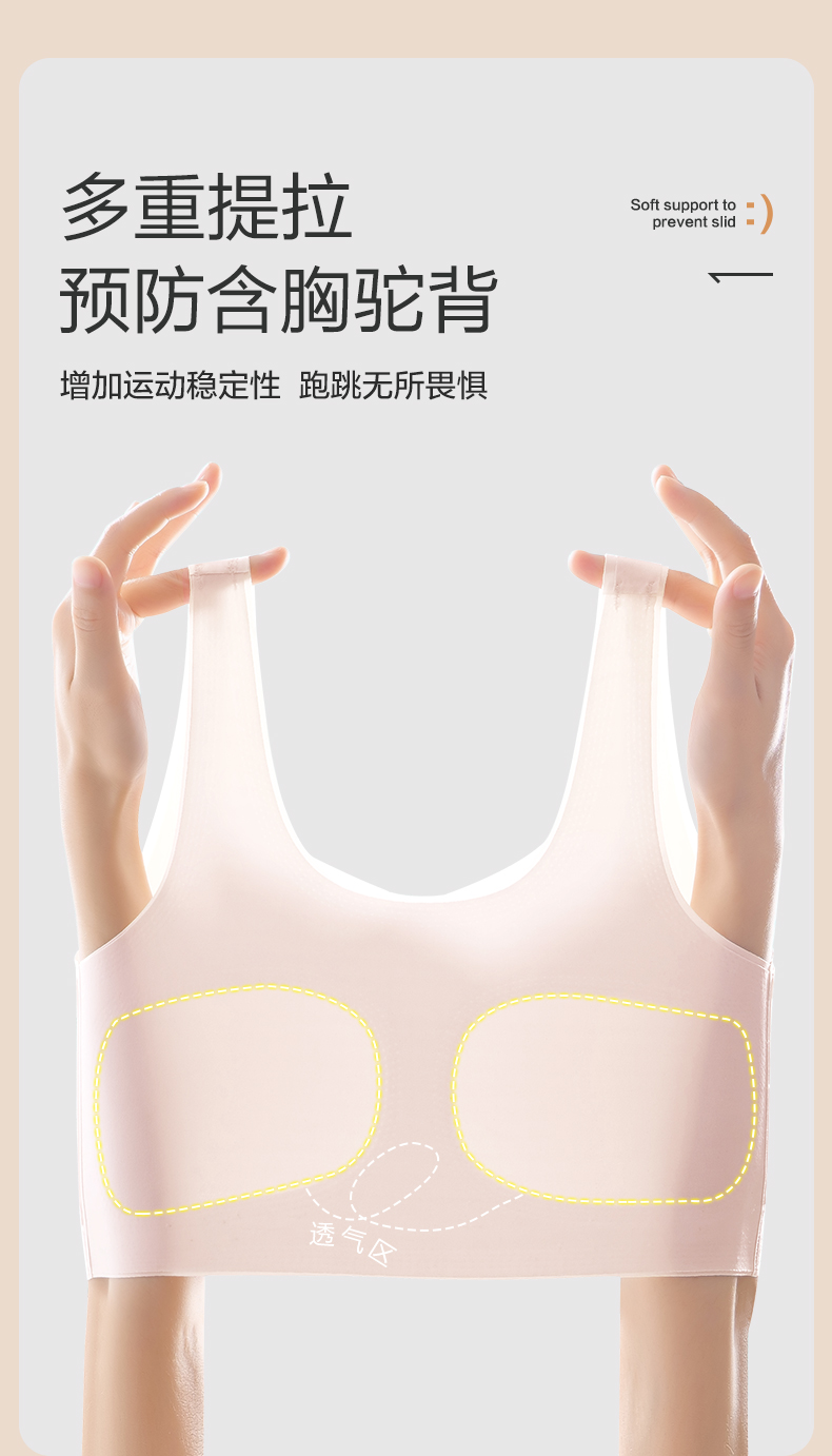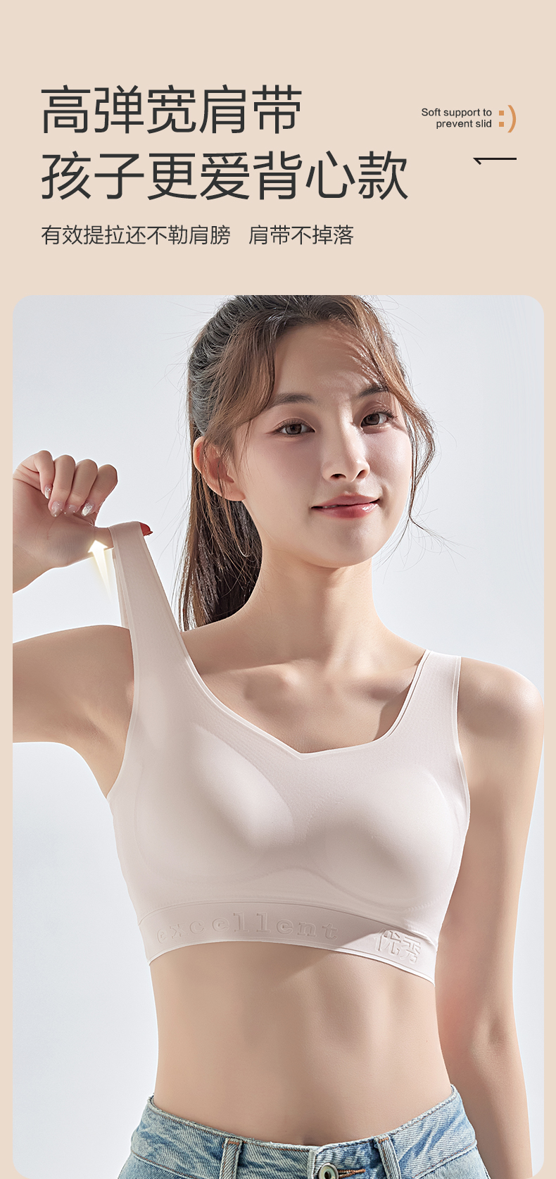 恒源祥初中学生少女文胸无痕背心式中大童发育期高中运动内衣防震