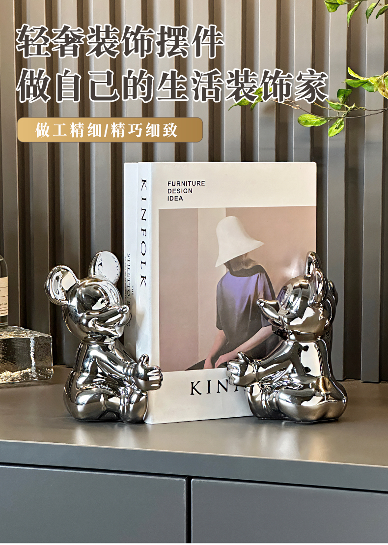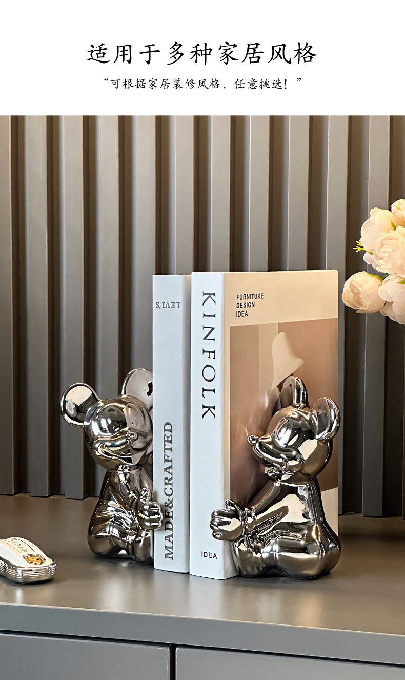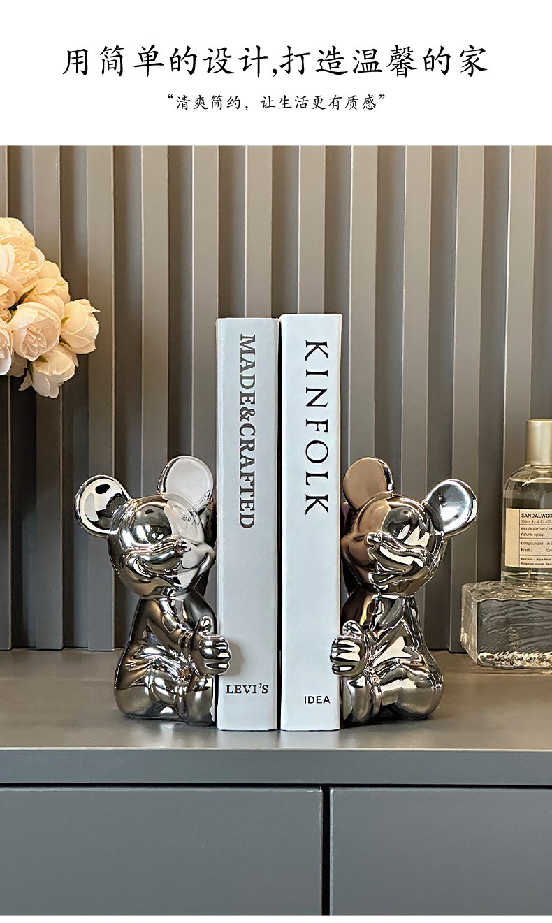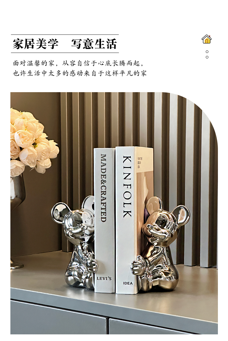 卡通米奇书挡客厅酒柜电视柜陶瓷家居装饰品书桌桌面书立创意摆件