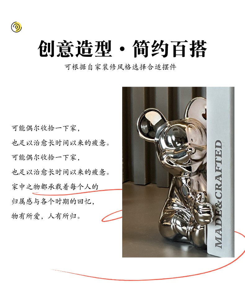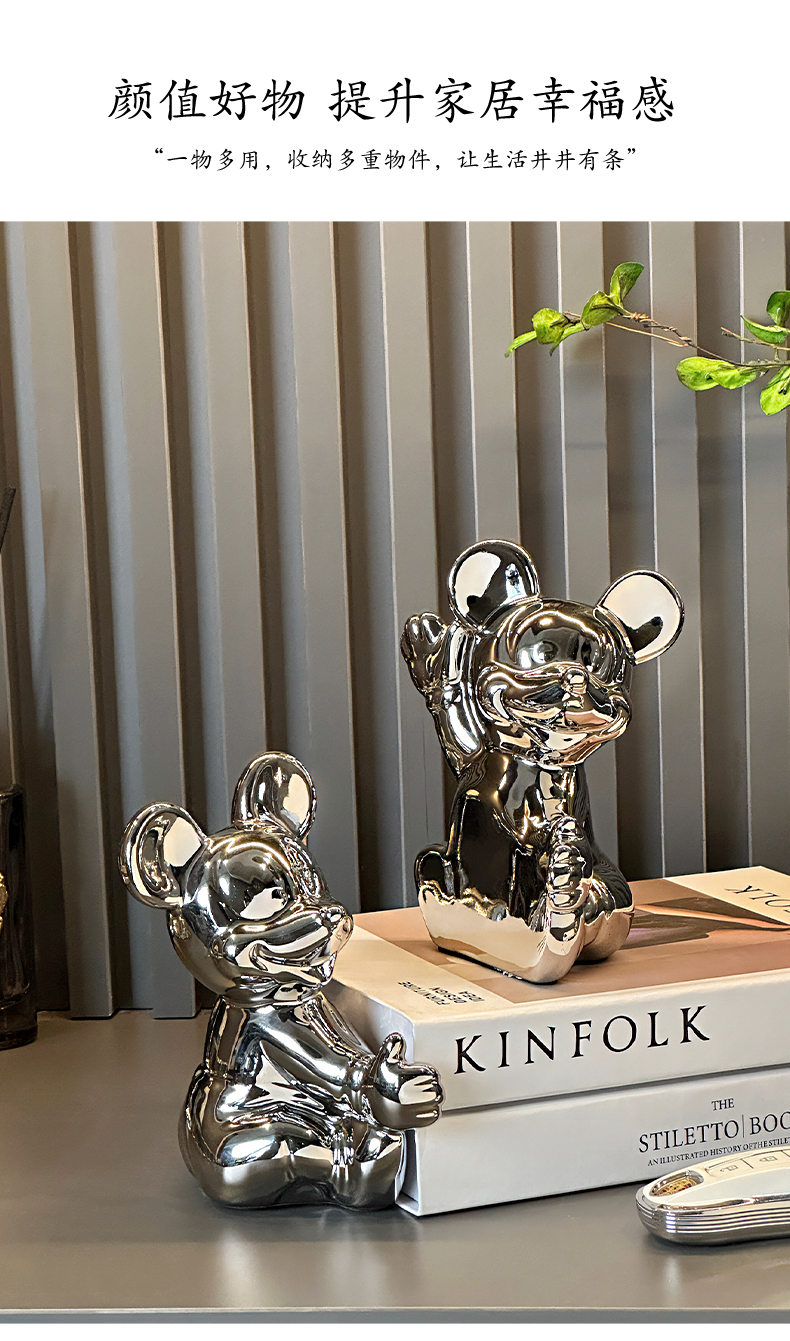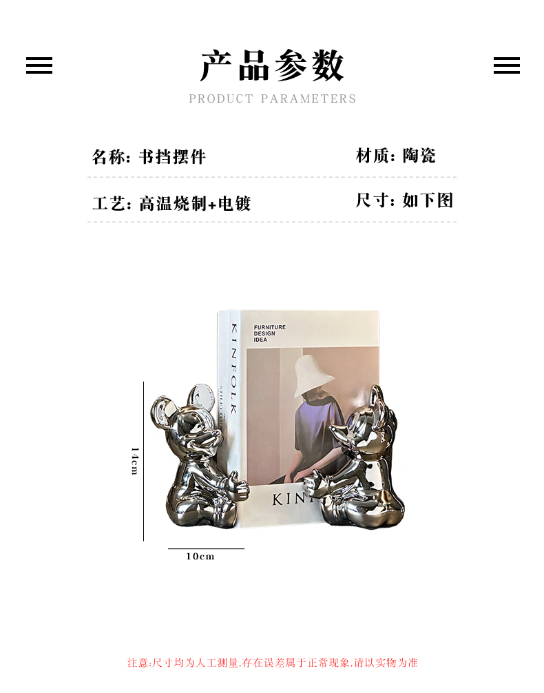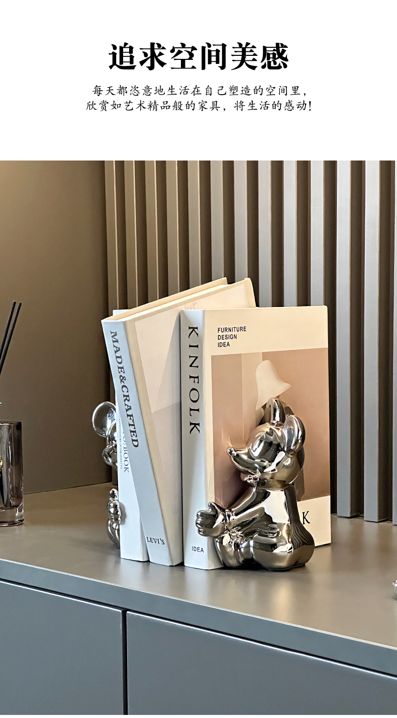 卡通米奇书挡客厅酒柜电视柜陶瓷家居装饰品书桌桌面书立创意摆件
