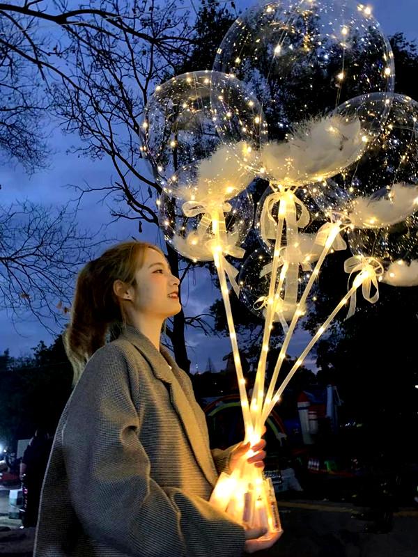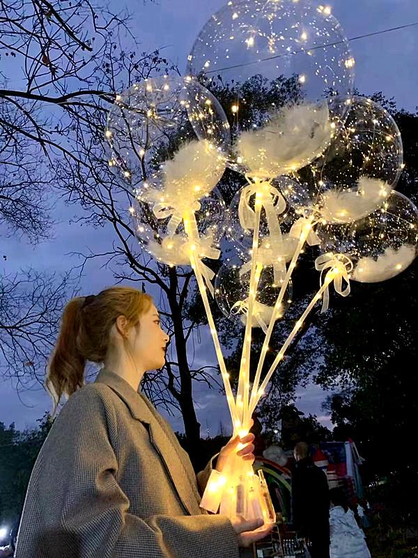 新款网红透明波波球羽毛带灯款地推夜市摆摊彩灯拍照儿童发光气球