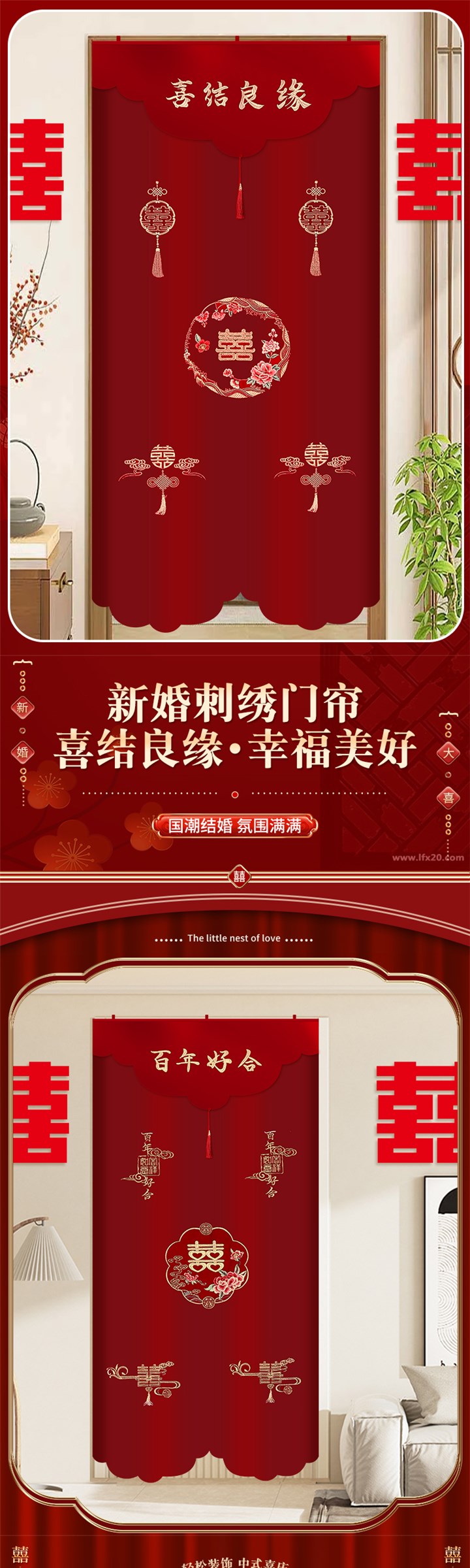 结婚刺绣中式国潮喜字红门帘子婚房装饰布置窗帘卧室客厅拉花挂饰