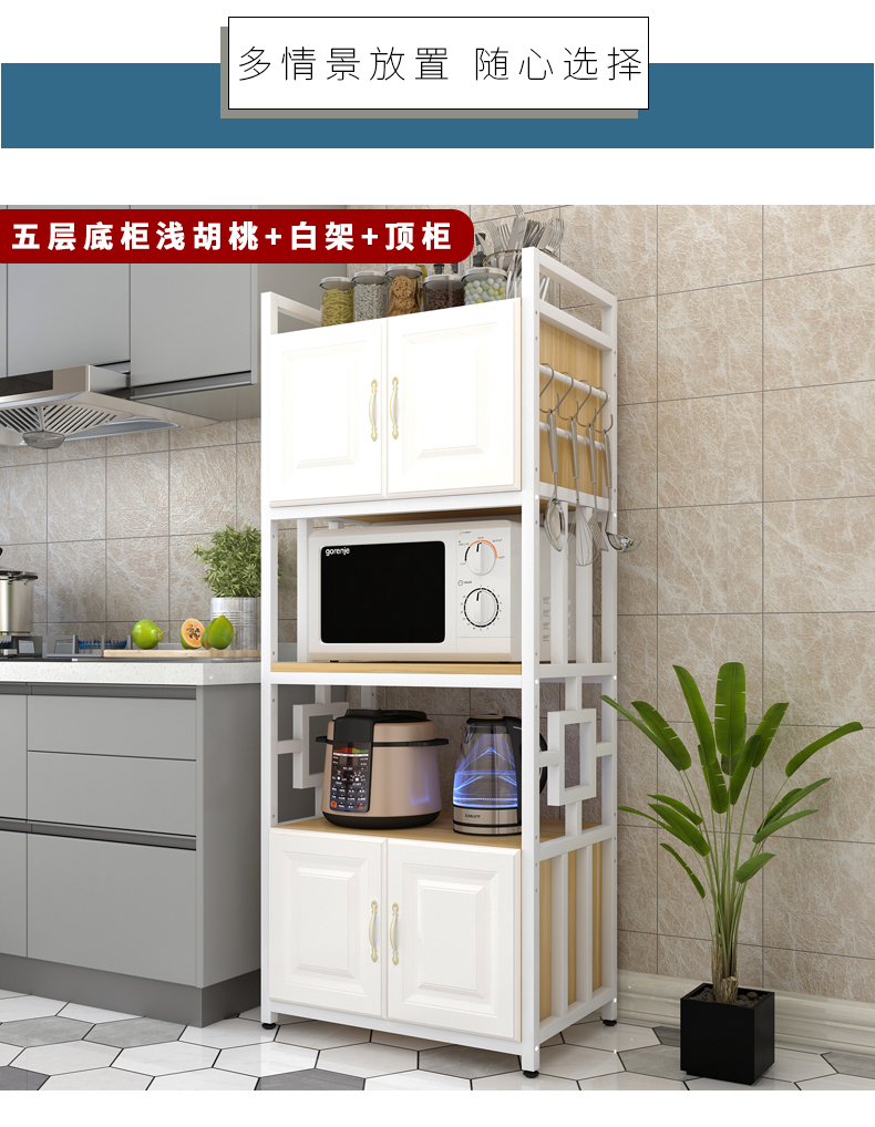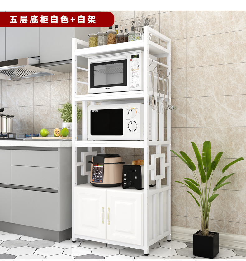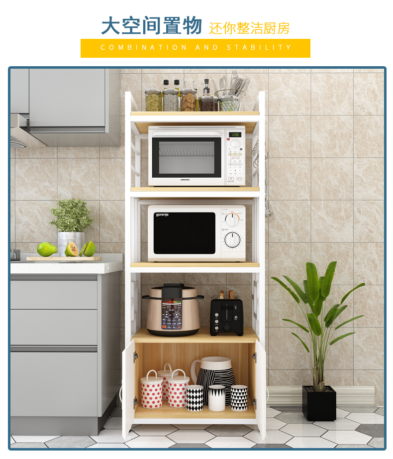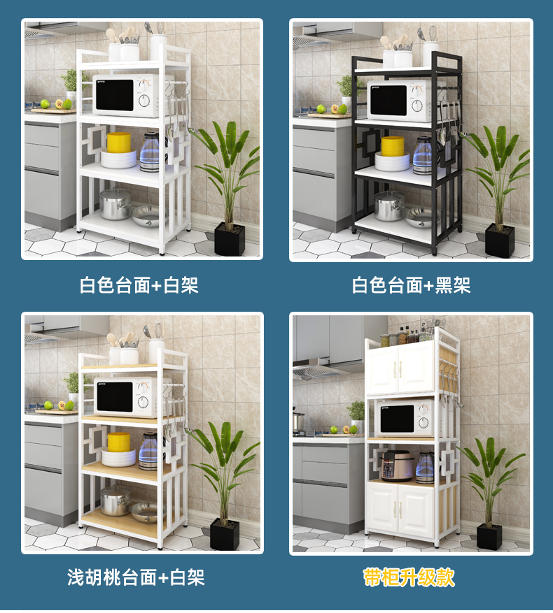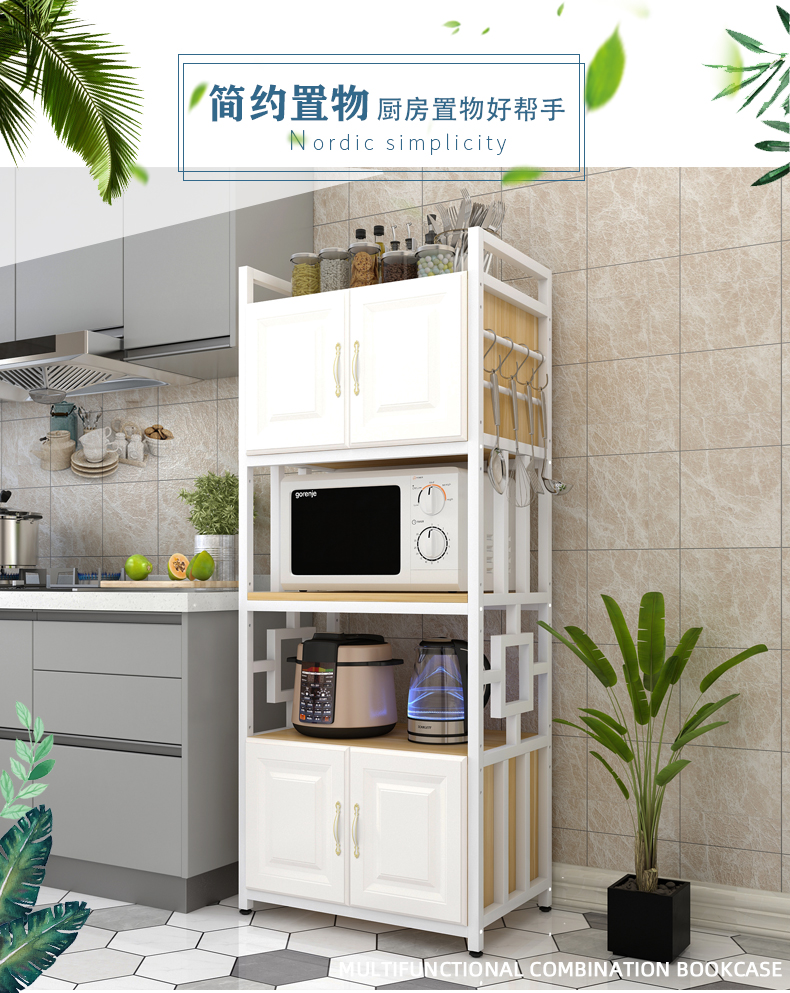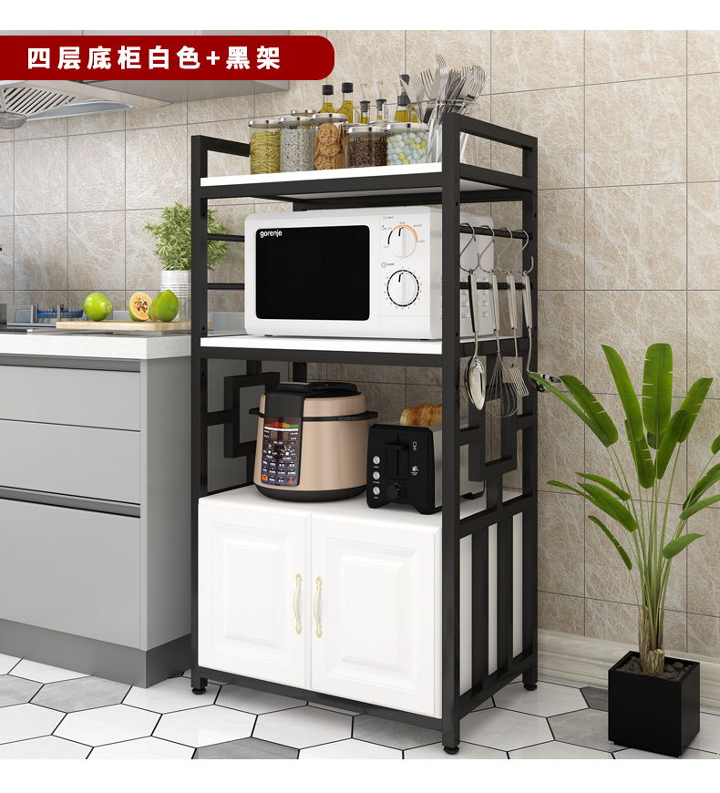 欧式厨房置物架落地微波炉架家用收纳储物柜带柜门多层调料烤箱架
