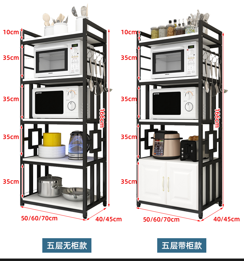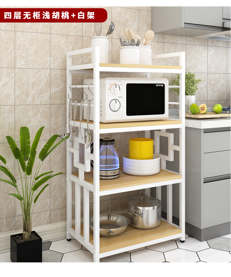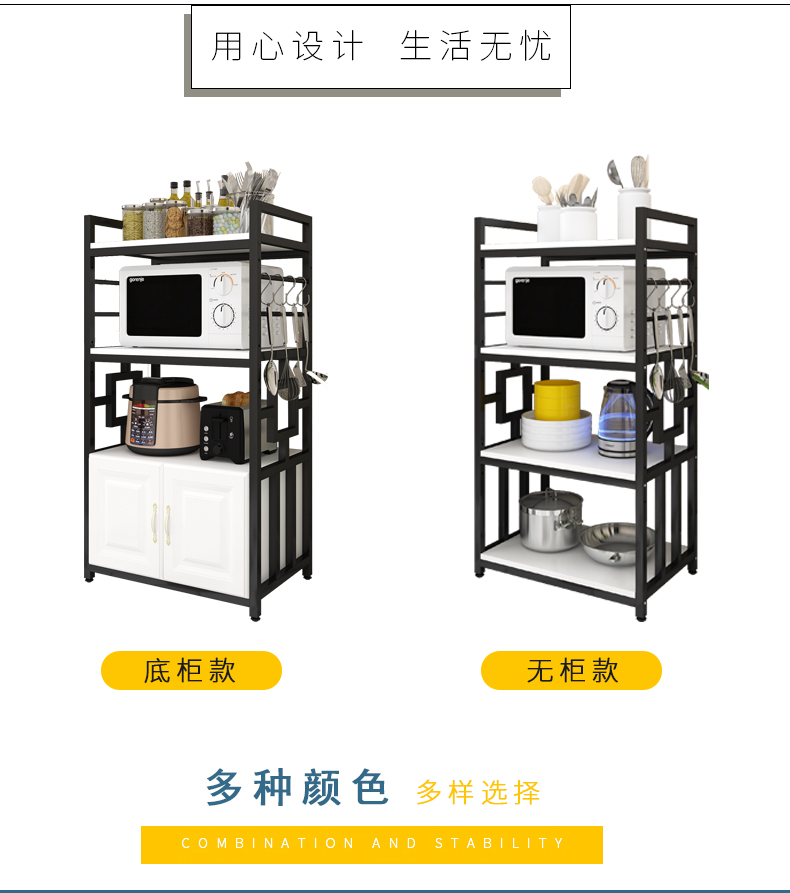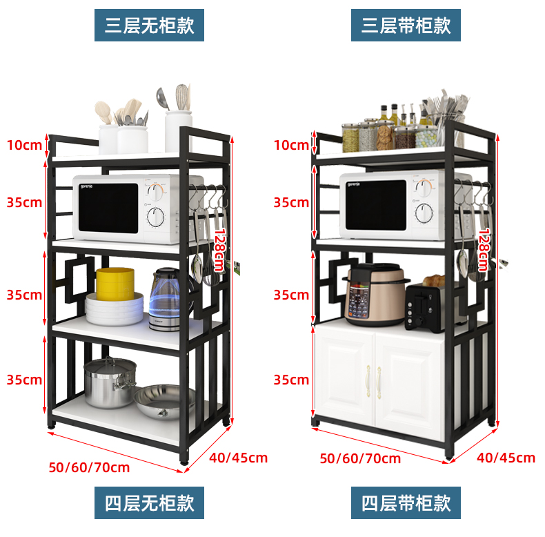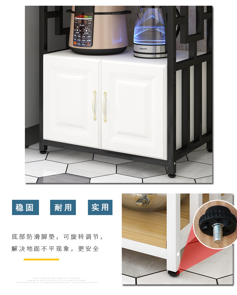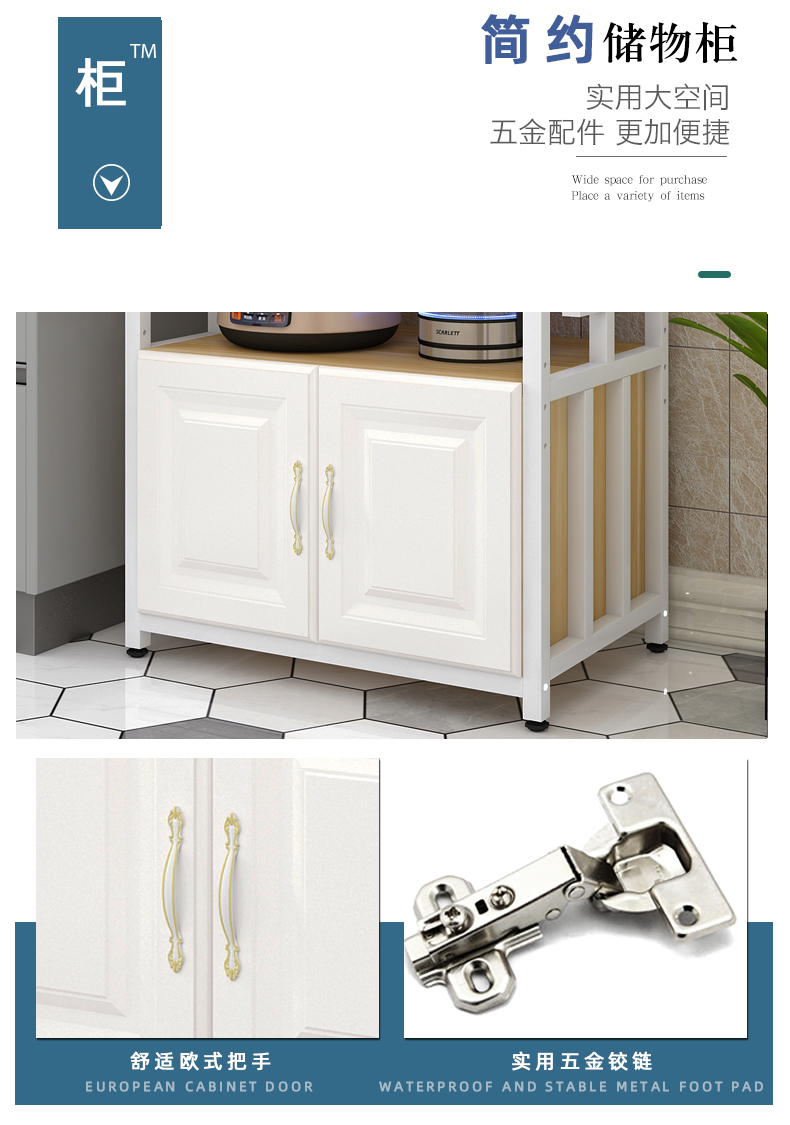 欧式厨房置物架落地微波炉架家用收纳储物柜带柜门多层调料烤箱架