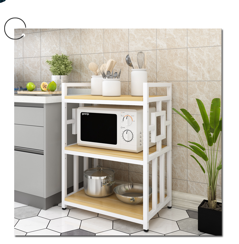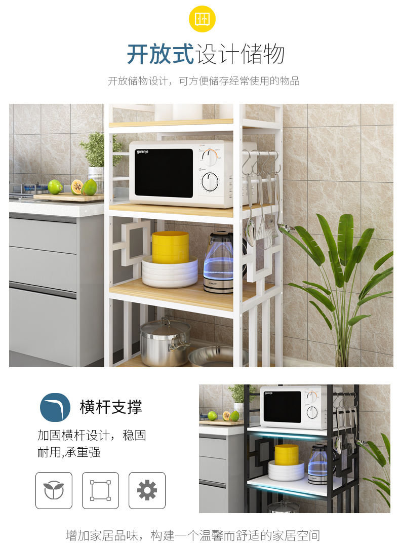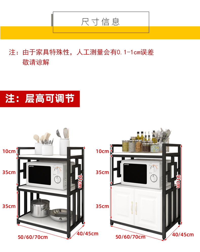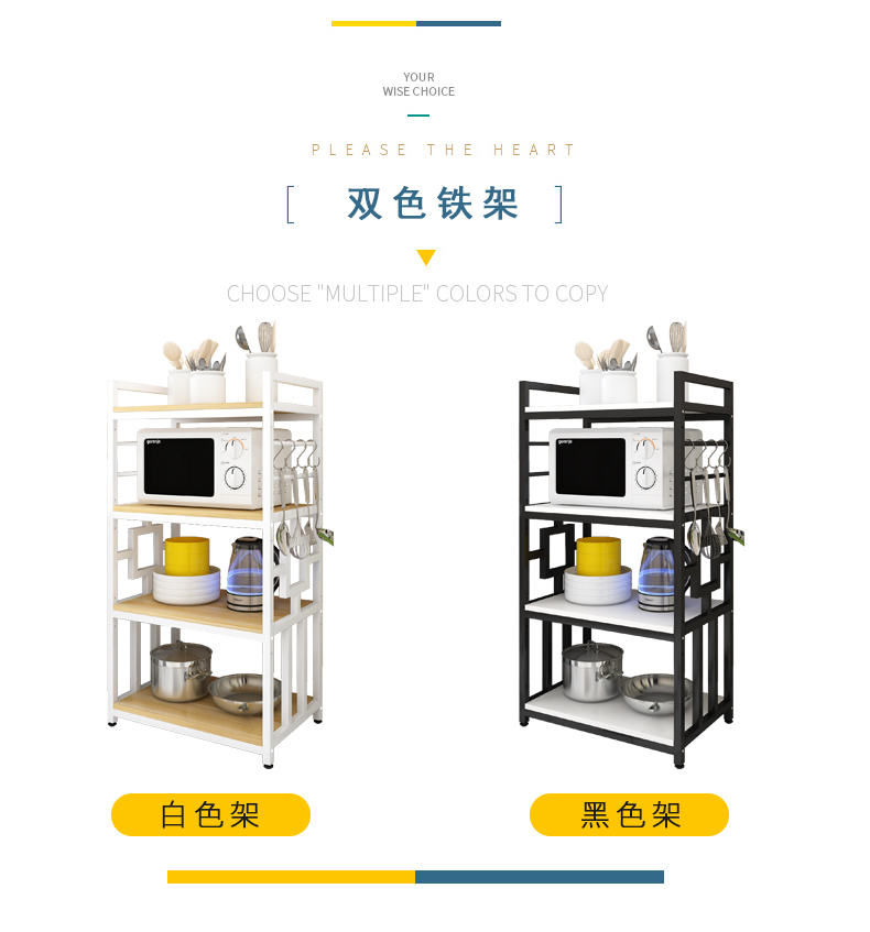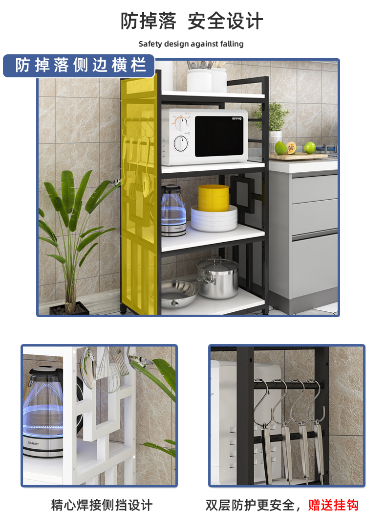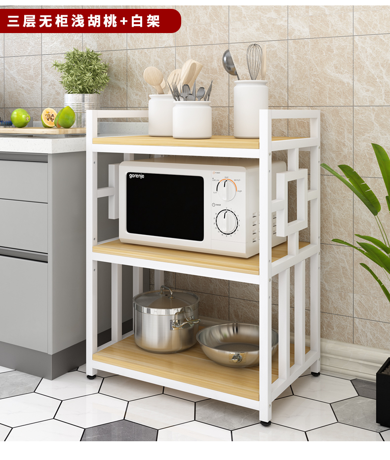 欧式厨房置物架落地微波炉架家用收纳储物柜带柜门多层调料烤箱架
