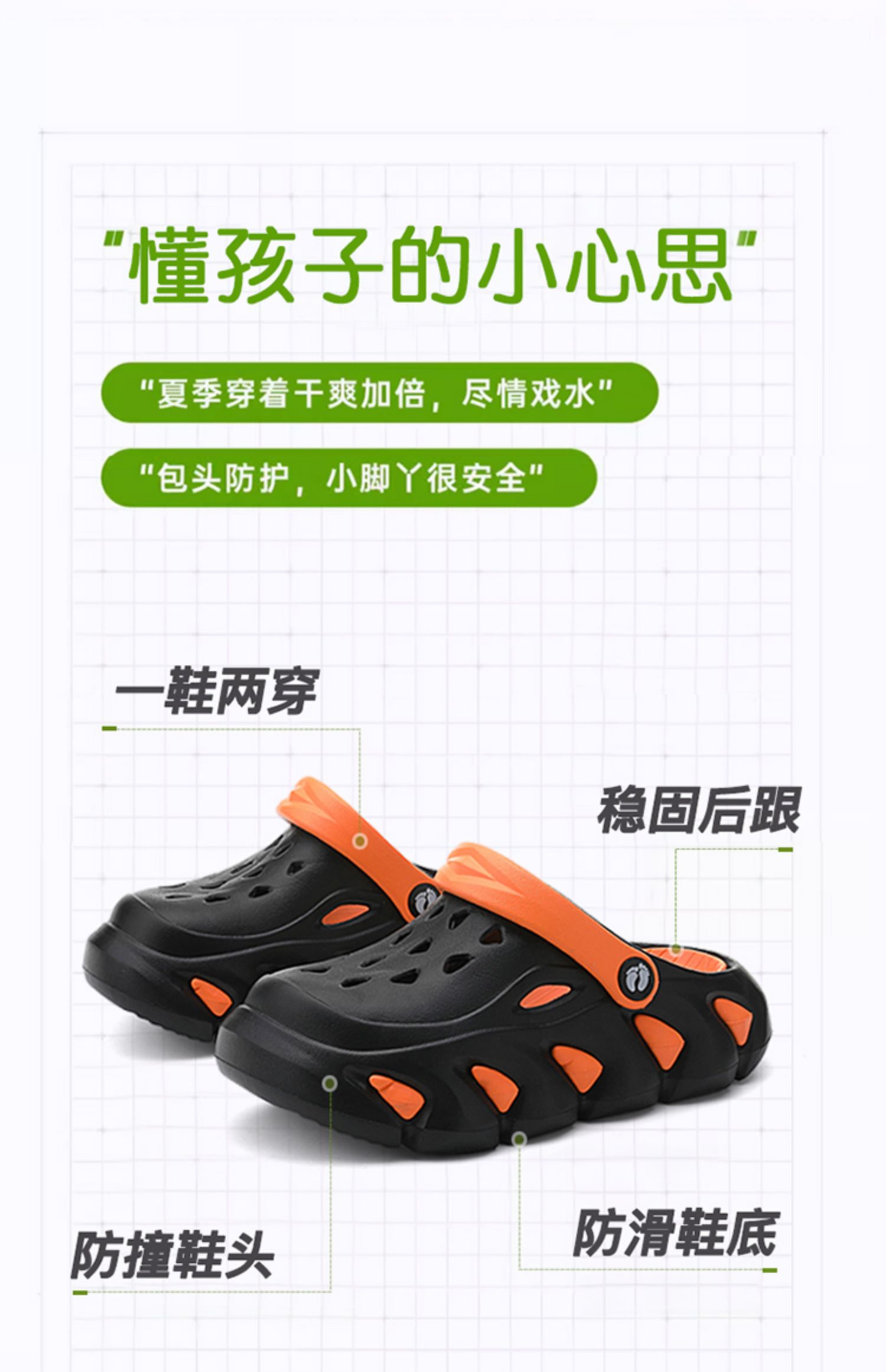 HANGTEN欢腾男童洞洞鞋2025夏新款厚底超软轻便男孩凉鞋儿童拖鞋