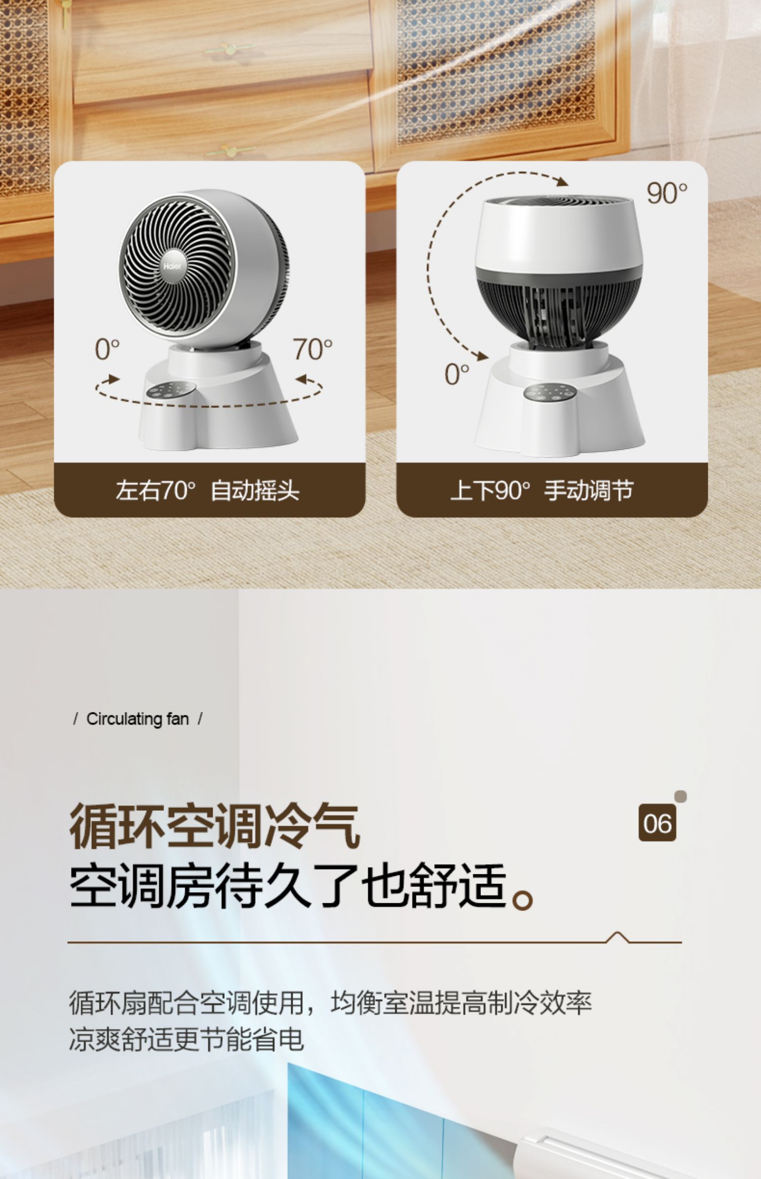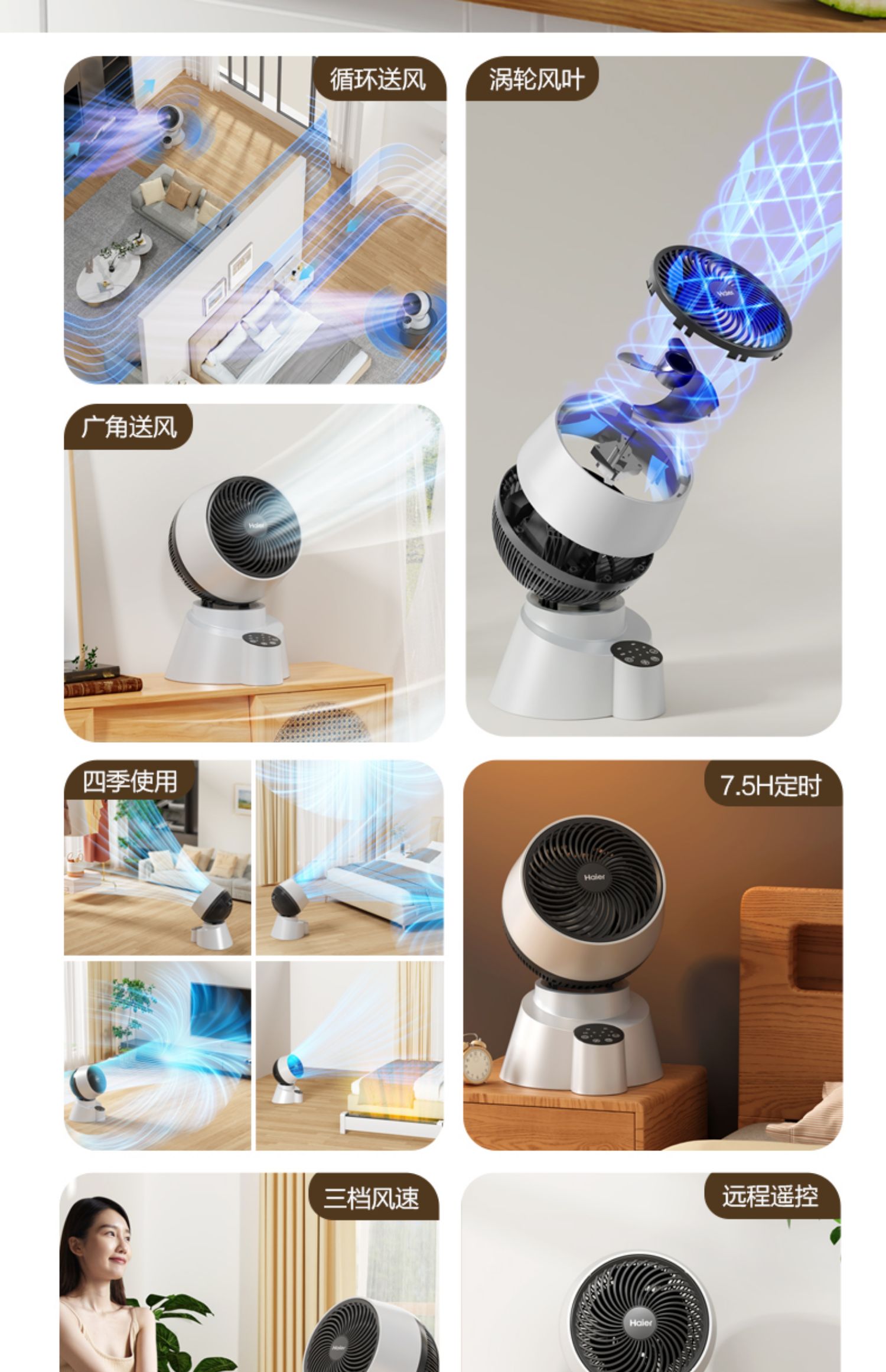 海尔空气循环扇家用电风扇台式轻音风扇宿舍办公室桌面小型电风扇