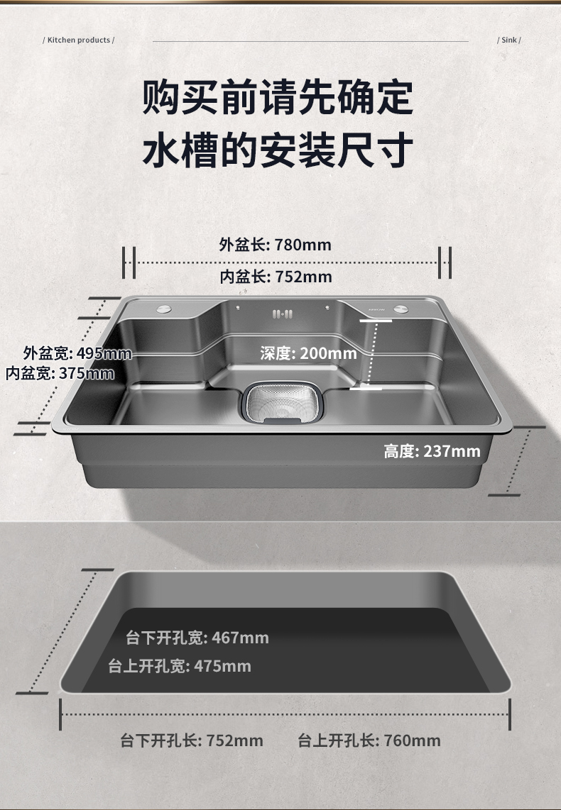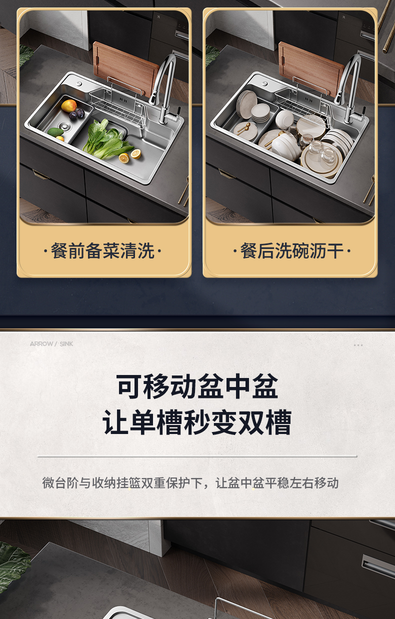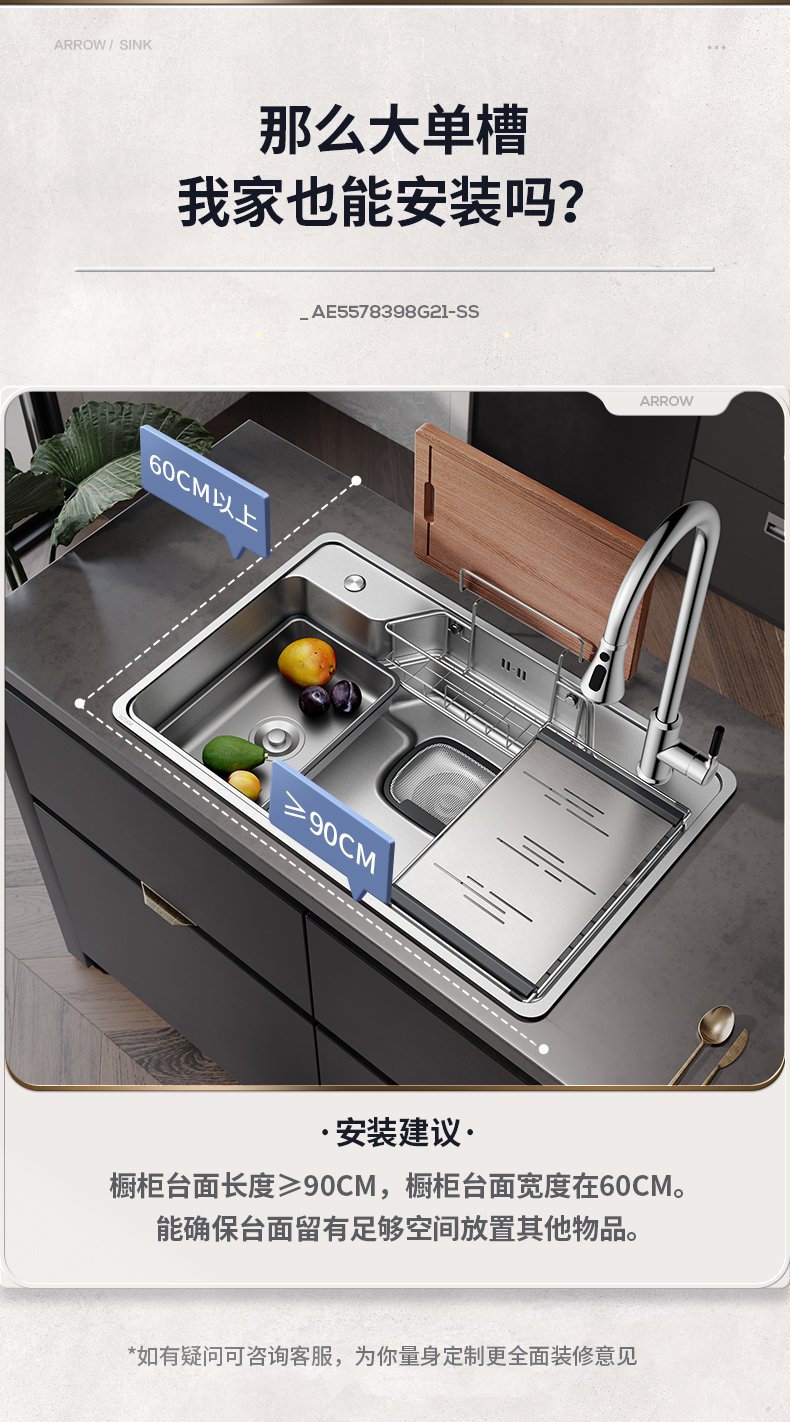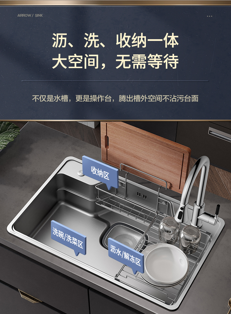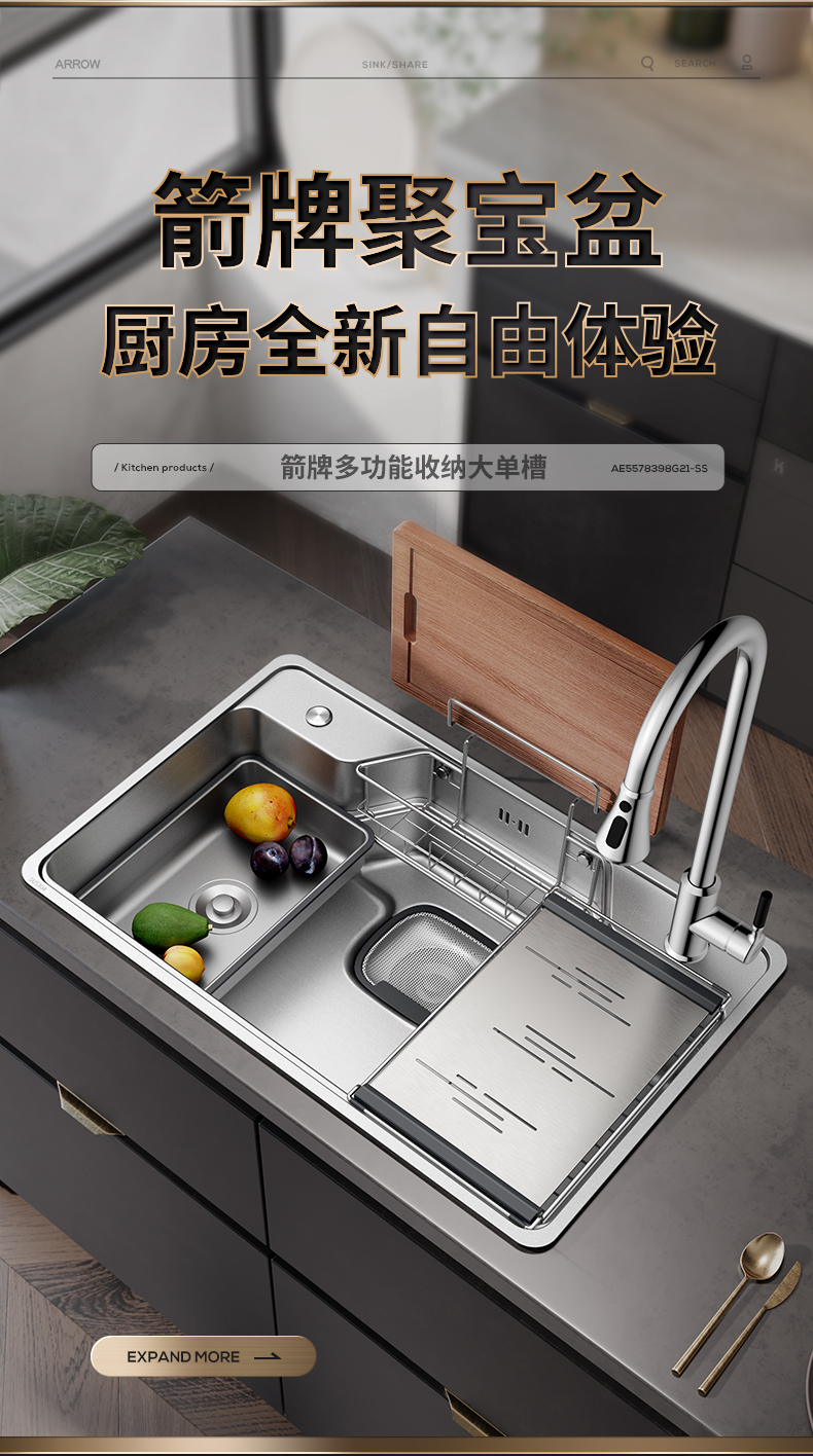 箭牌聚宝盆 厨房洗菜盆家用水池不锈钢304日式台下洗手盆水槽单槽