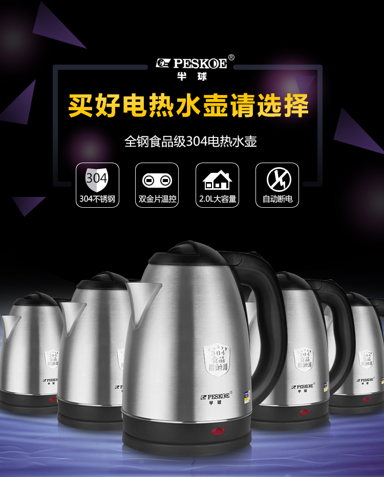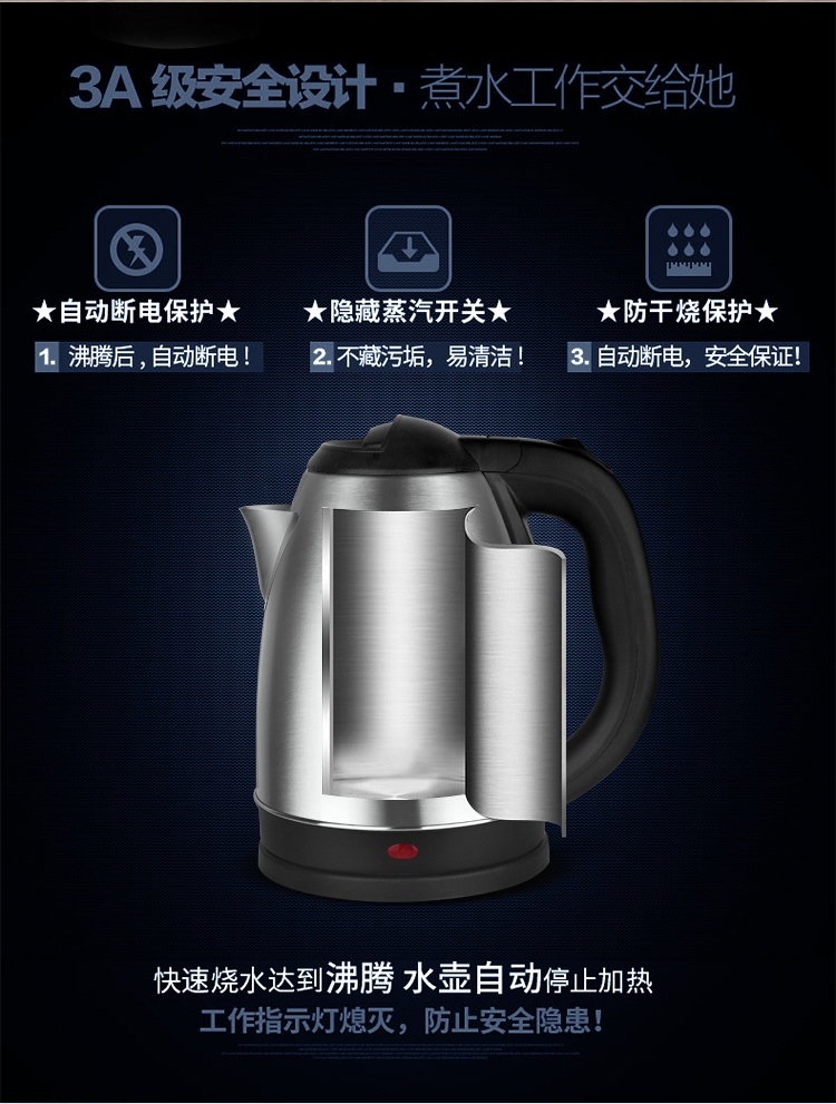 正品半球电热水壶家用304不锈钢保温一体大容量自动断电烧水壶快