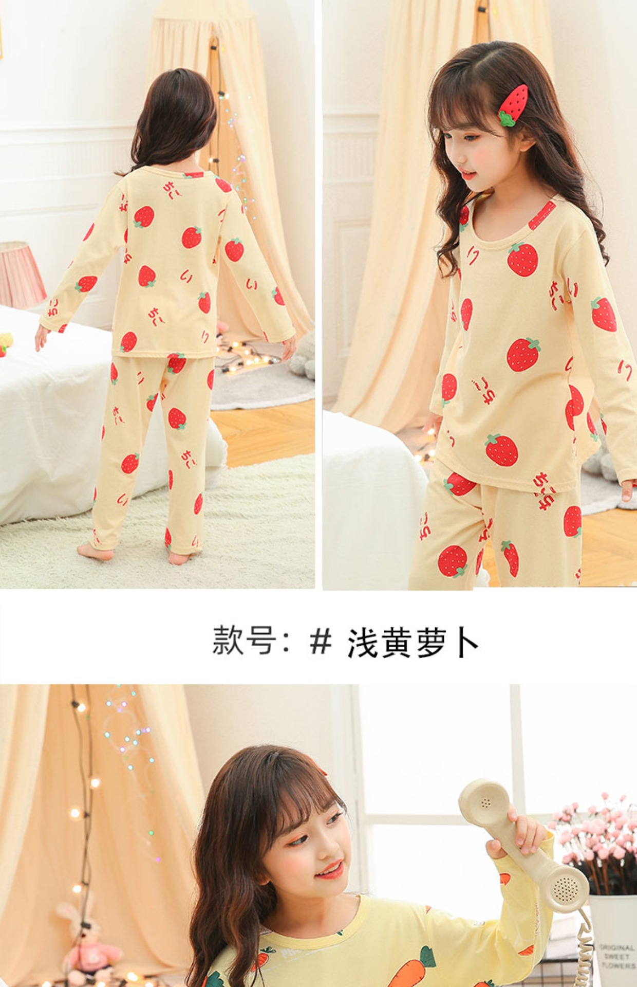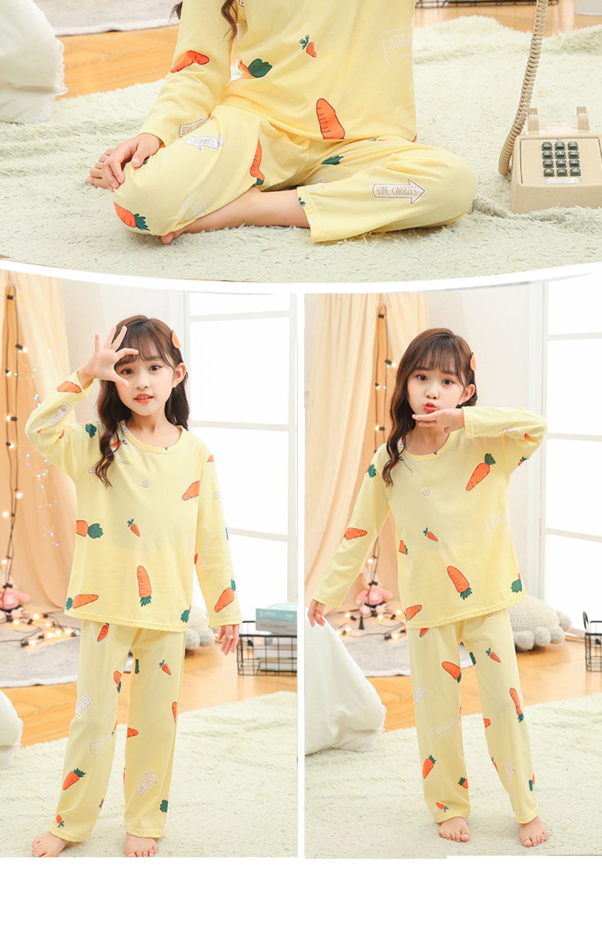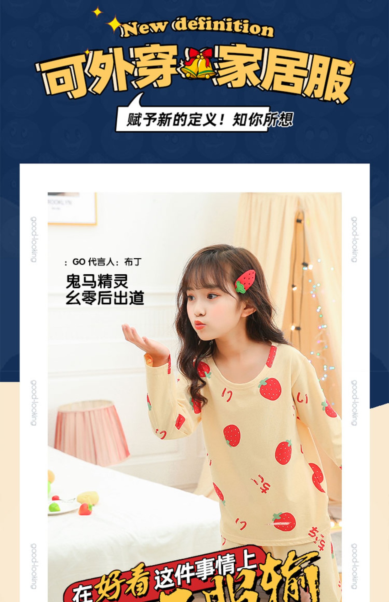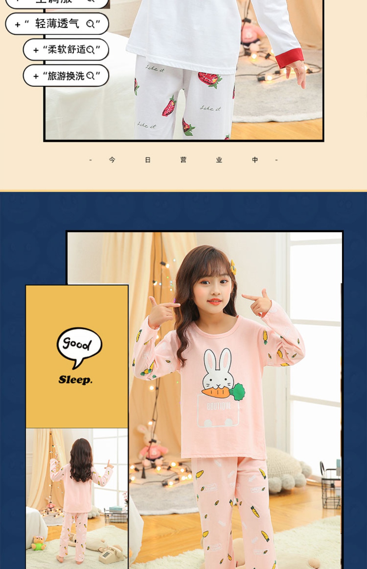 夏季长袖居家居套装夏天女孩薄款空调服女童纯棉童装儿童睡衣舒适