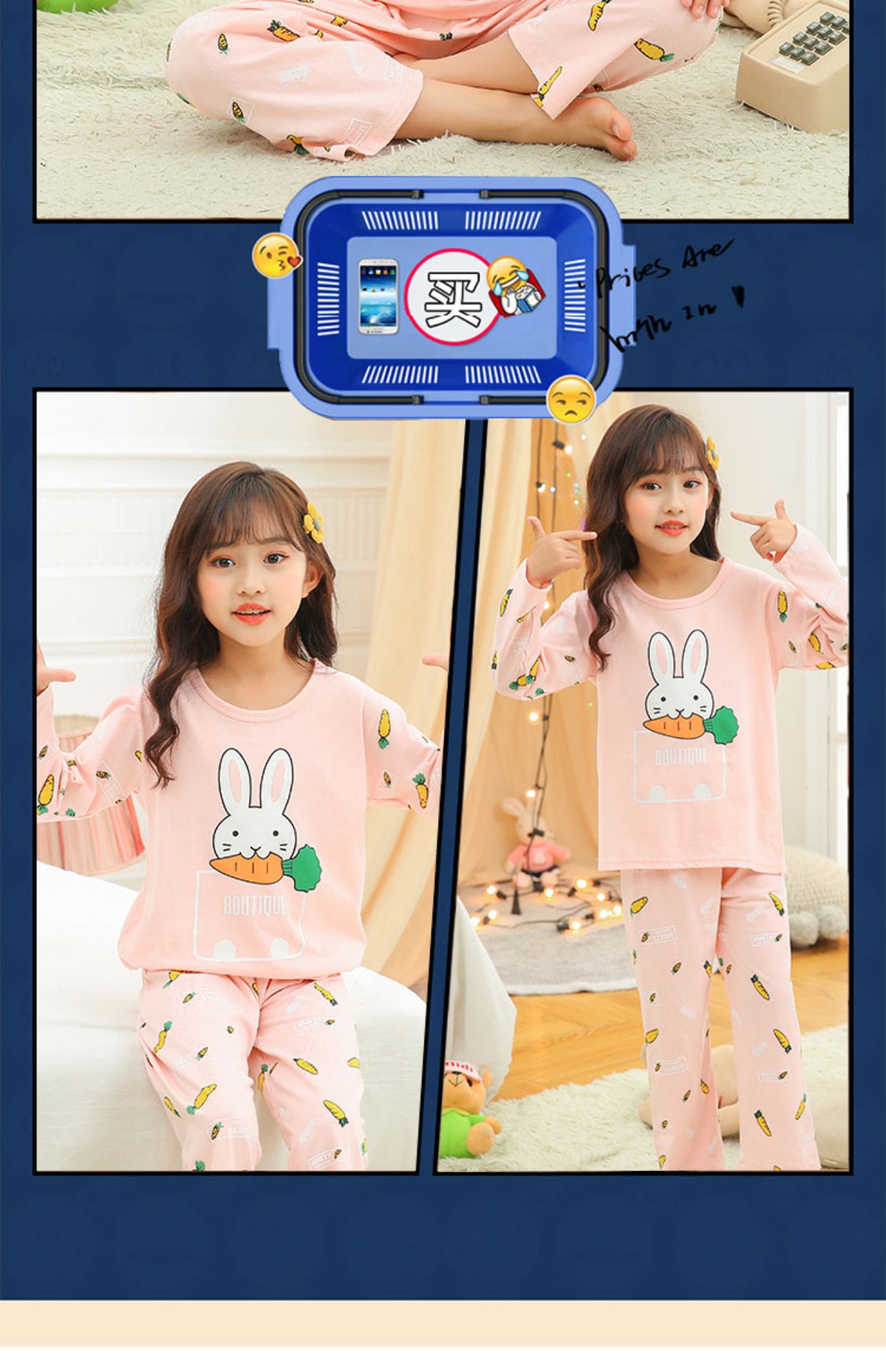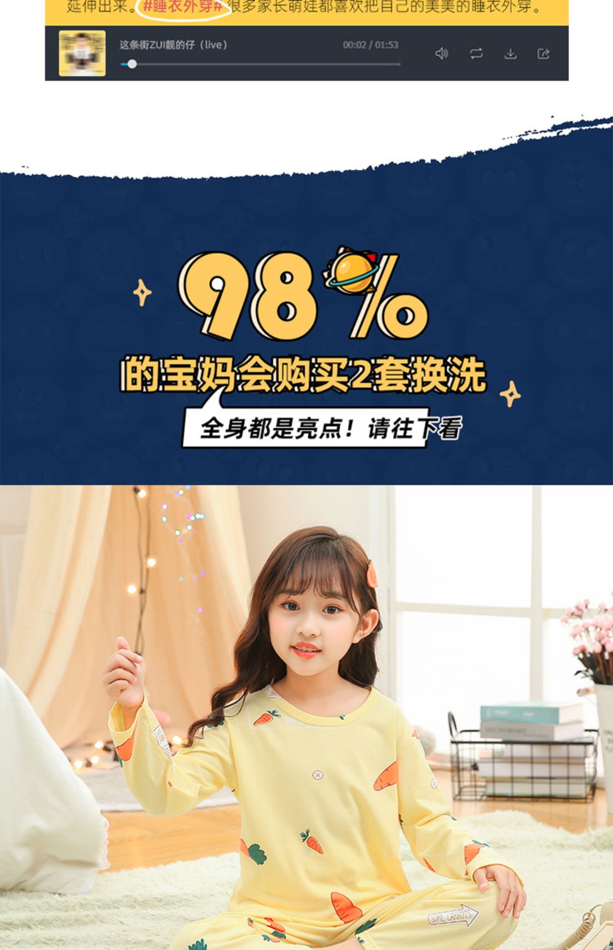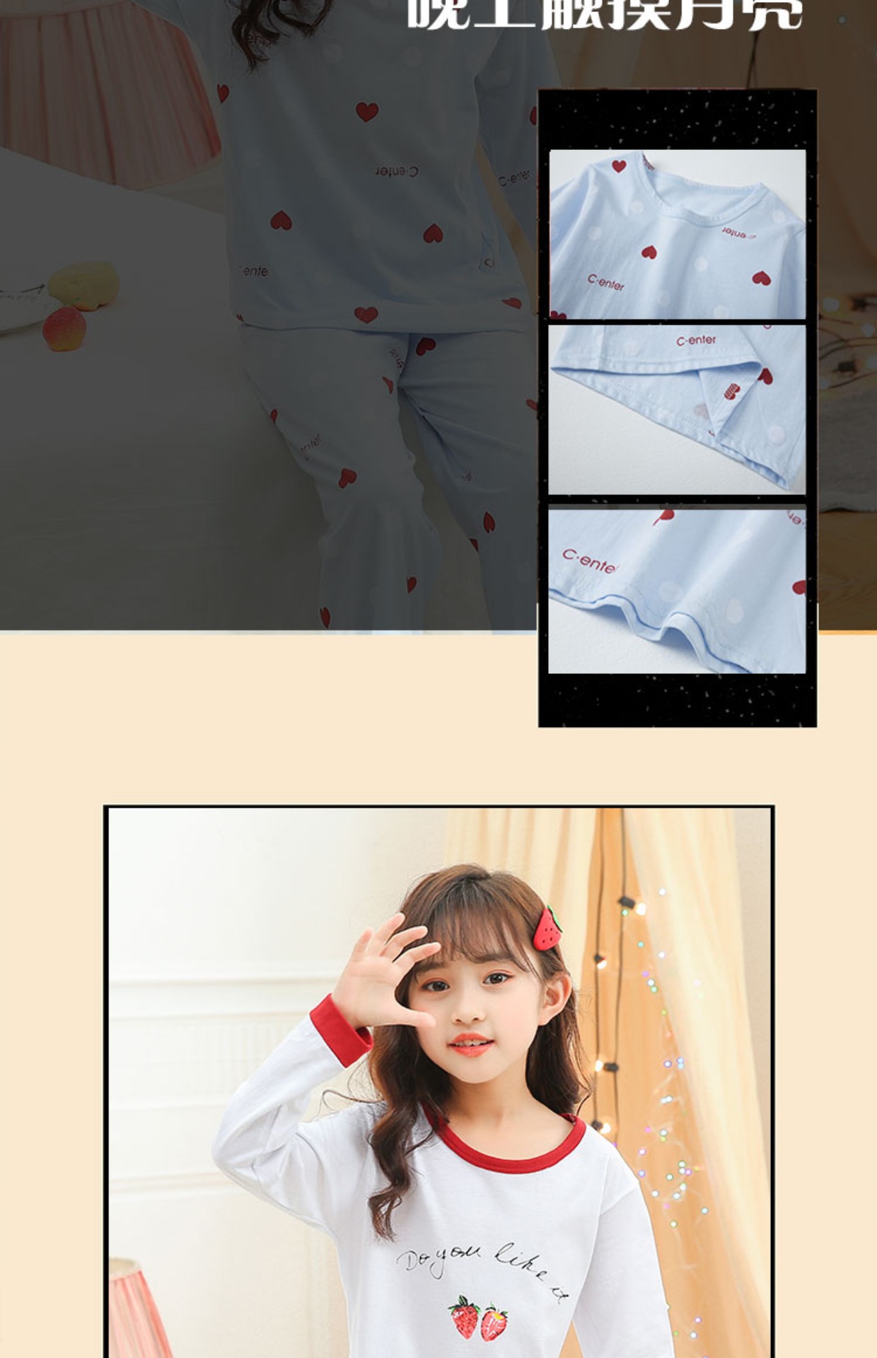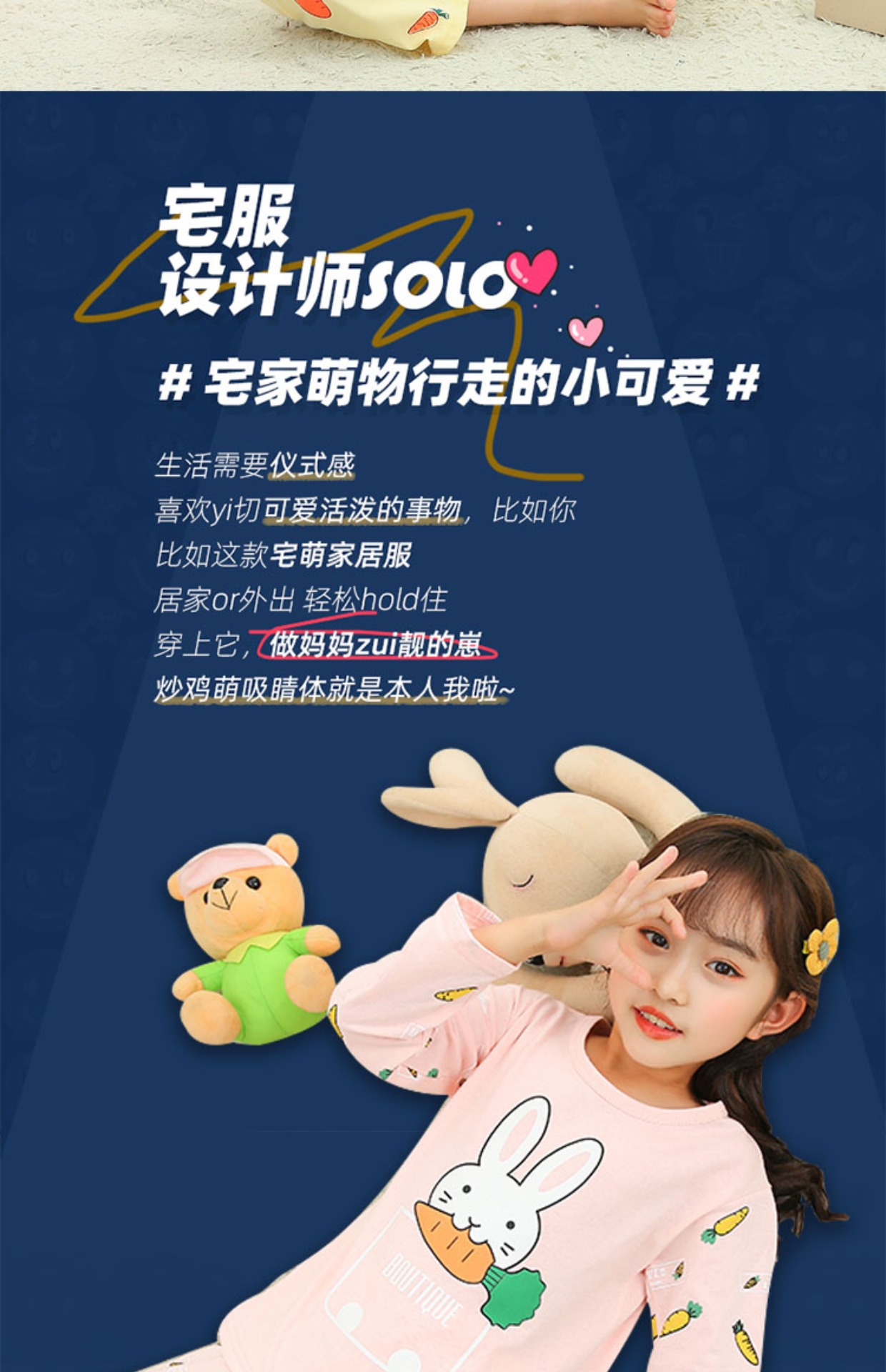 夏季长袖居家居套装夏天女孩薄款空调服女童纯棉童装儿童睡衣舒适