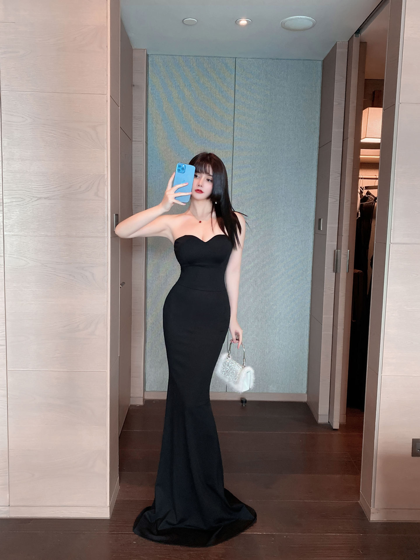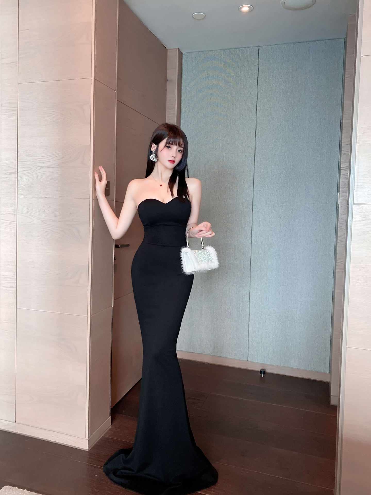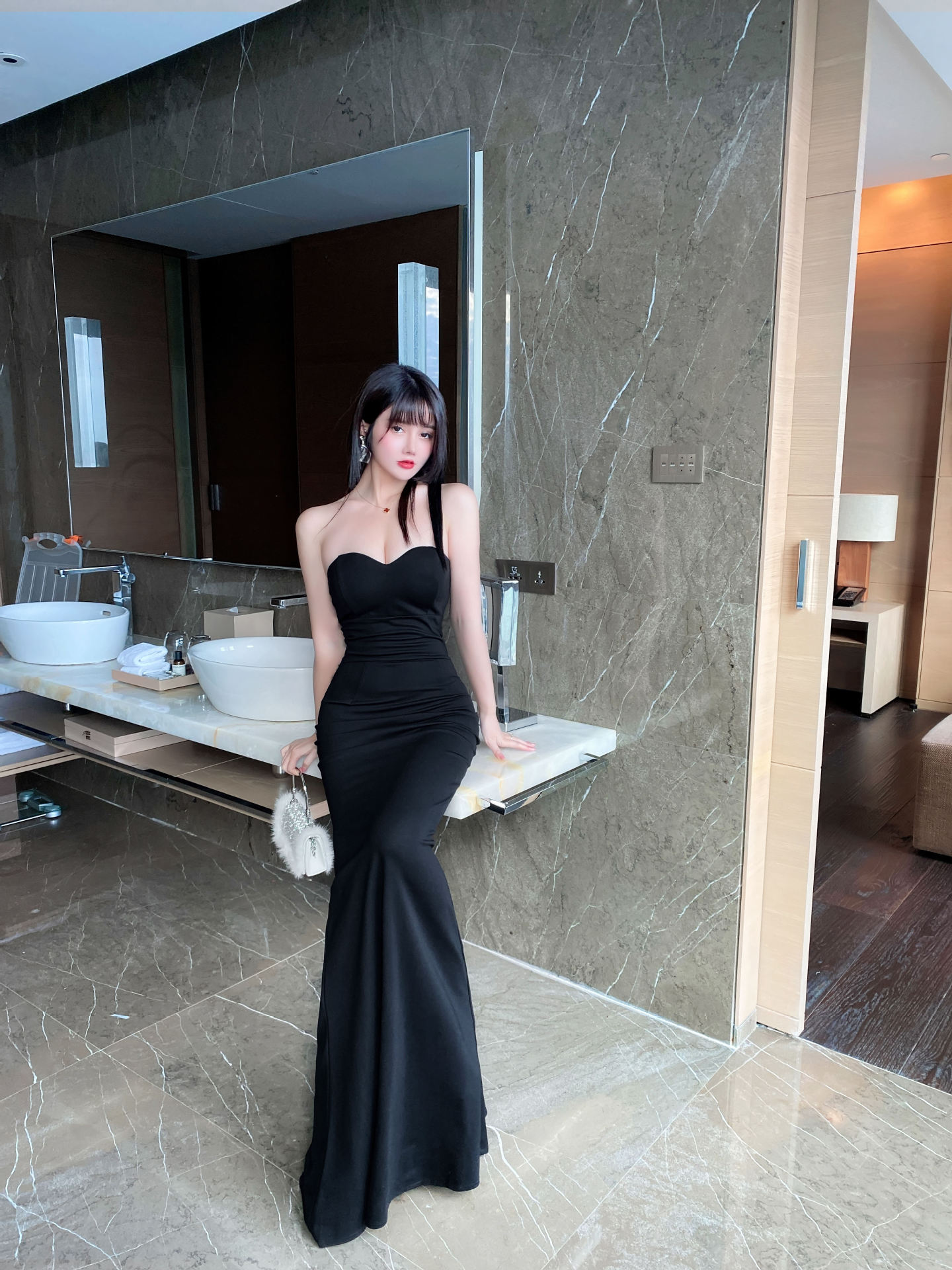 性感礼服夜场上班衣服修身包臀气质名媛抹胸长款晚礼服技师工作服