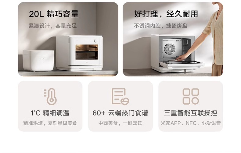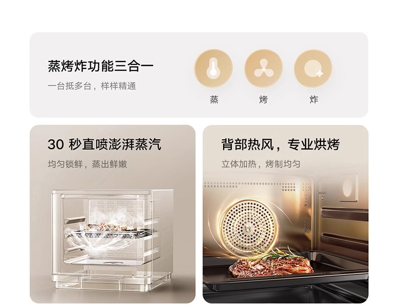 小米米家智能蒸烤箱蒸箱家用台式蒸烤箱空气炸烘焙蒸烤炸一体机