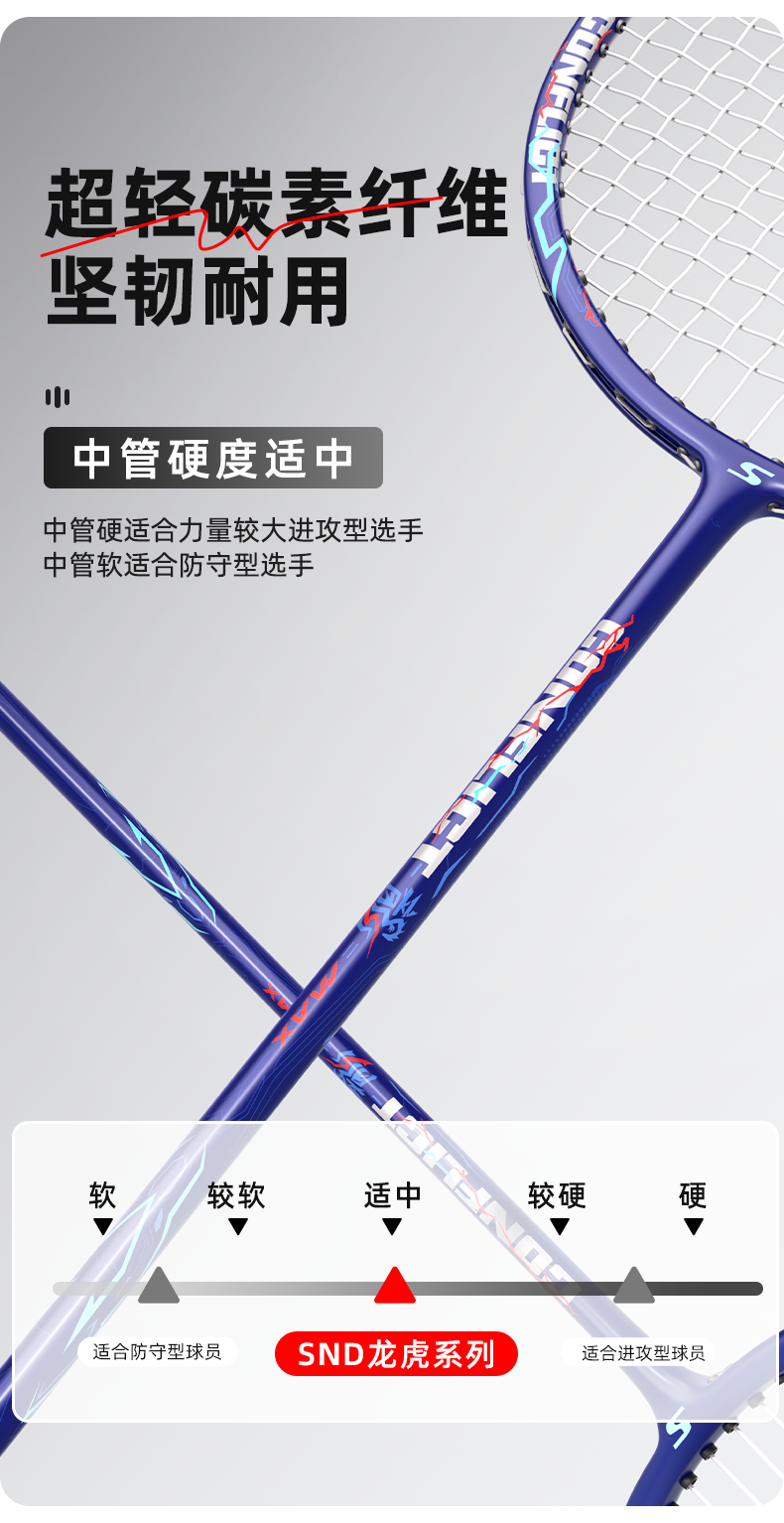 SND羽毛球拍超轻碳素复合羽毛拍双拍耐用初学者训练进攻均衡之刃